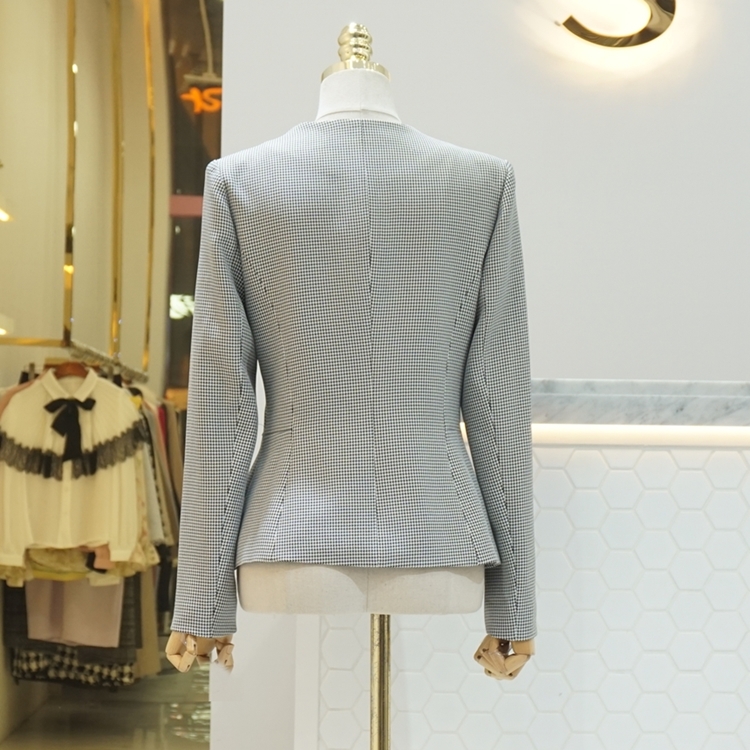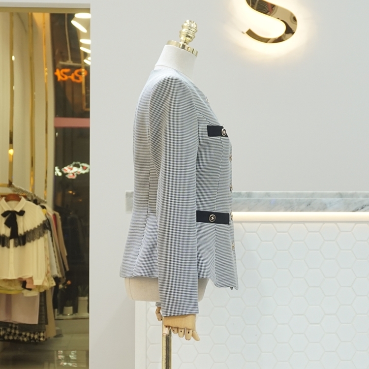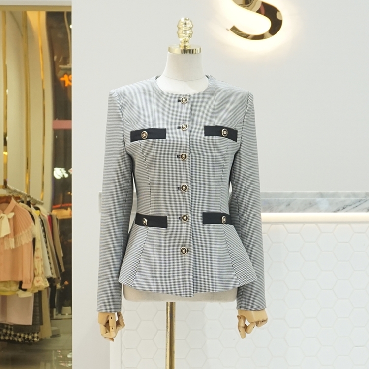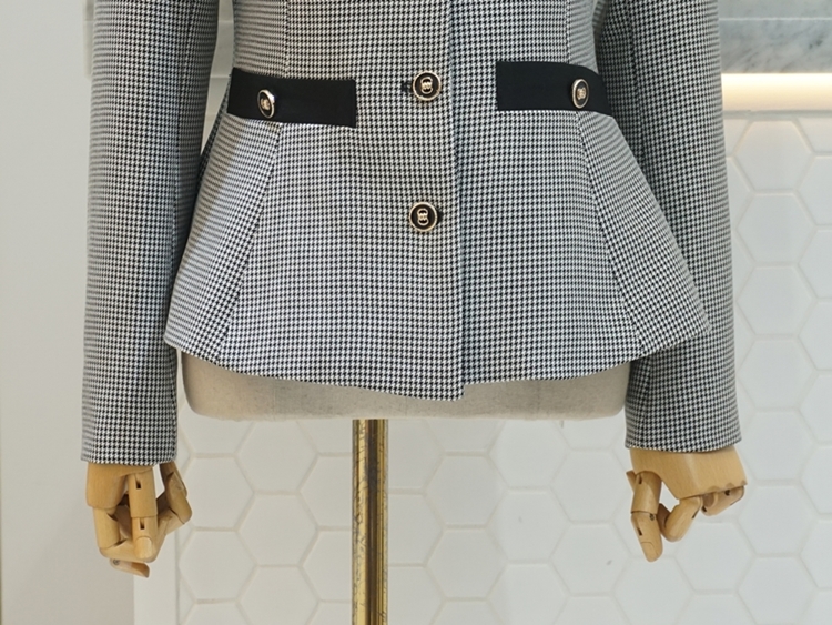 엔틱버튼 배색 페플럼 노카라 자켓
