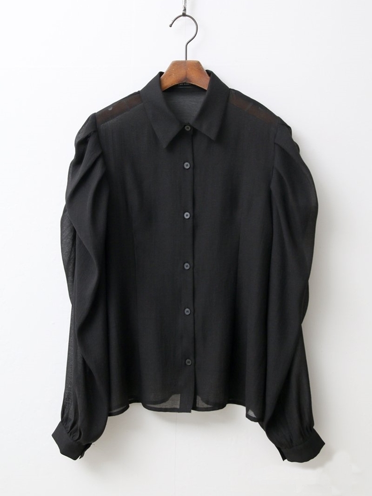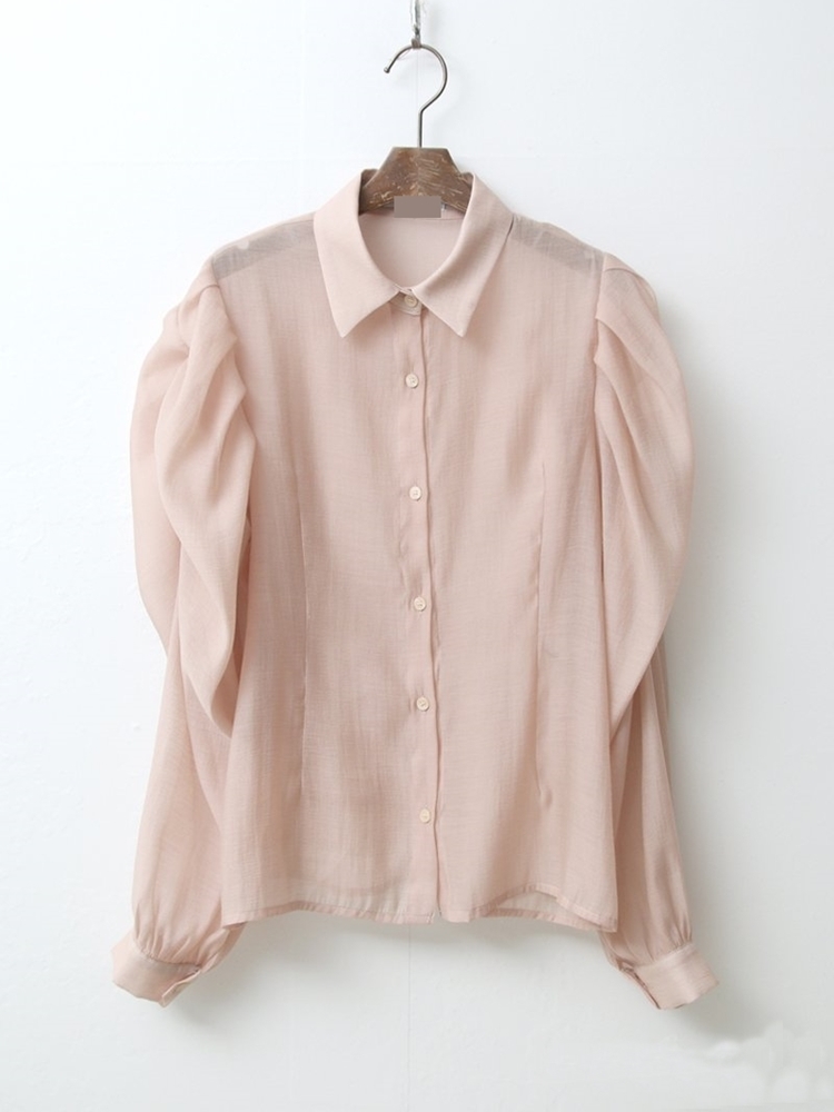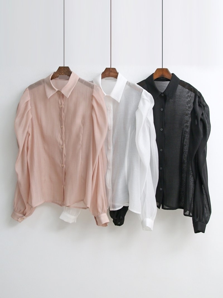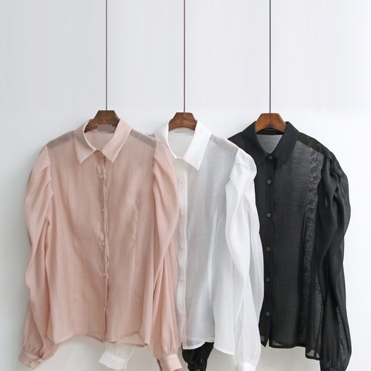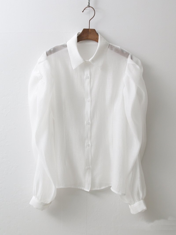 우아한 시스루 퍼프소매 셔츠 블라우스