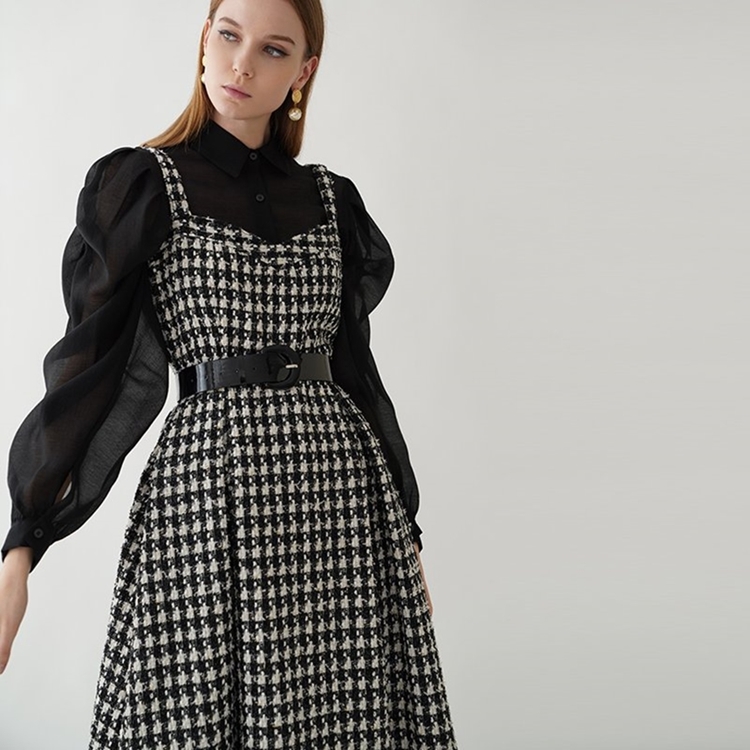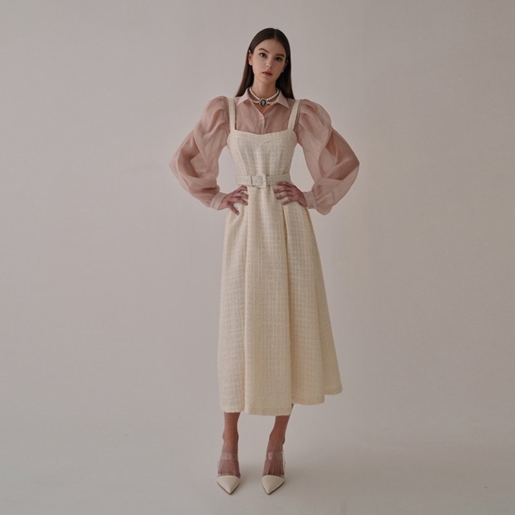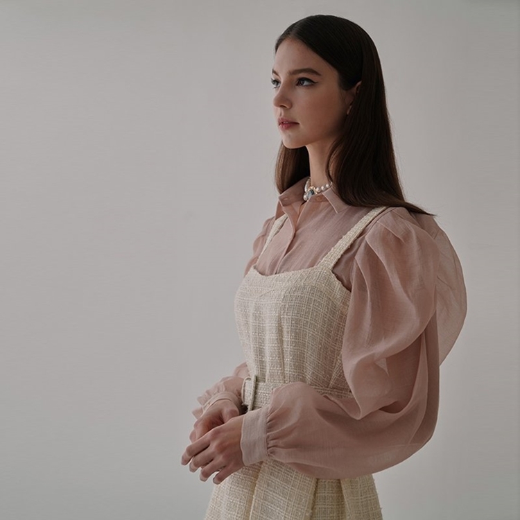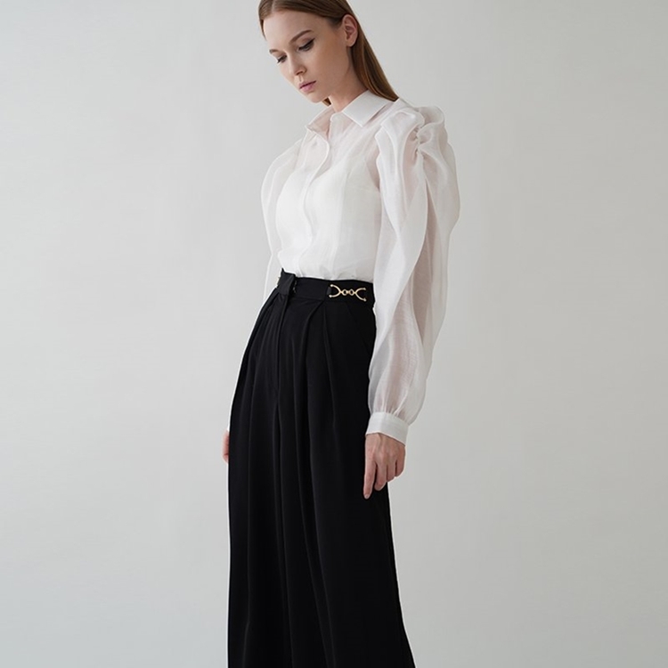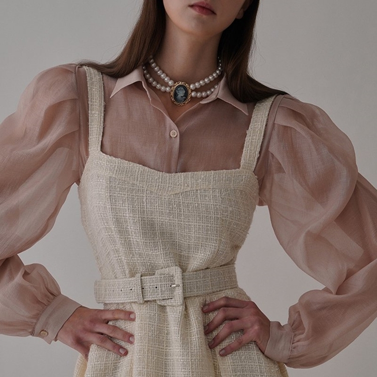 우아한 시스루 퍼프소매 셔츠 블라우스