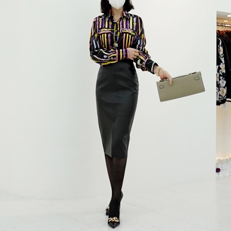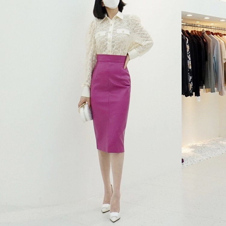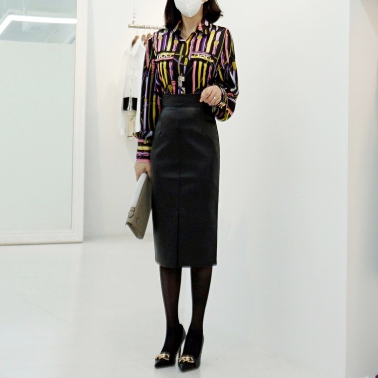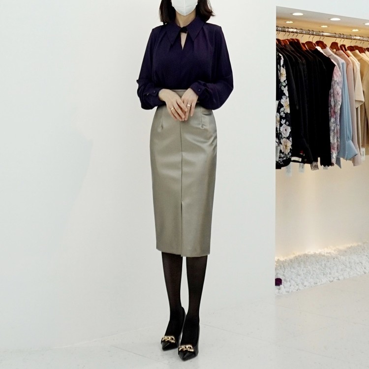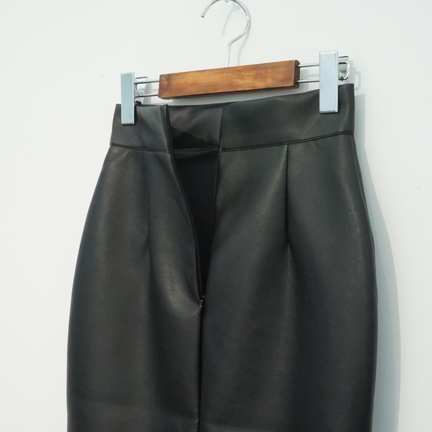 여성 앞트임 가죽 치마 시크한 하이웨스트