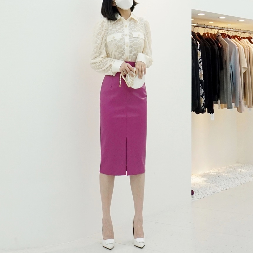 슬림 H라인 슬릿 미디 스커트