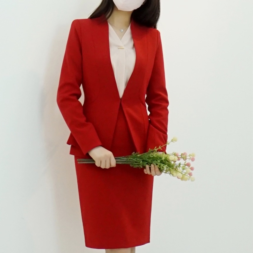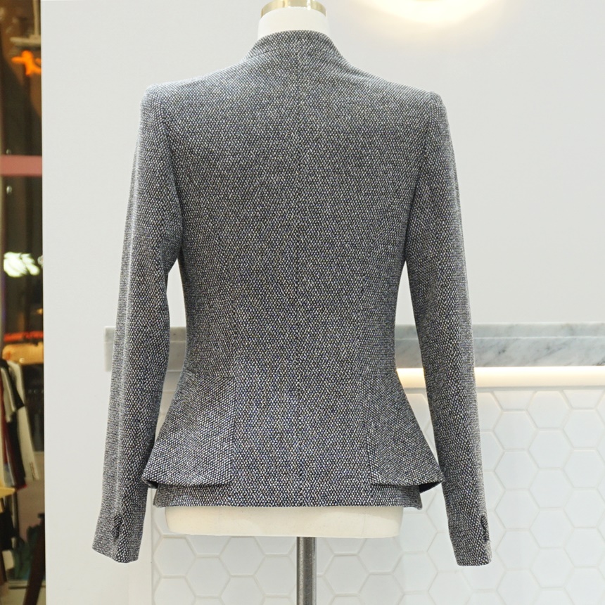 노카라 이중 페플럼 여성 오피스 정장 자켓