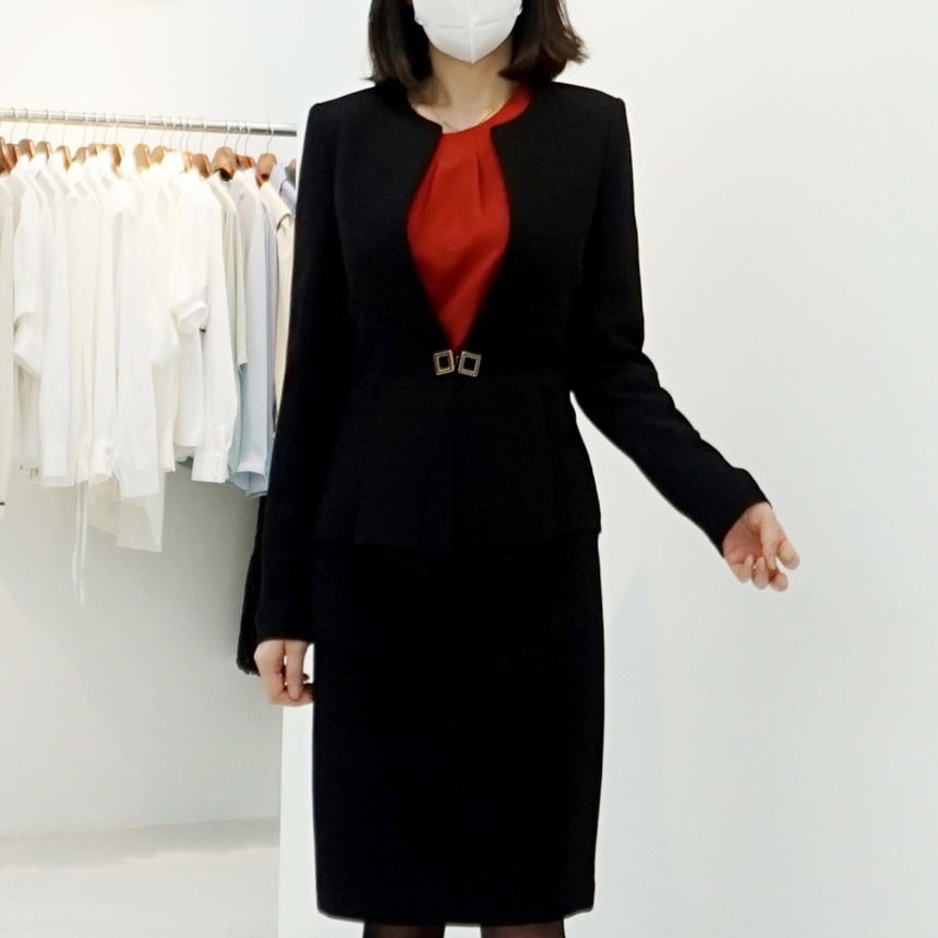 스퀘어 단추 밑단 절개 라인 정장 재킷