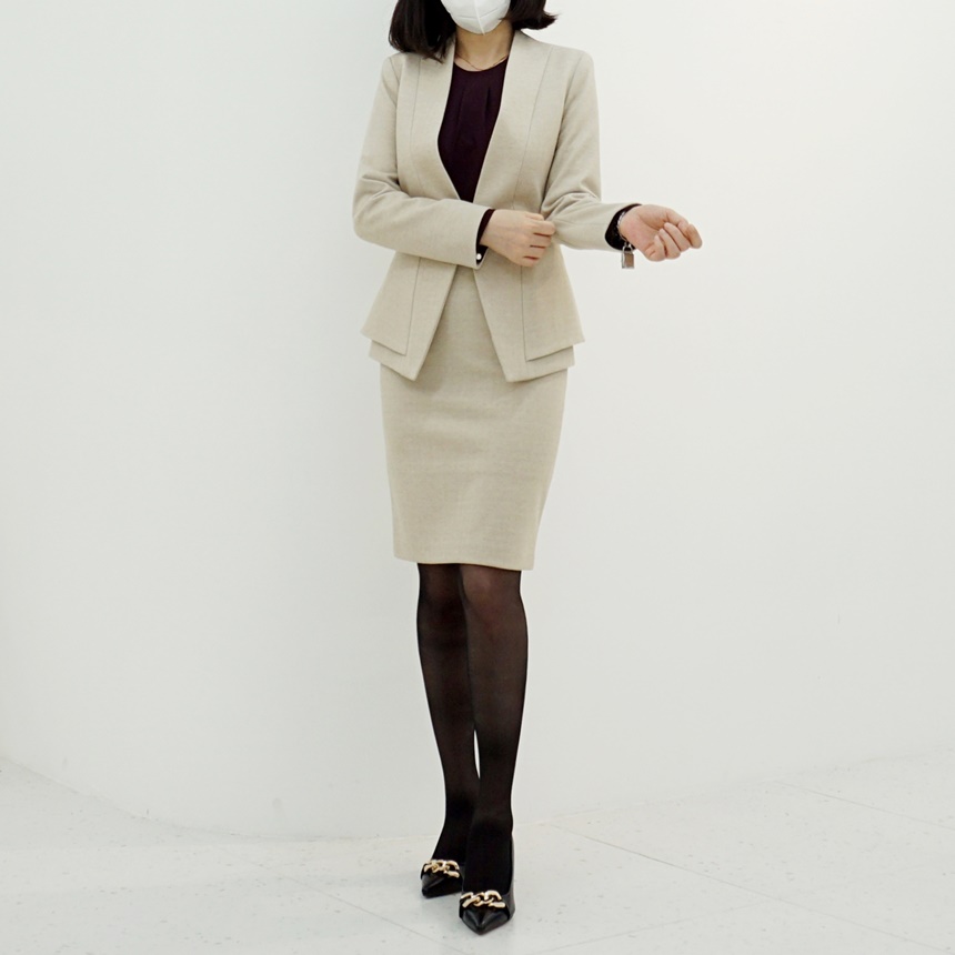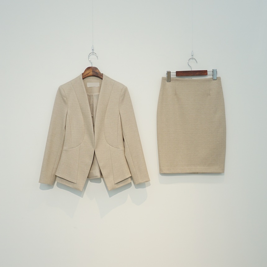 여성 치마정장 헤링본 노카라 자켓 스커트