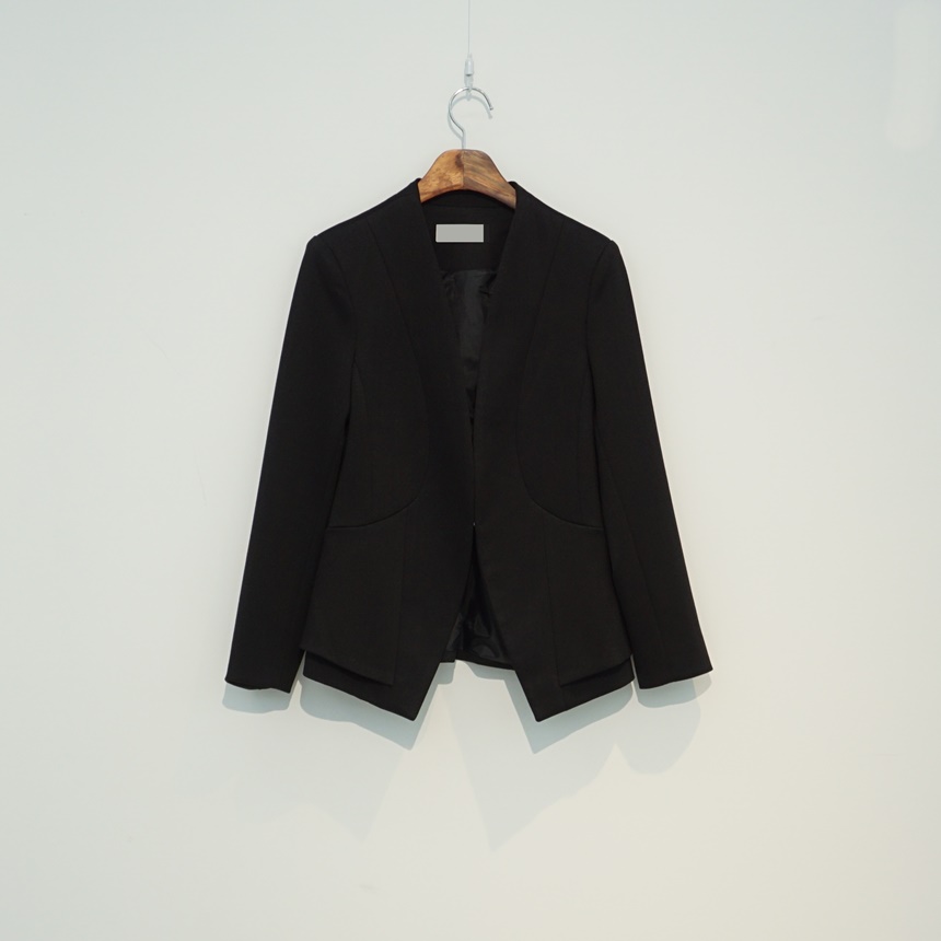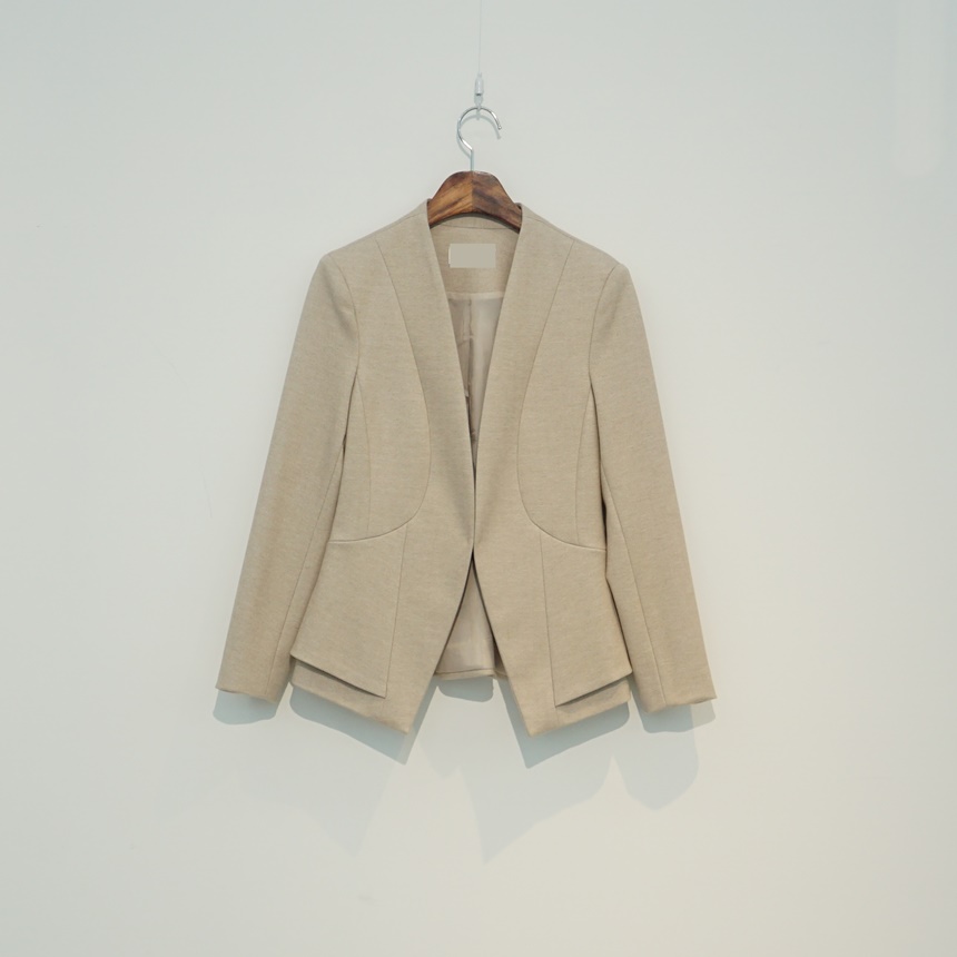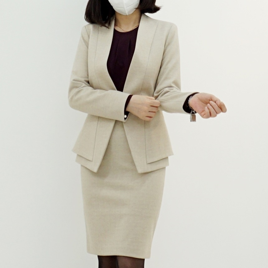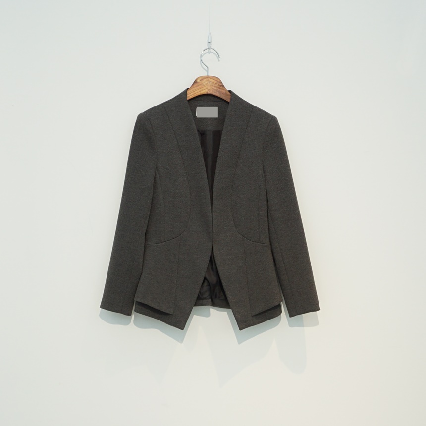 여성 가을 헤링본 노카라 자켓 슬림 스판