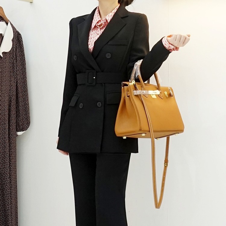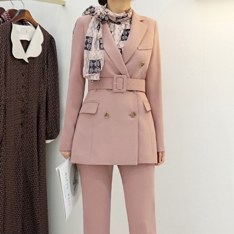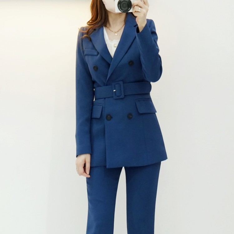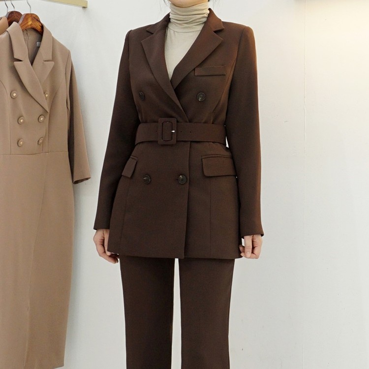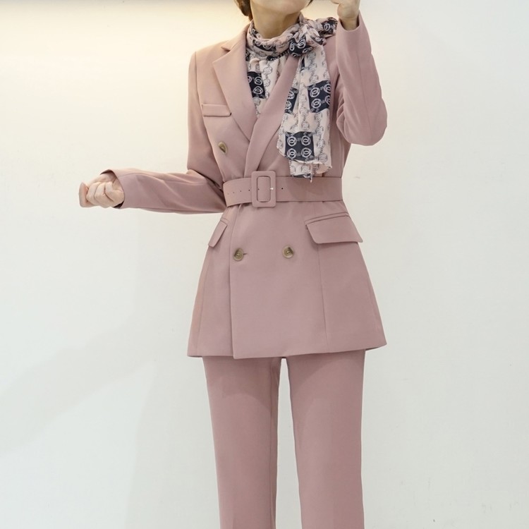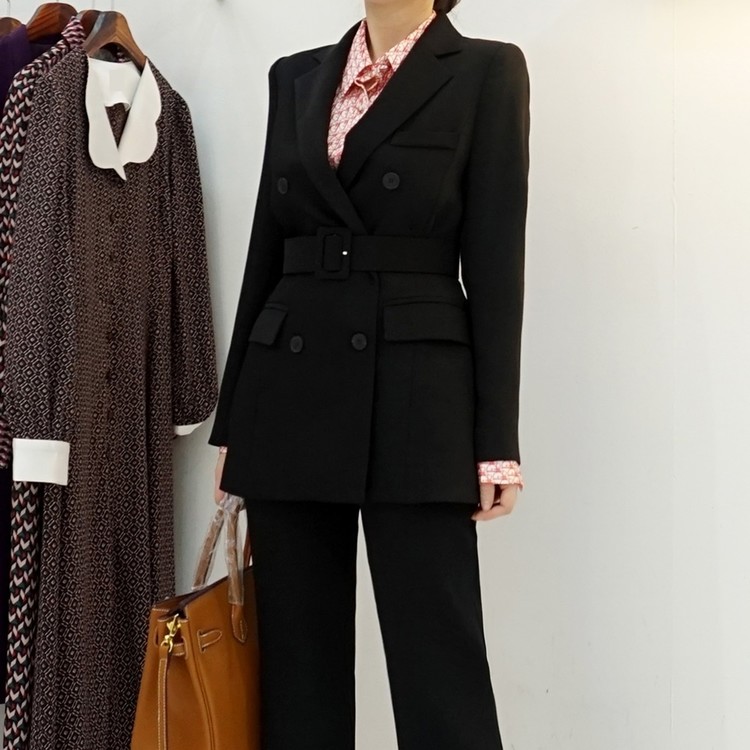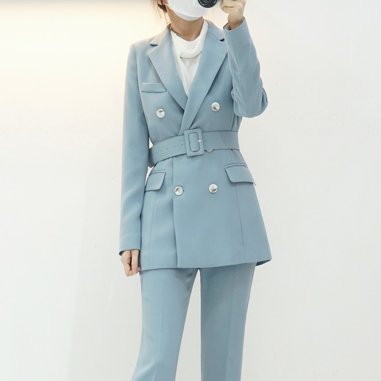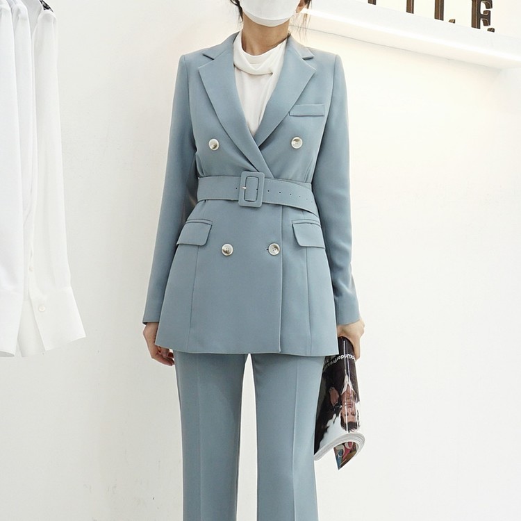 여성 봄 가을 정장 자켓 벨티드 투버튼