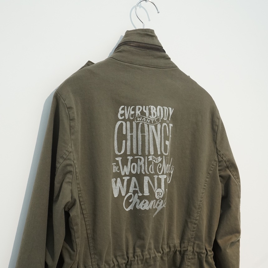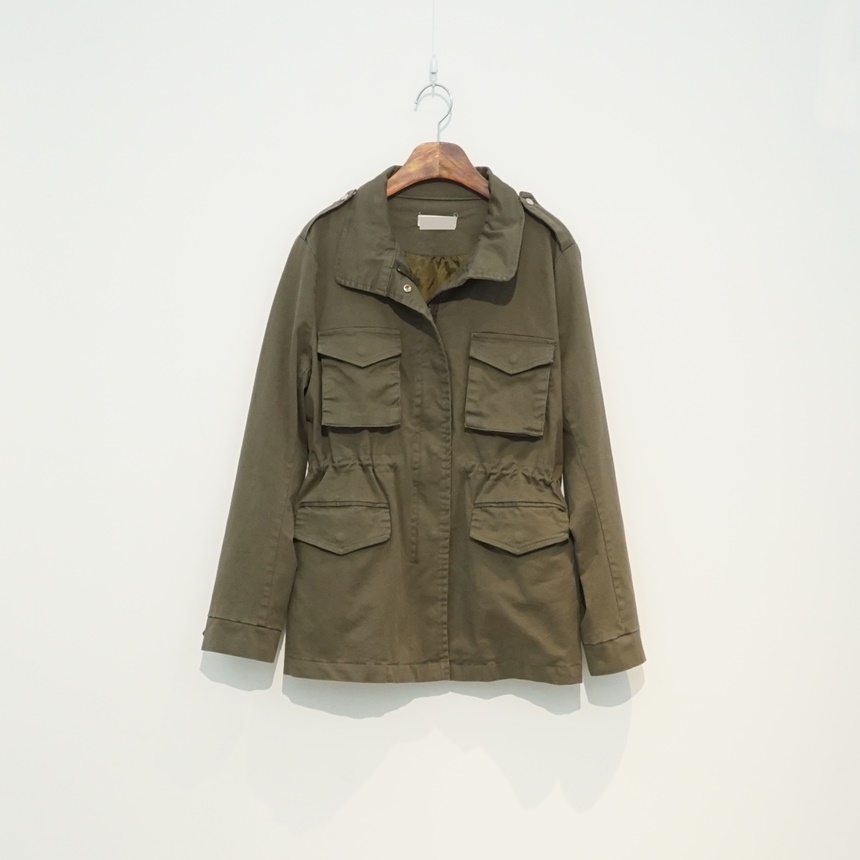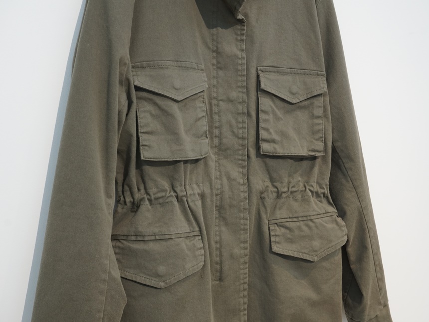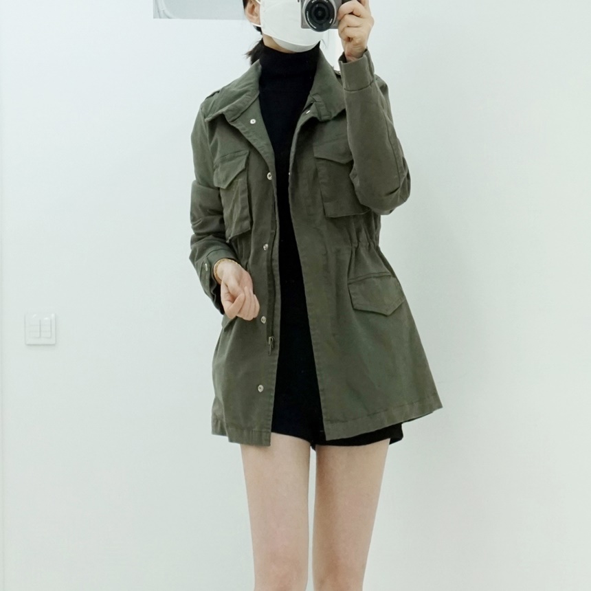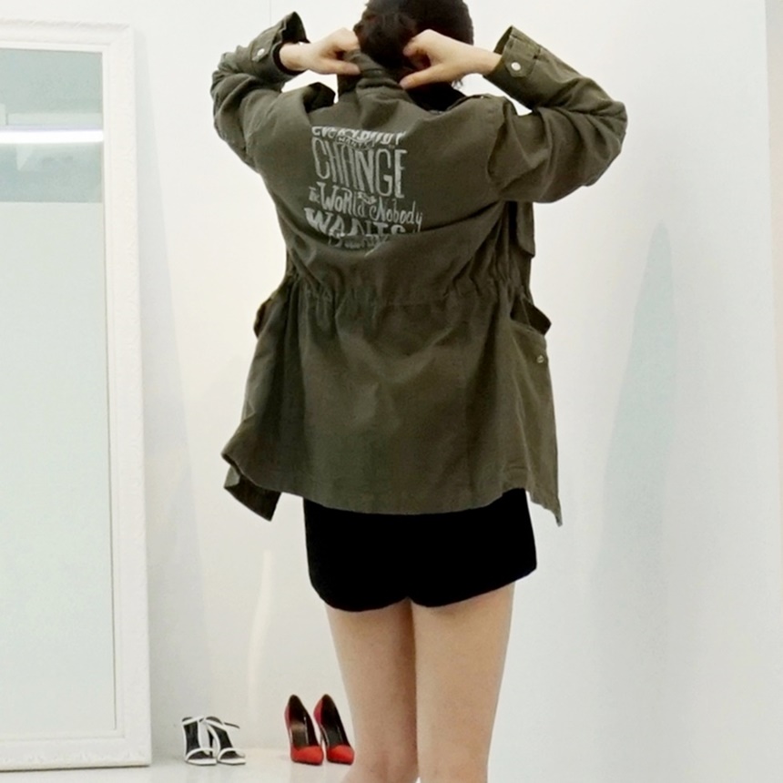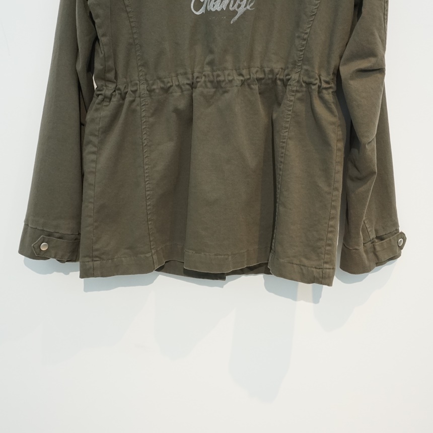 숏 야상 자켓 사방 스판 레터링 프린팅 어깨 견장
