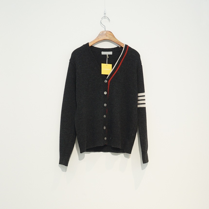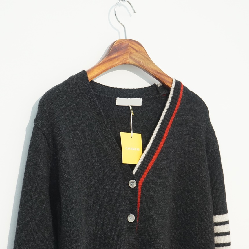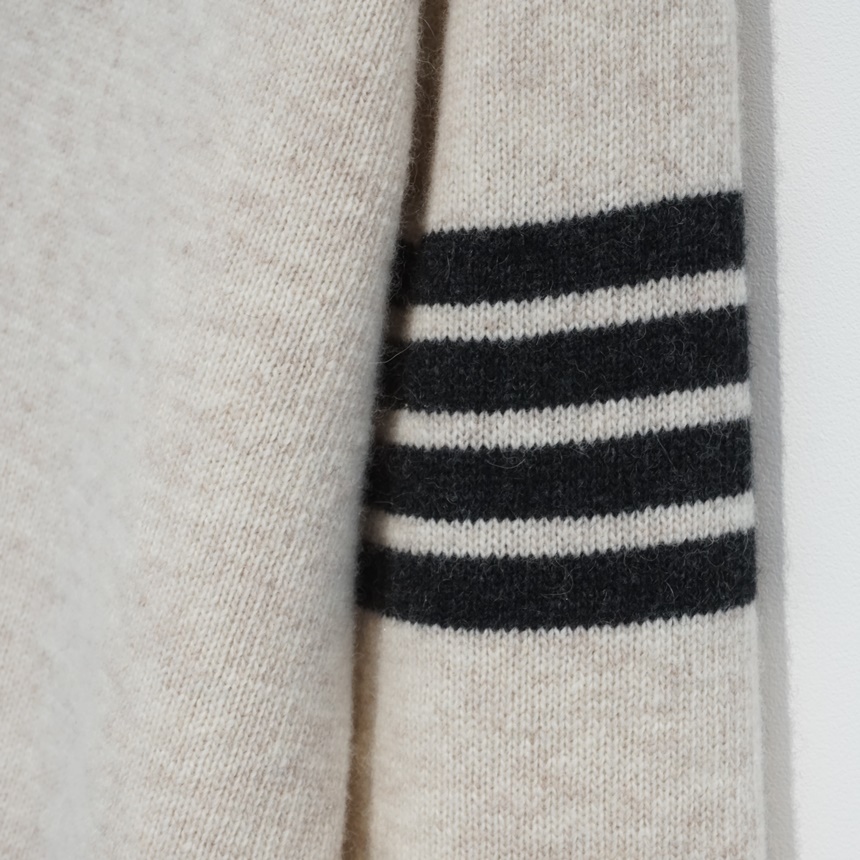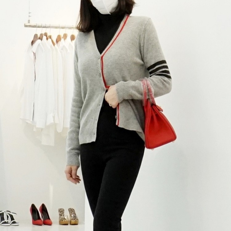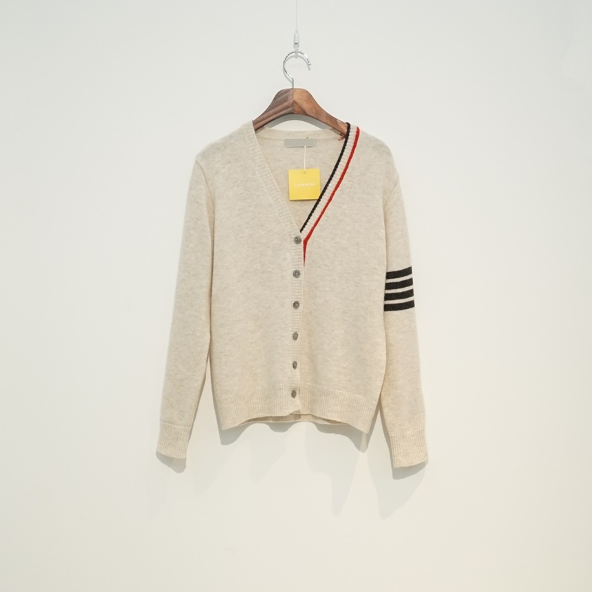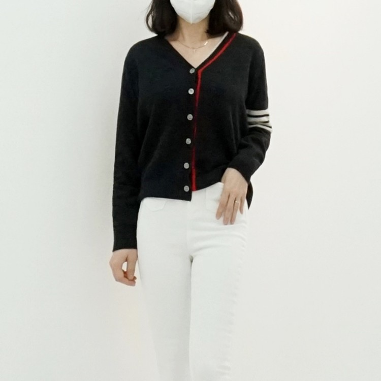 삼선 배색 콤비 브이넥 캐시미어 슈퍼파인울