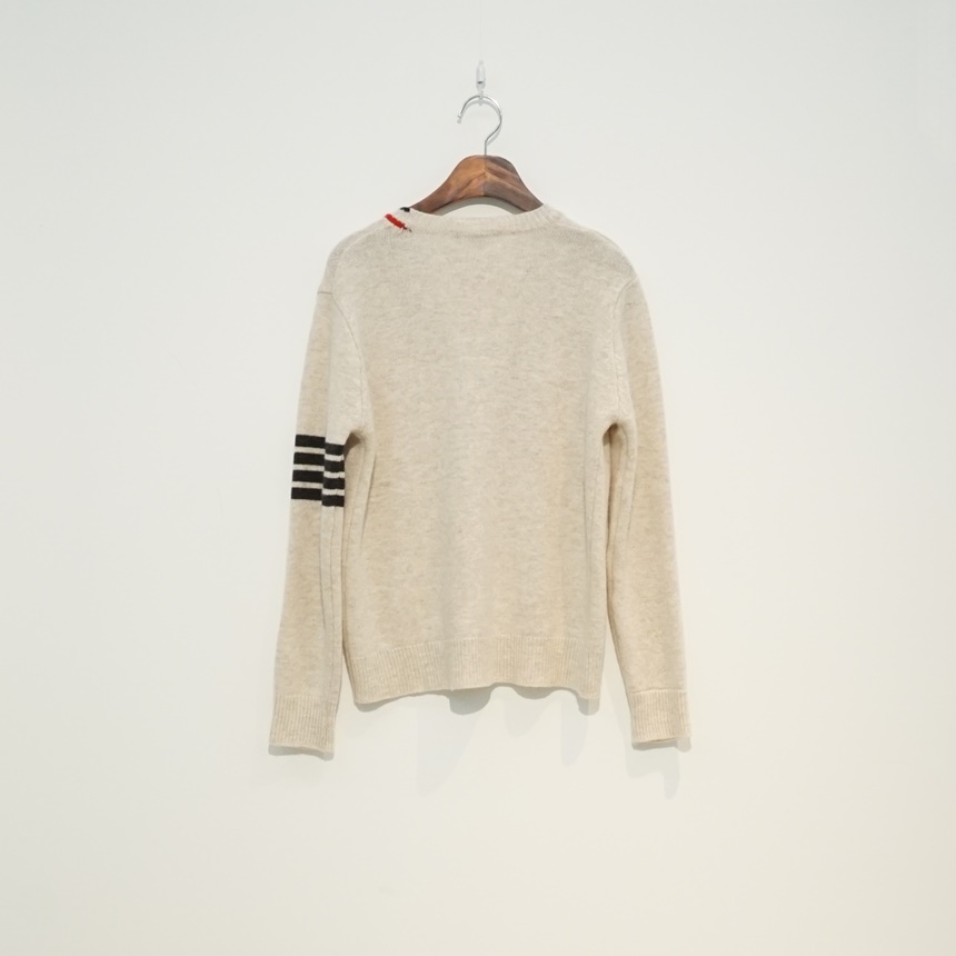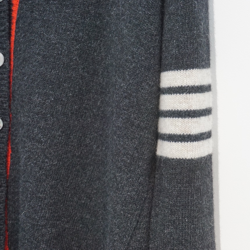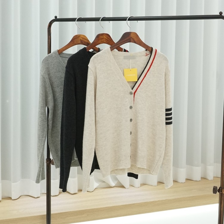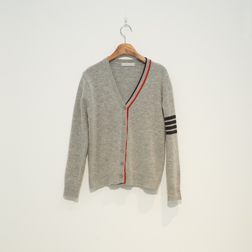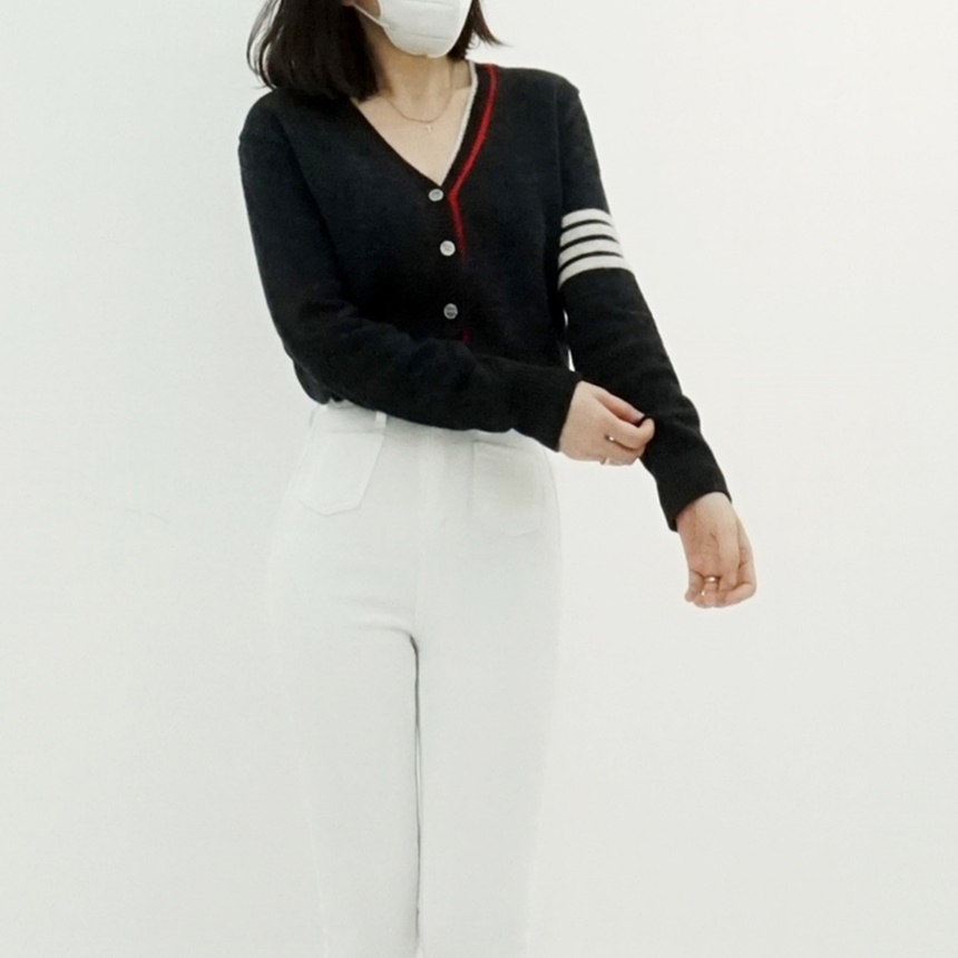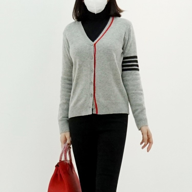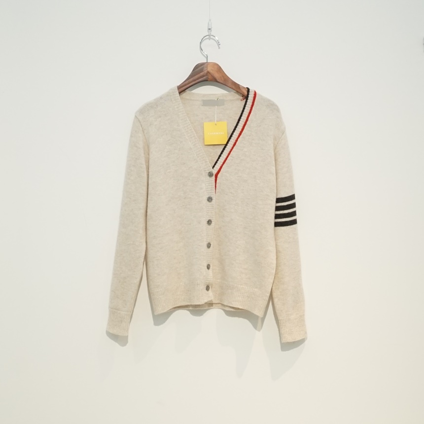 삼선 배색 콤비 브이넥 캐시미어 슈퍼파인울