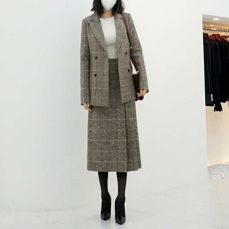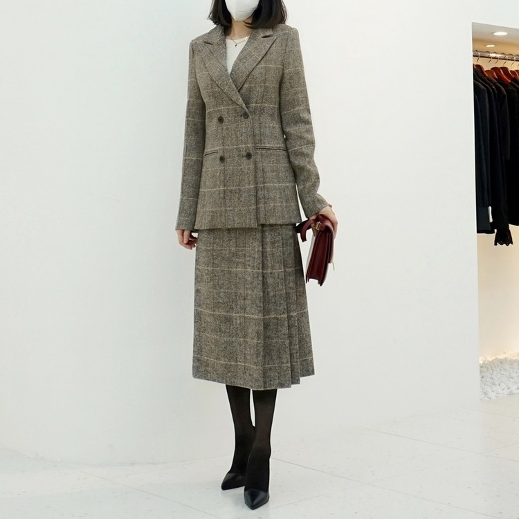 겨울 울 글렌체크 투피스 여성정장세트 테일러드