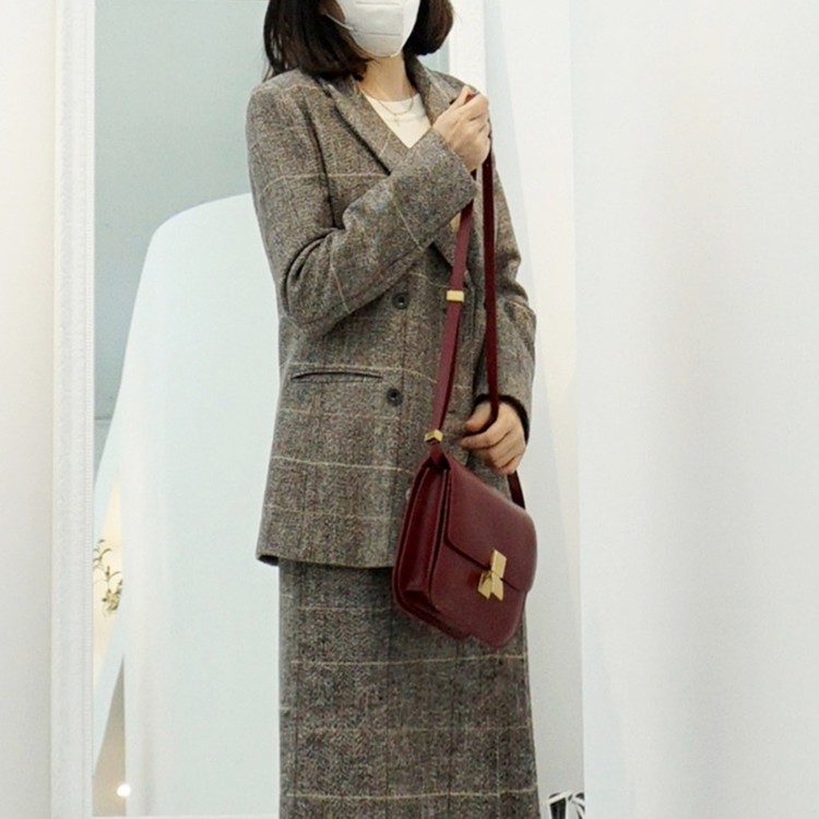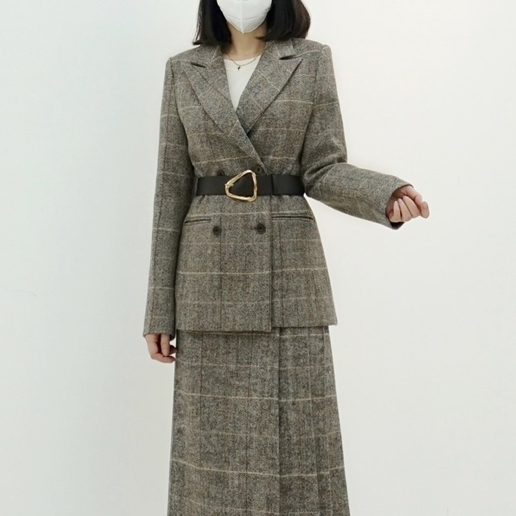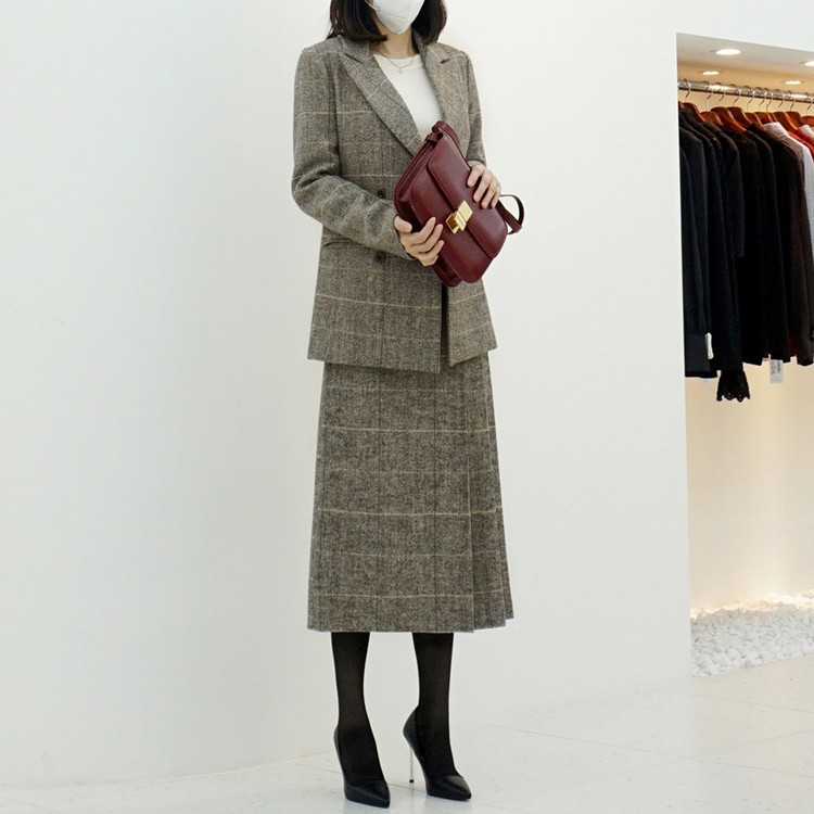 겨울 헤링본 울 글렌체크 세미 정장 자켓