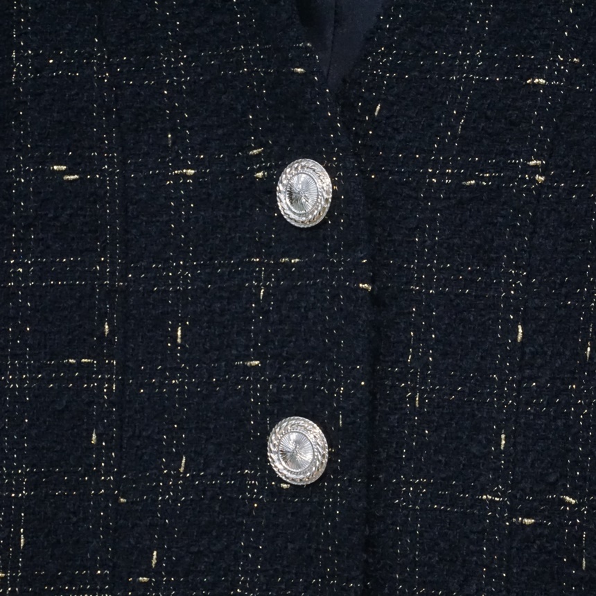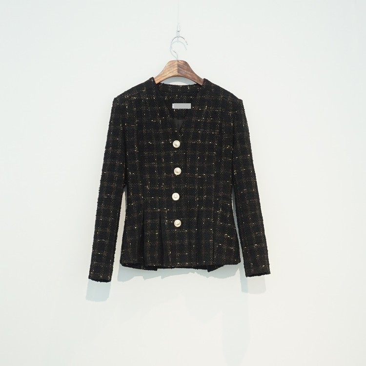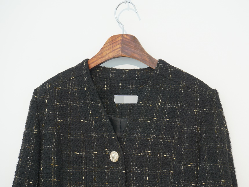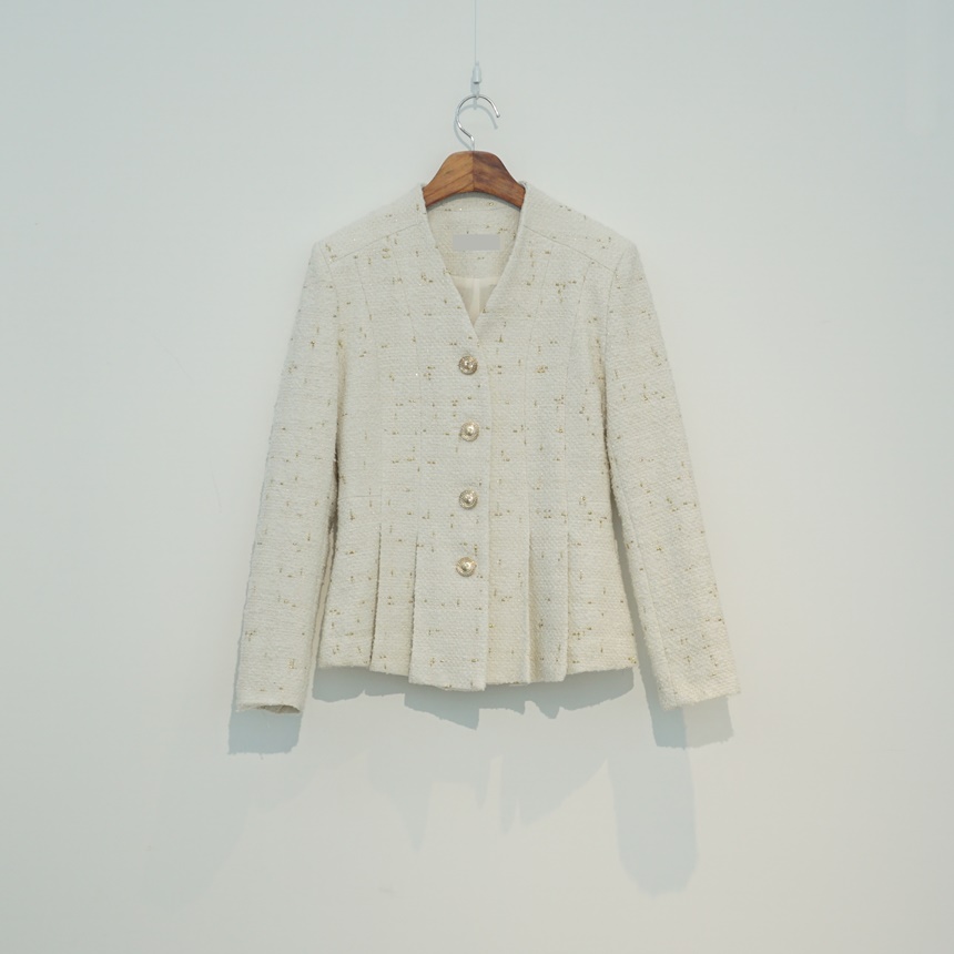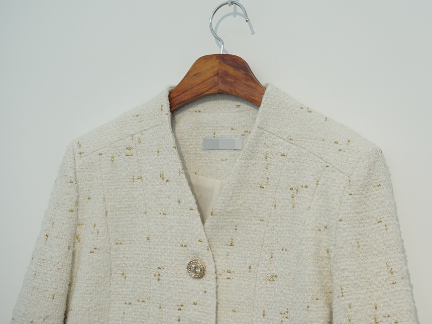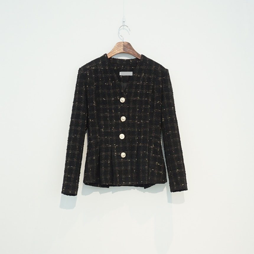 고급스러운 골드버튼 노카라 재킷 오피스룩