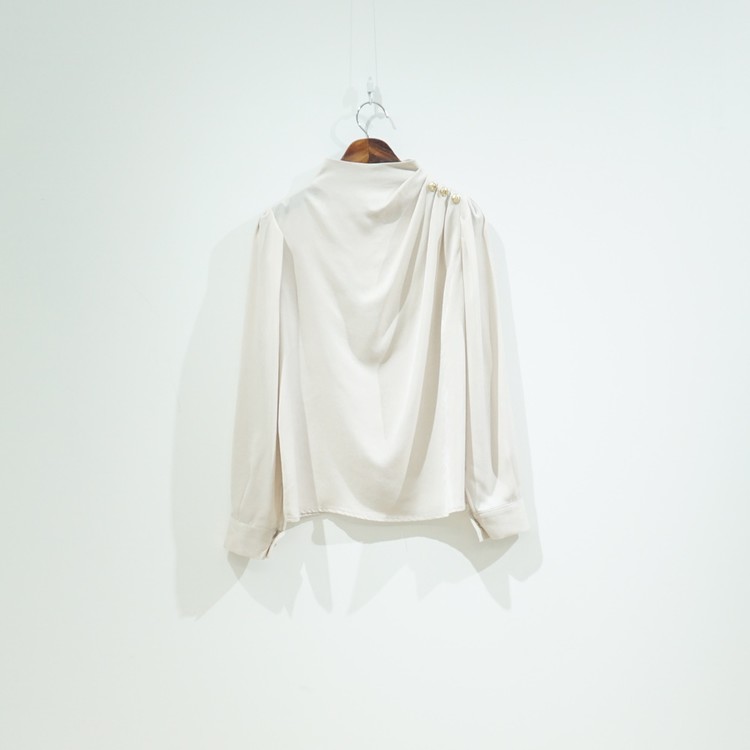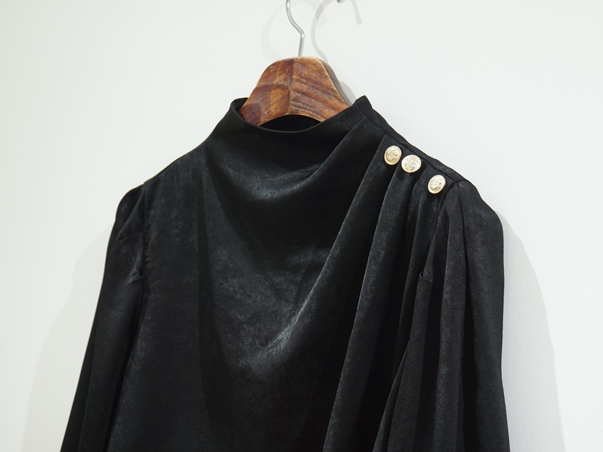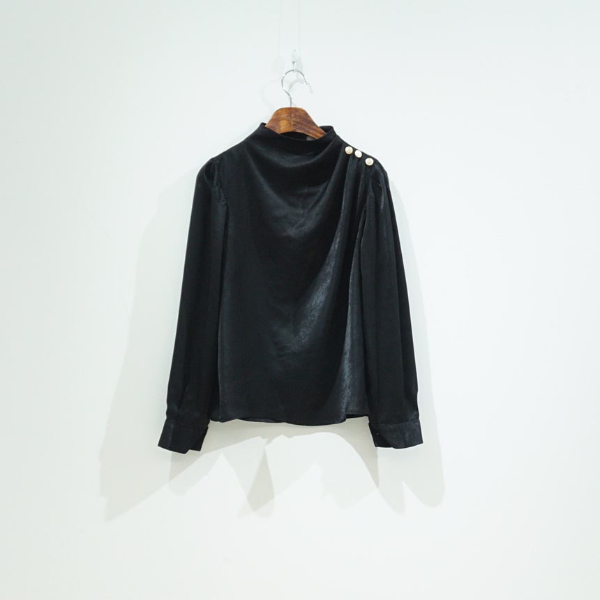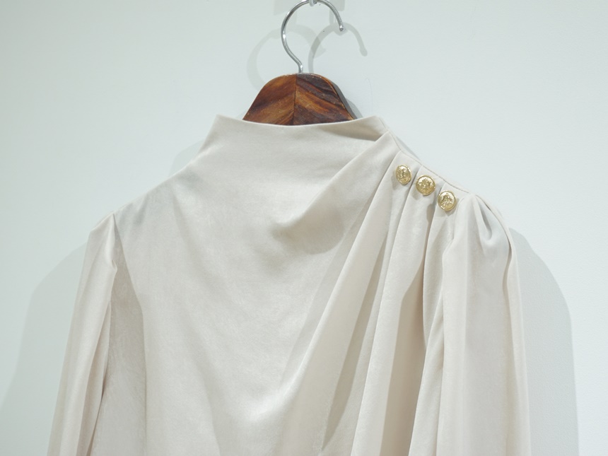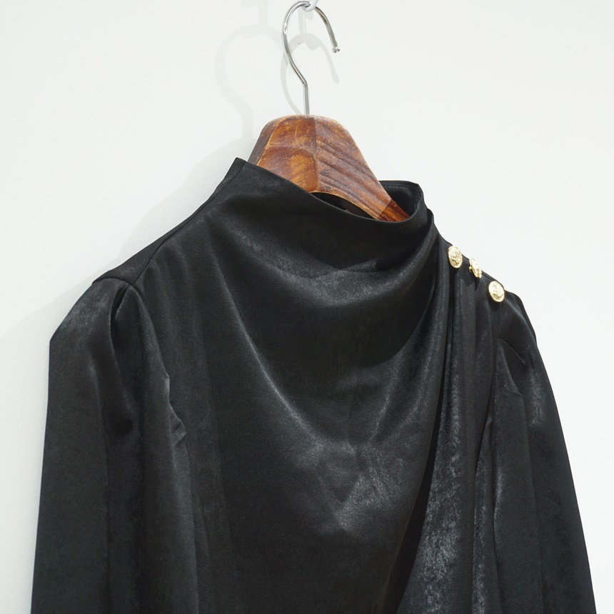 어깨 핀턱 골드 버튼 반하이넥 글로시