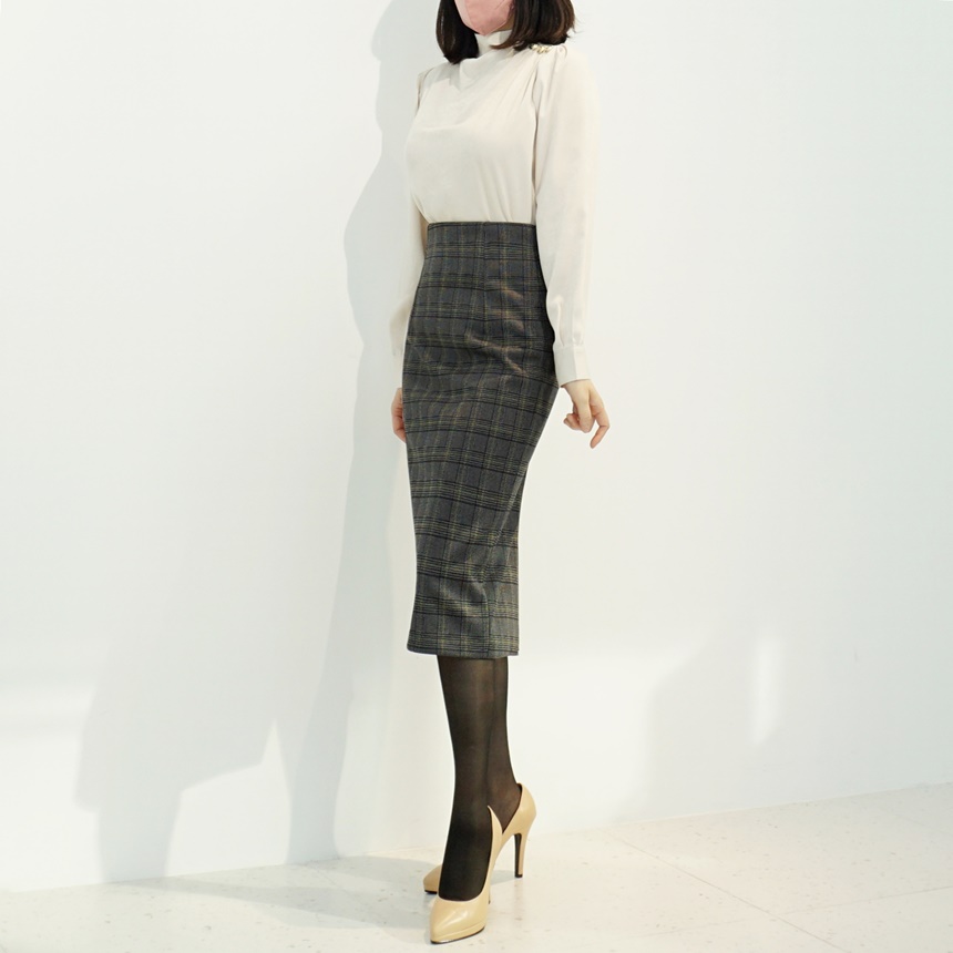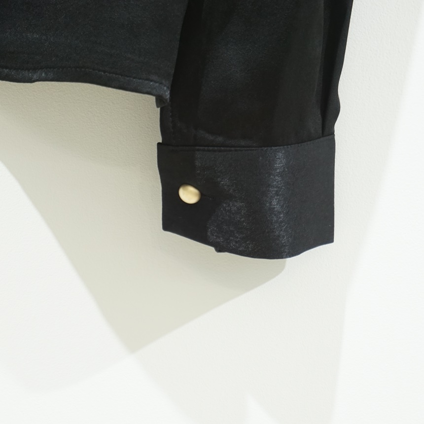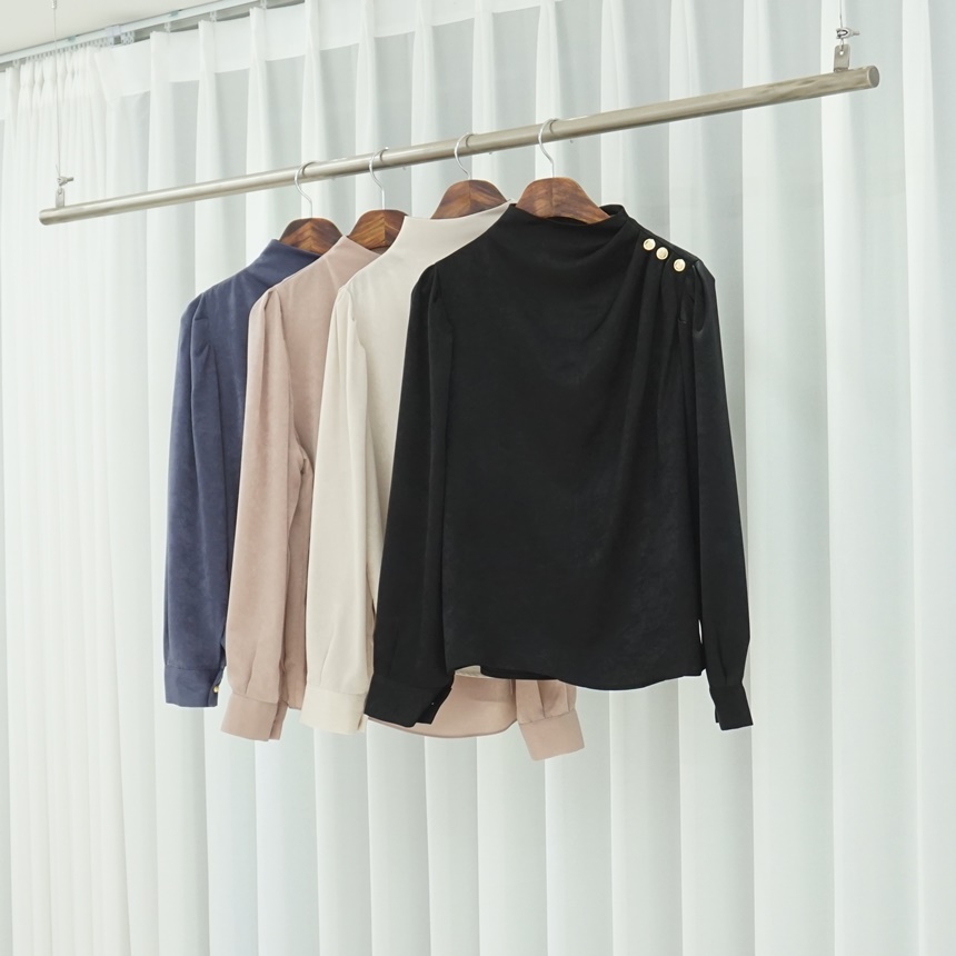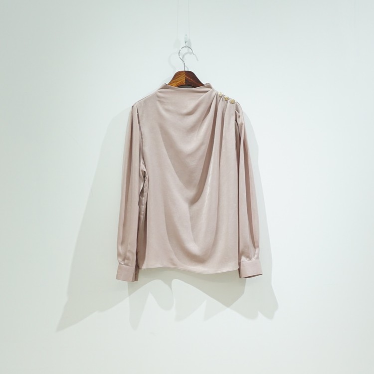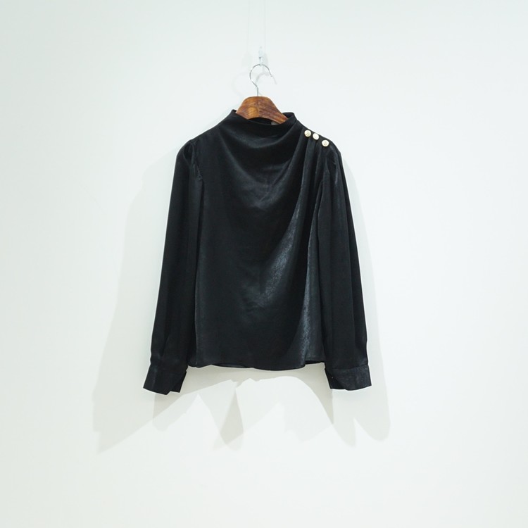어깨 핀턱 골드 버튼 반하이넥 글로시