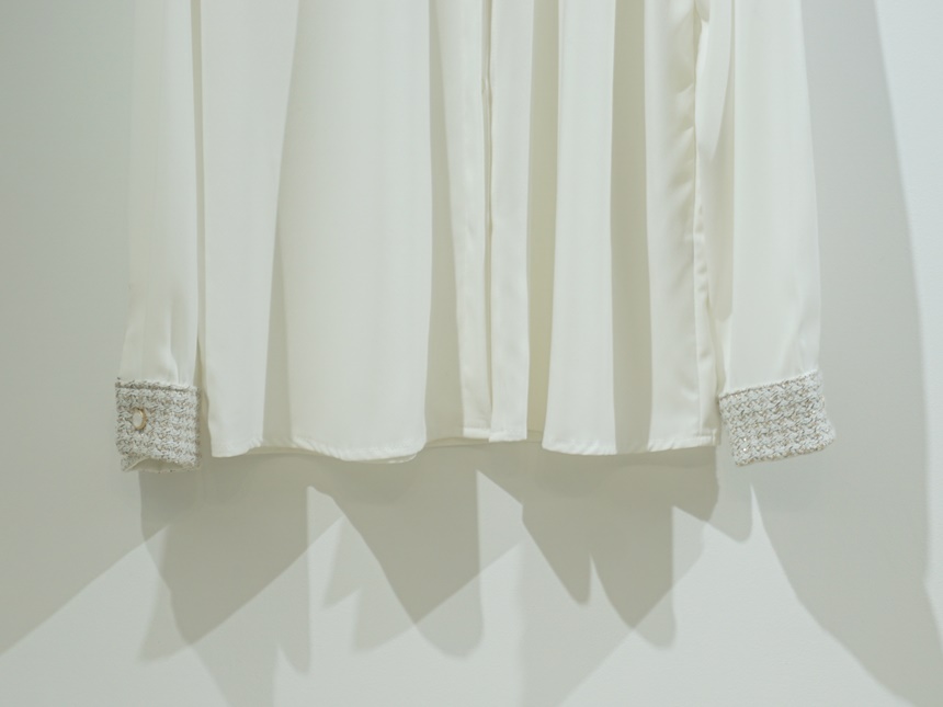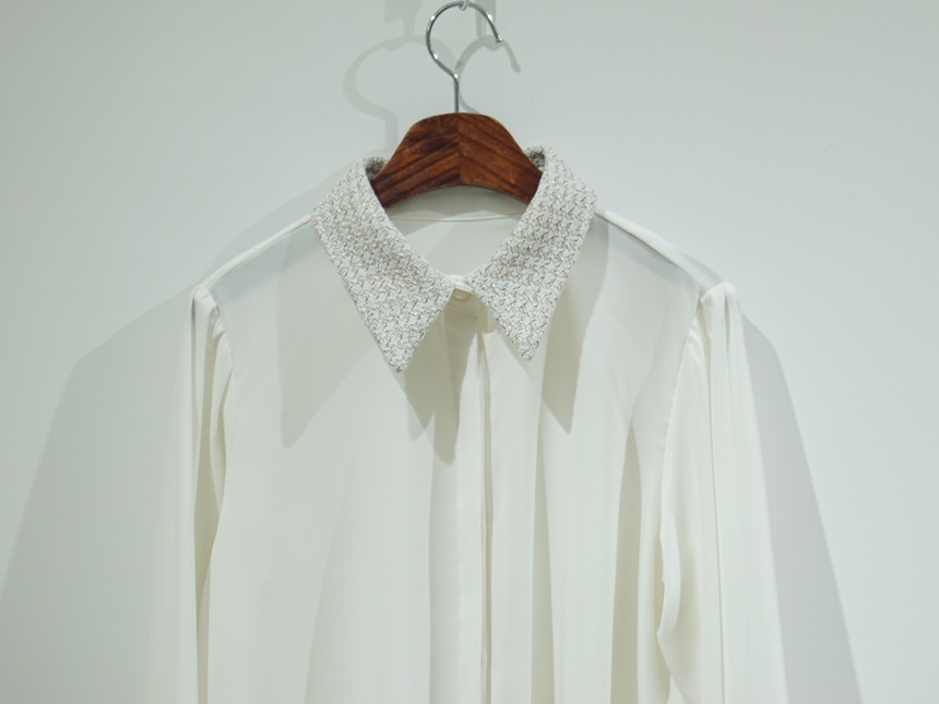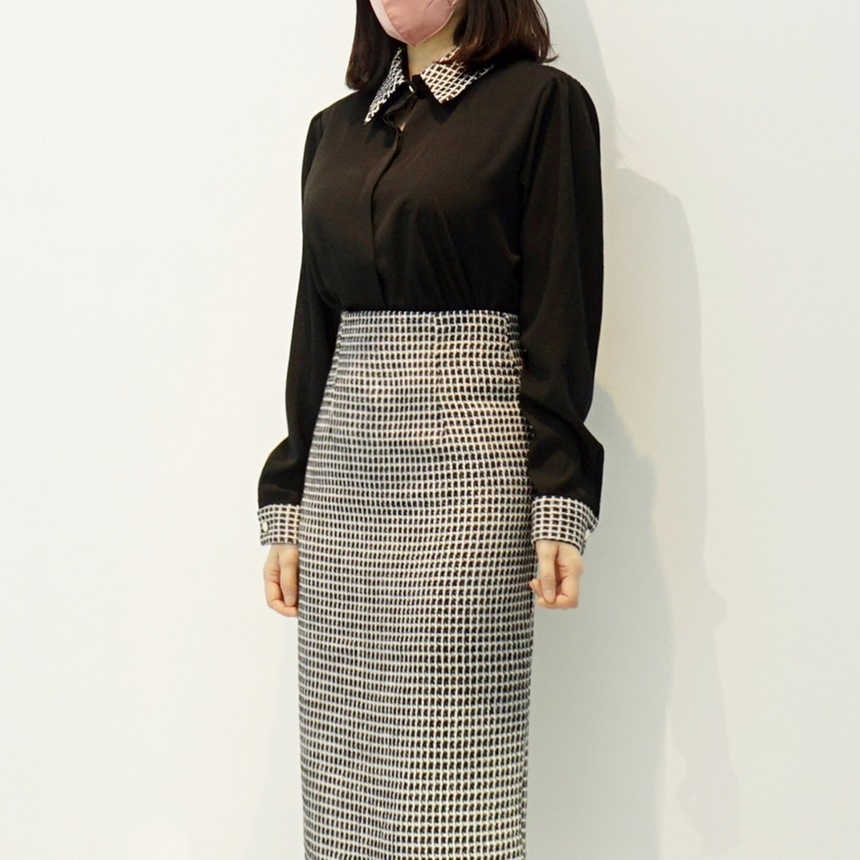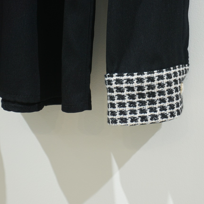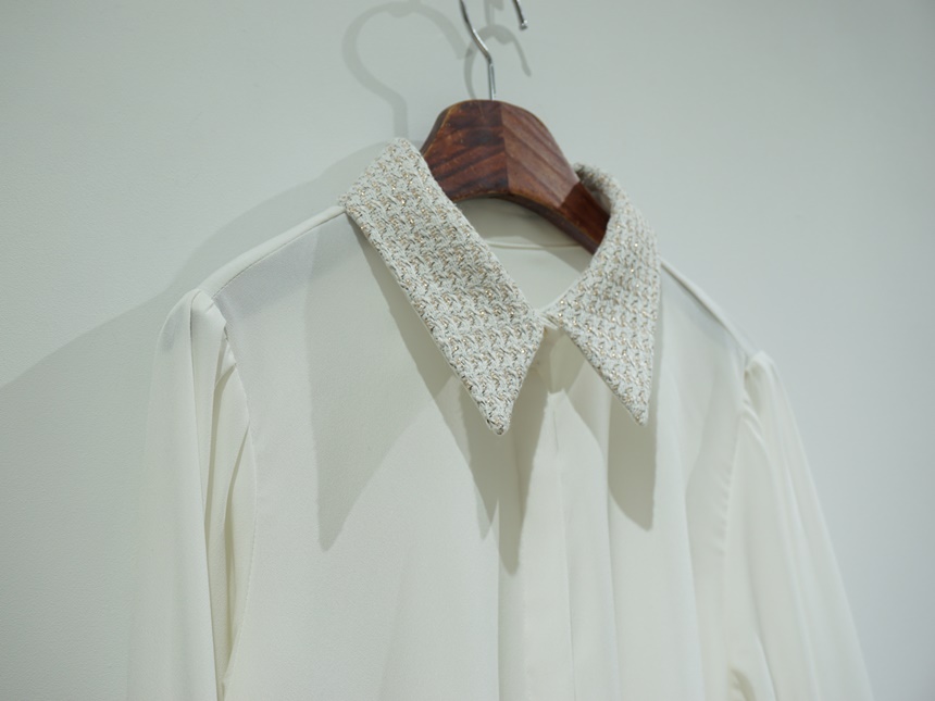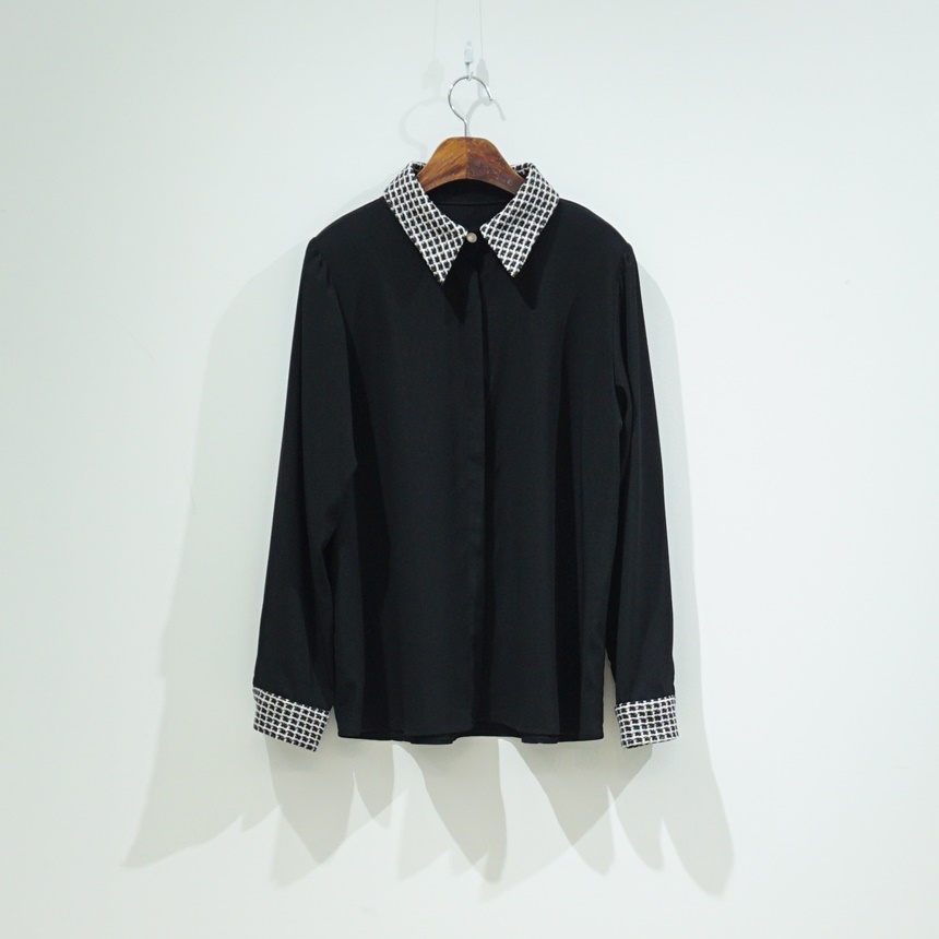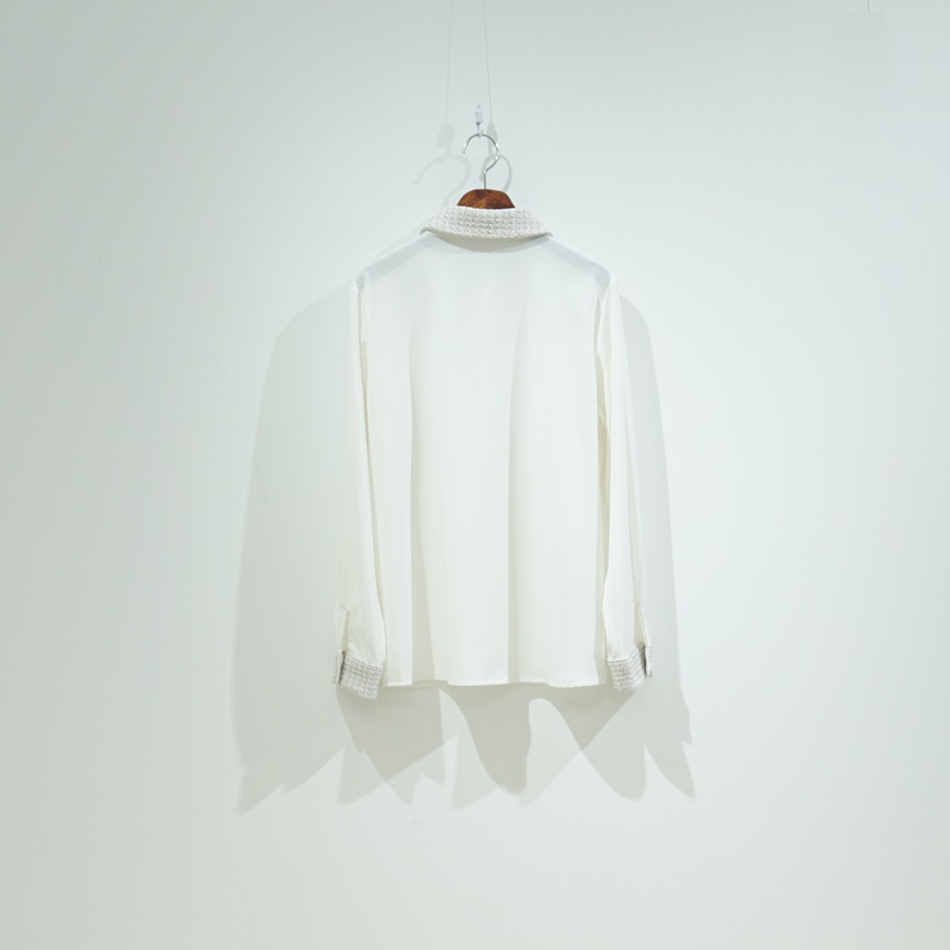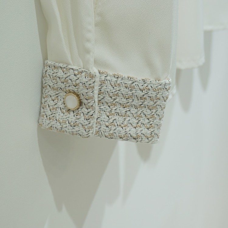 트위드 배색 콤비 블라우스