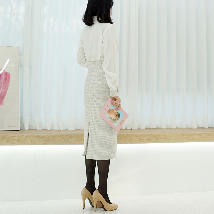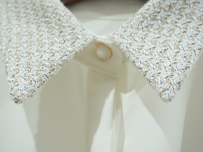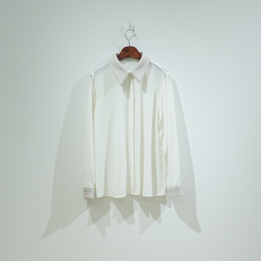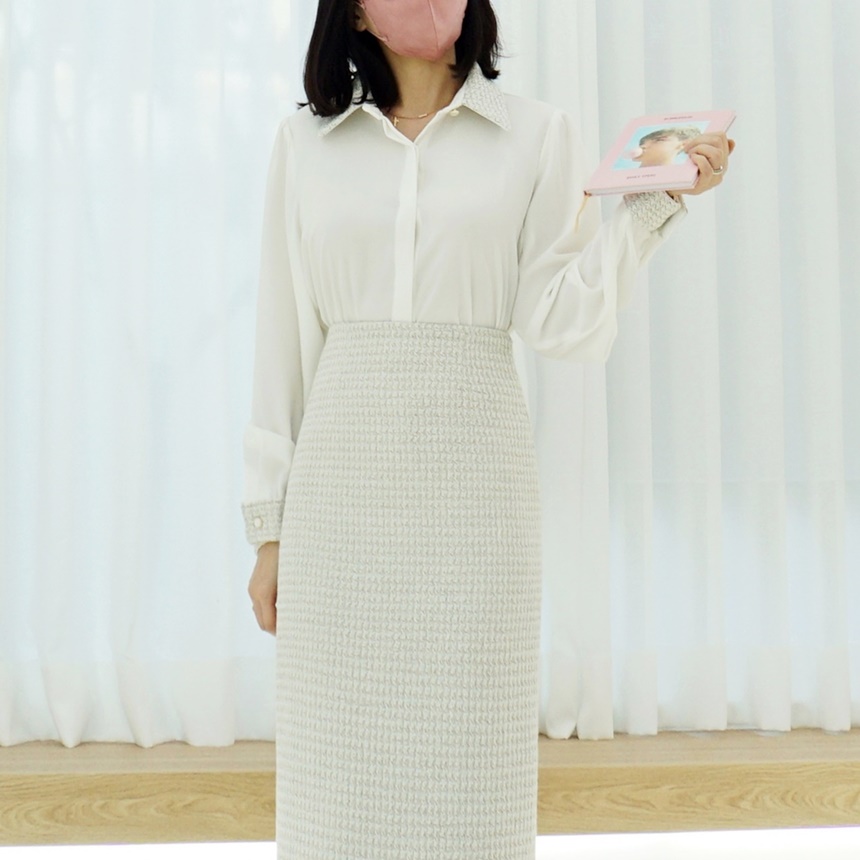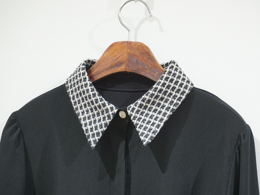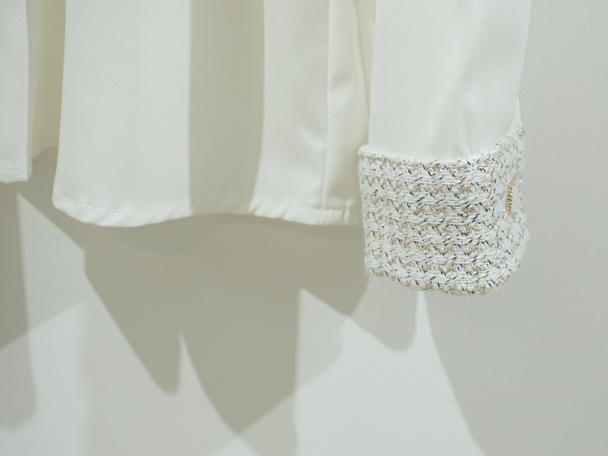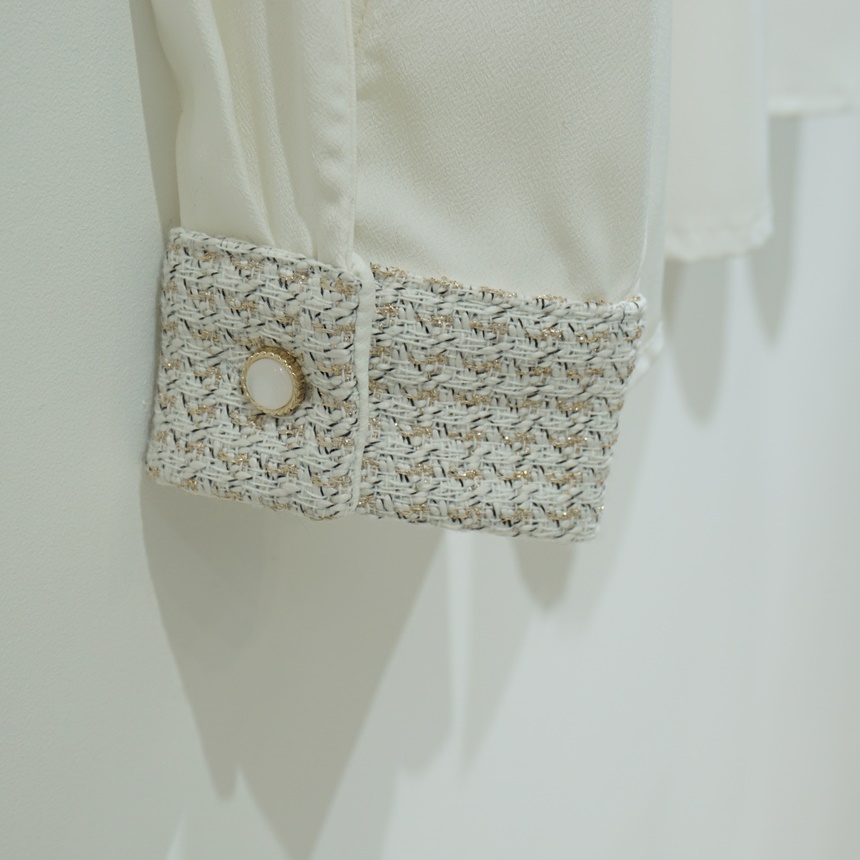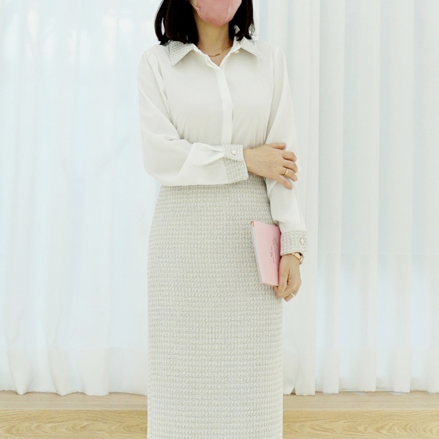 트위드 배색 콤비 쉬폰 정장 셔츠 블라우스