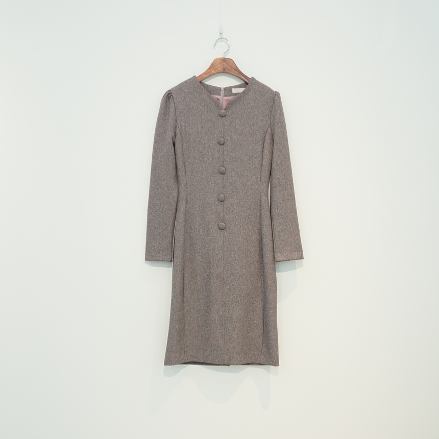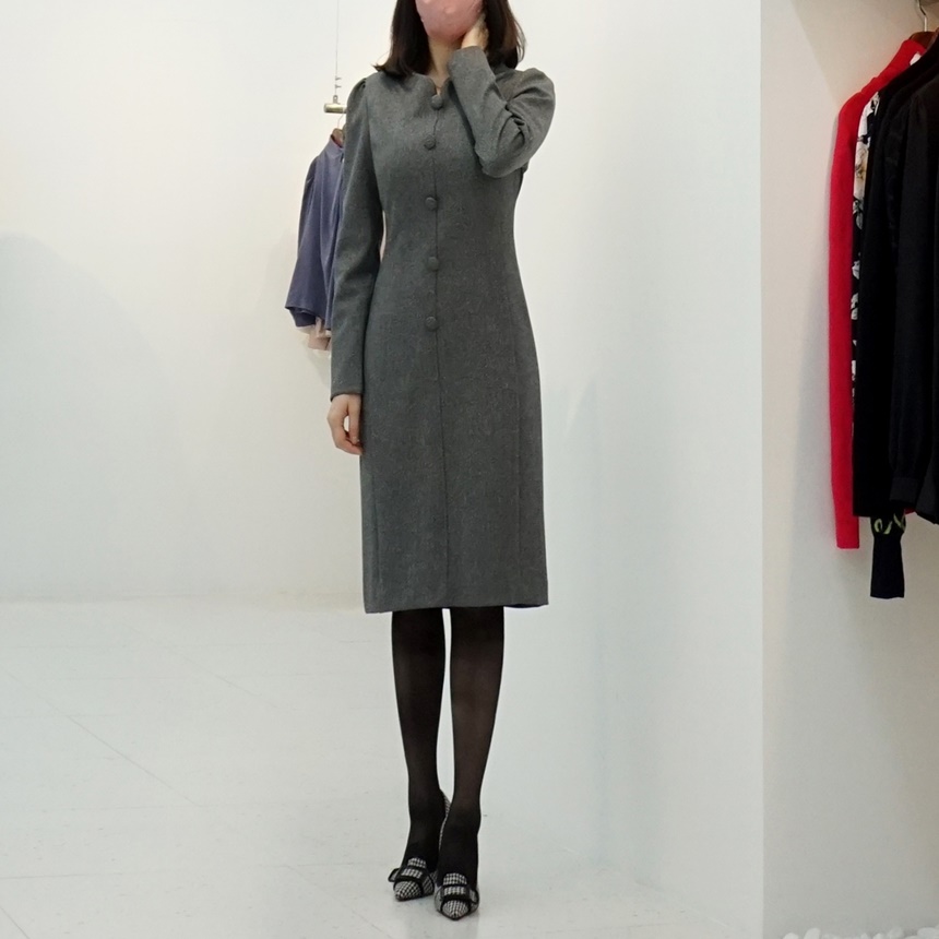 하트넥 어깨 핀턱 미디 H라인 슬림