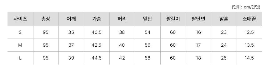 <사이즈> S, M, L