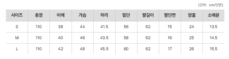 하단에 상세 사이즈표 참고 바랍니다