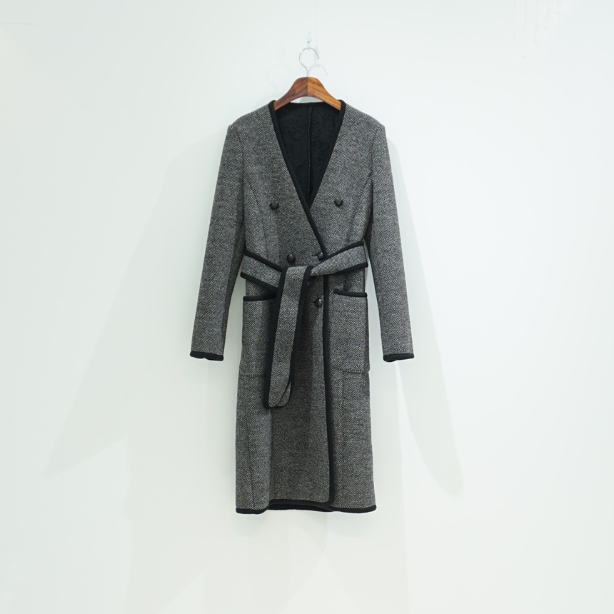 벨트set 노카라 브이넥 울 롱 코트 블랙