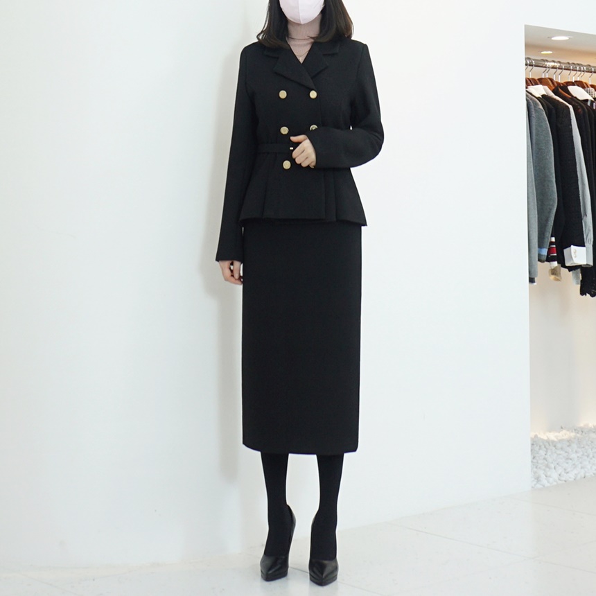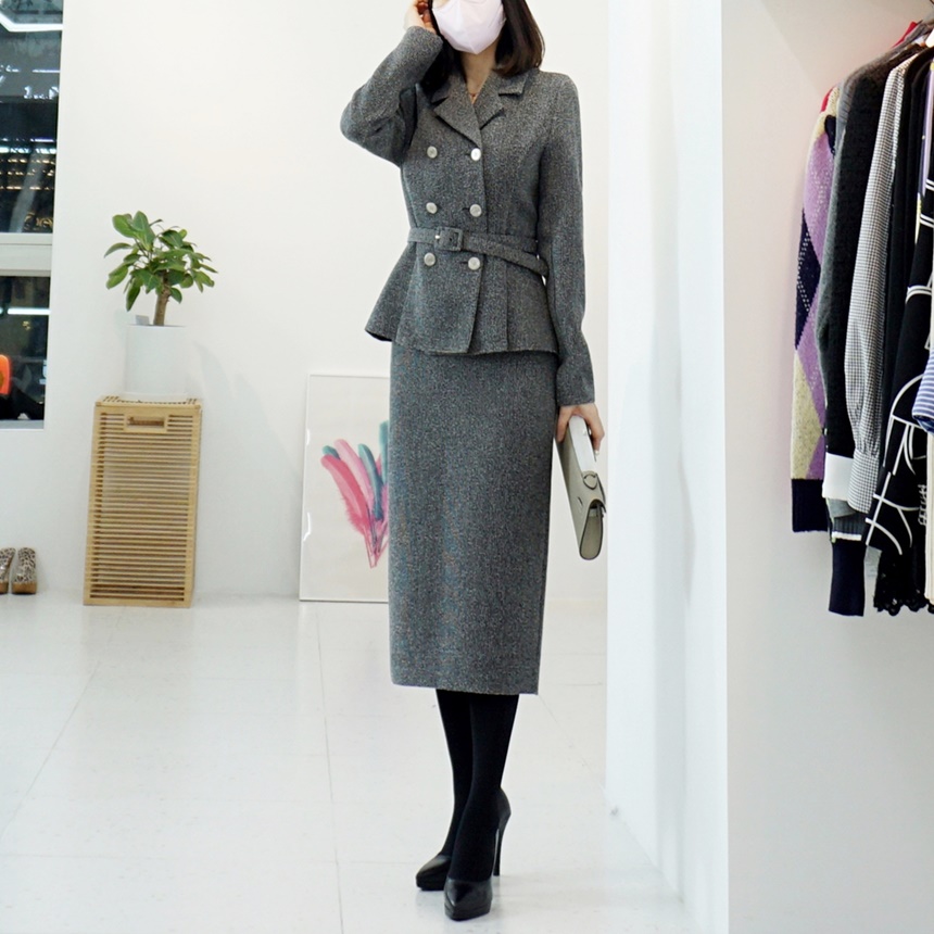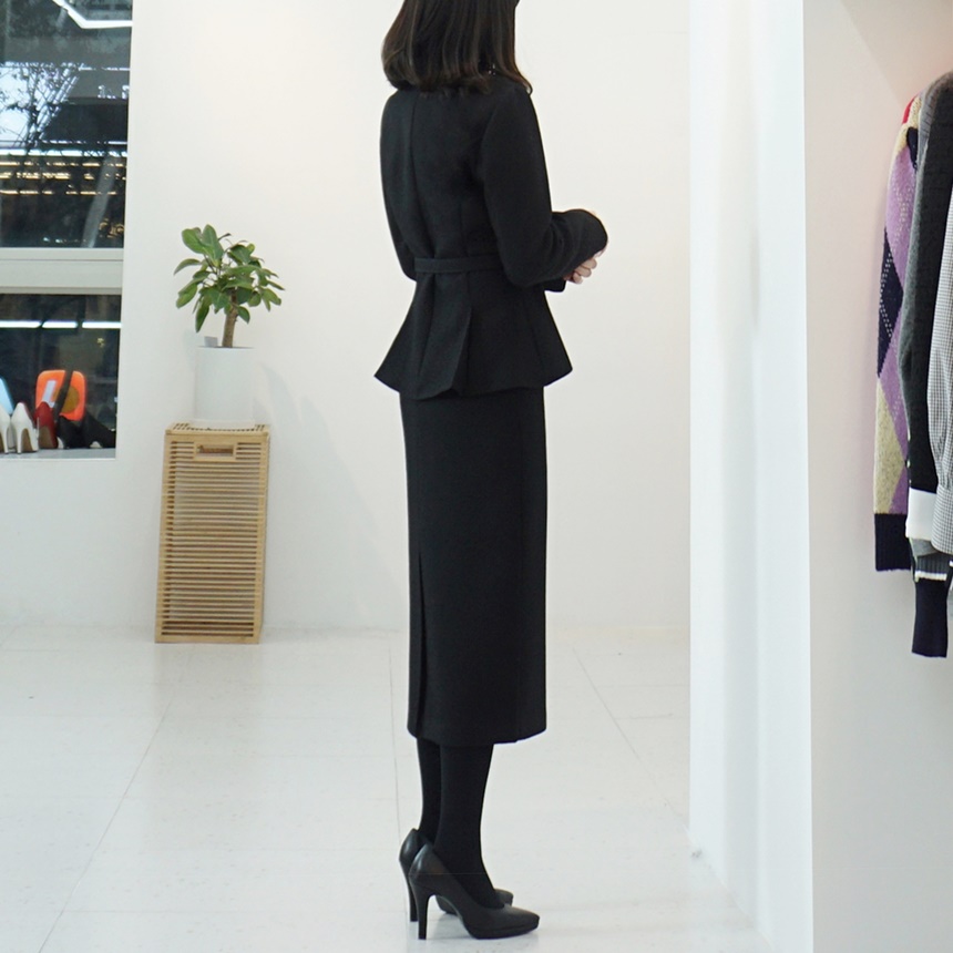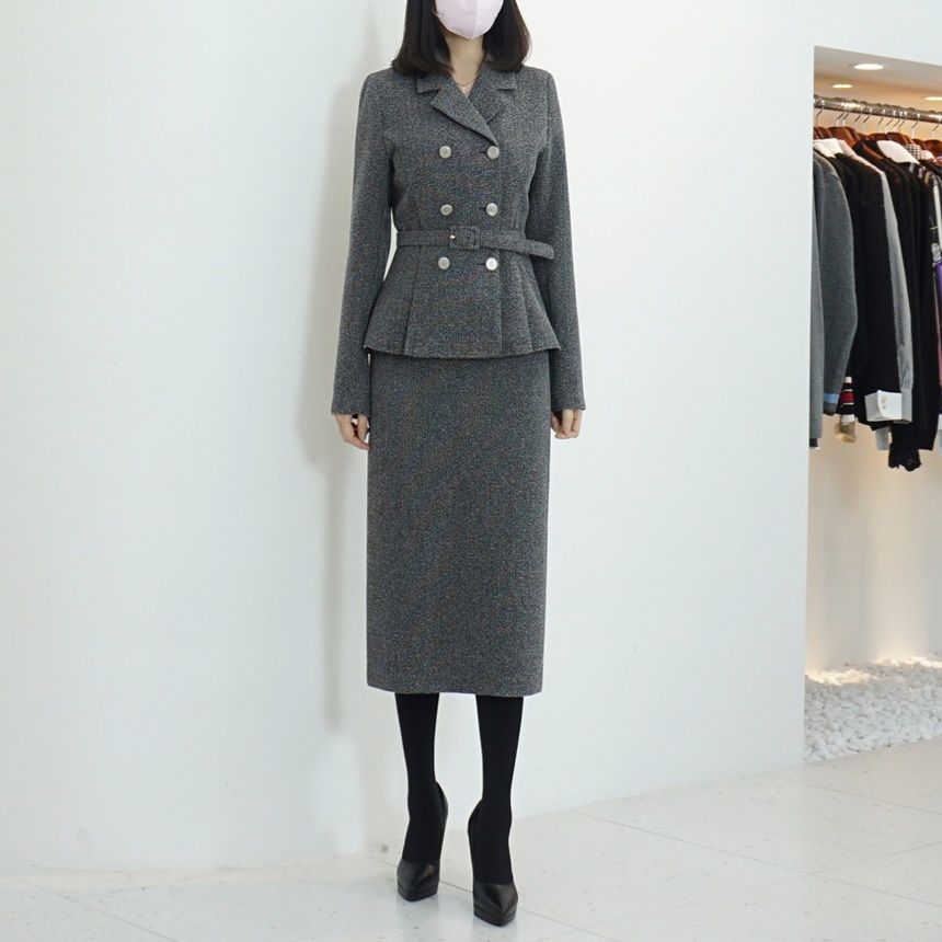 벨티드 치마정장세트 페플럼 자켓