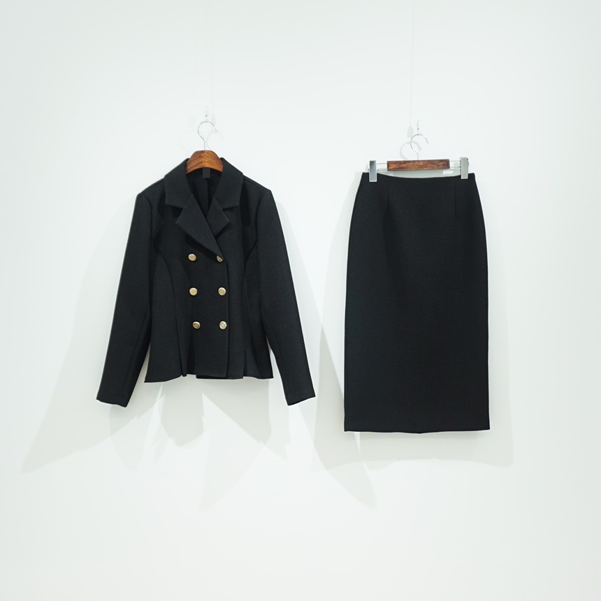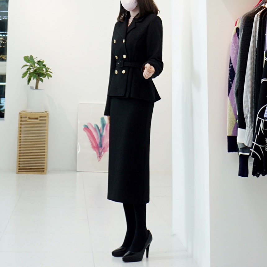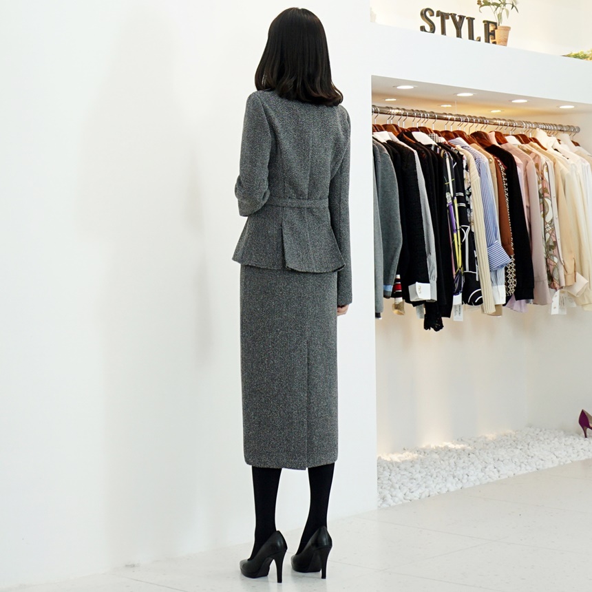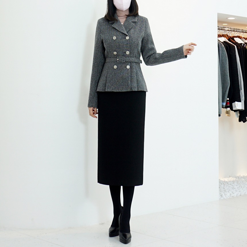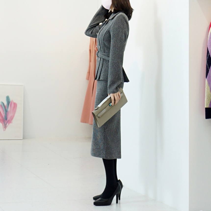 벨티드 치마정장세트 페플럼 자켓