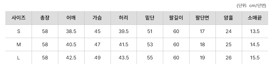 <사이즈> S, M, L