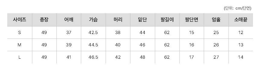 체형, 취향에 따라 사이즈가 다를 수 있습니다.