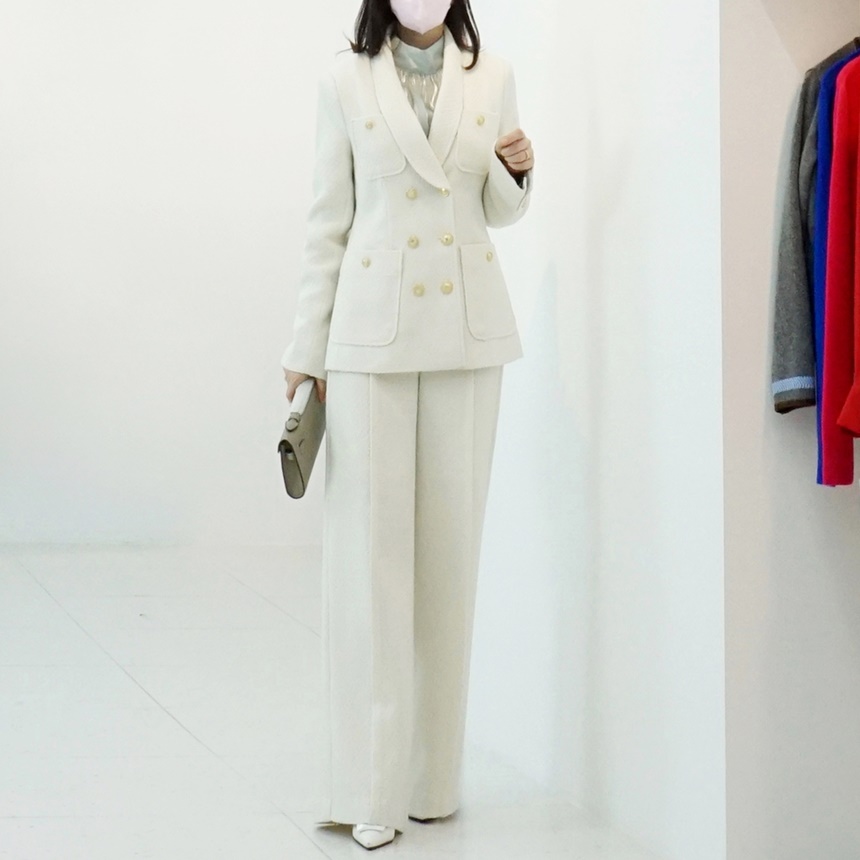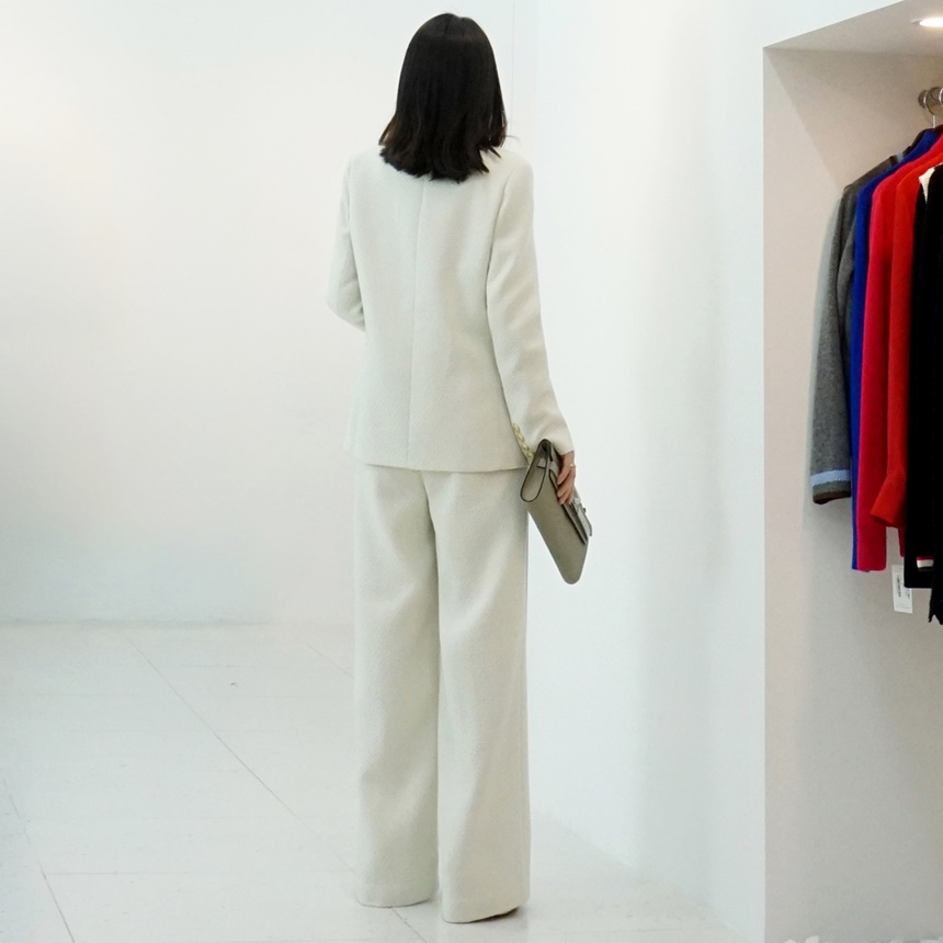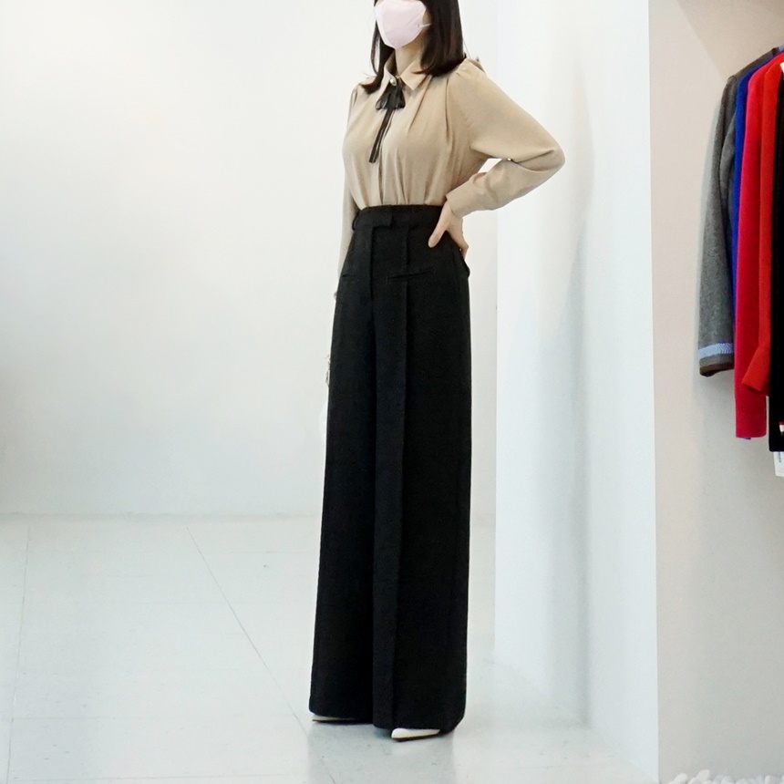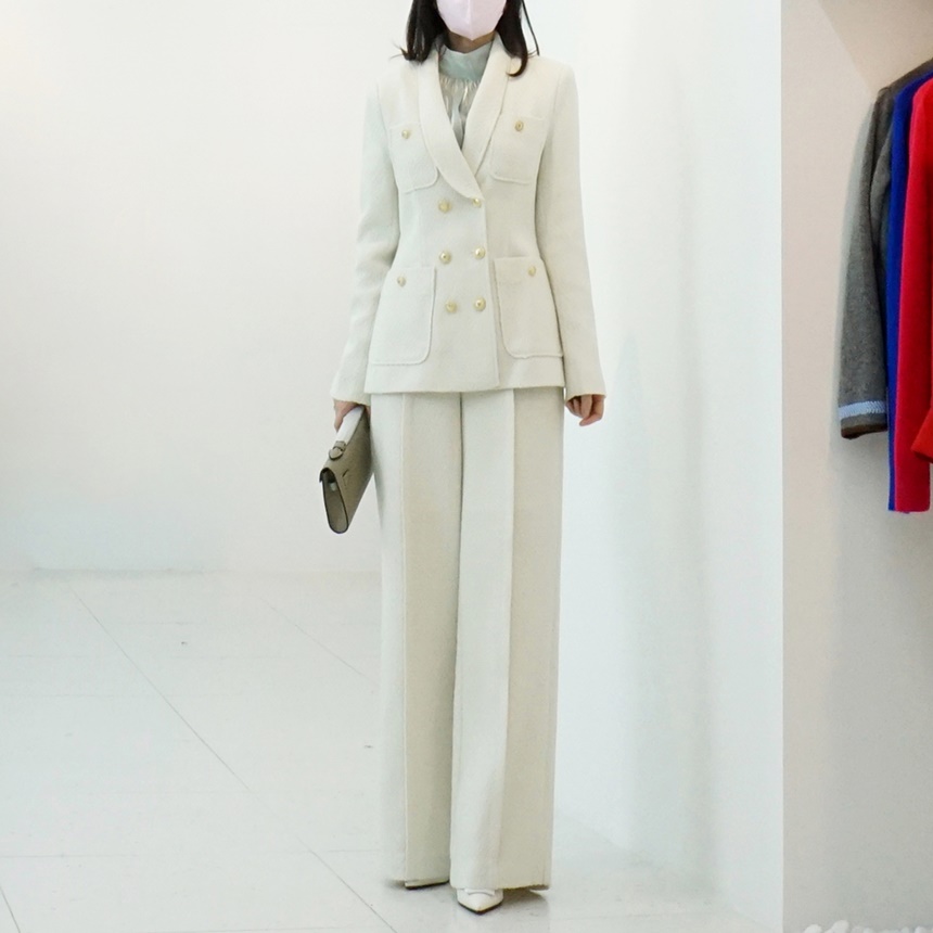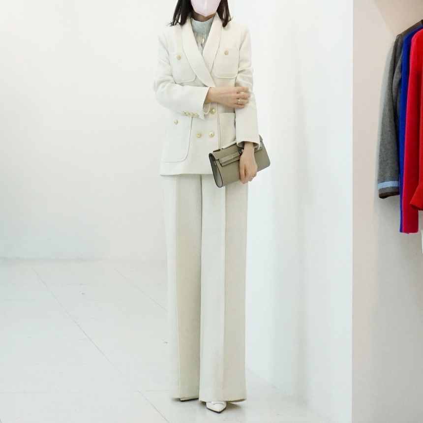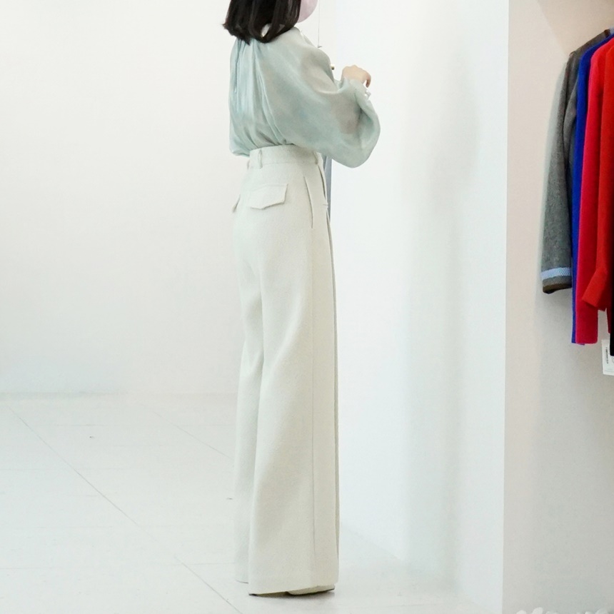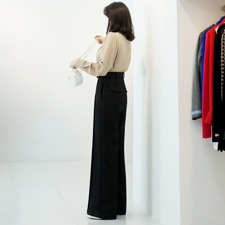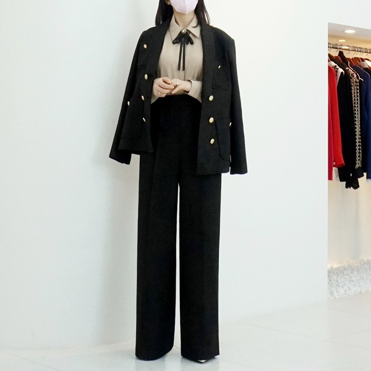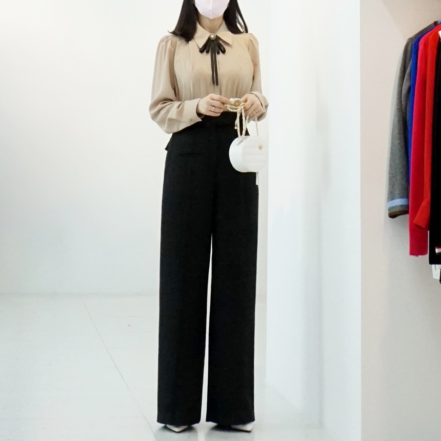 시그니처 히든 버튼 여성 정장 바지 와이드