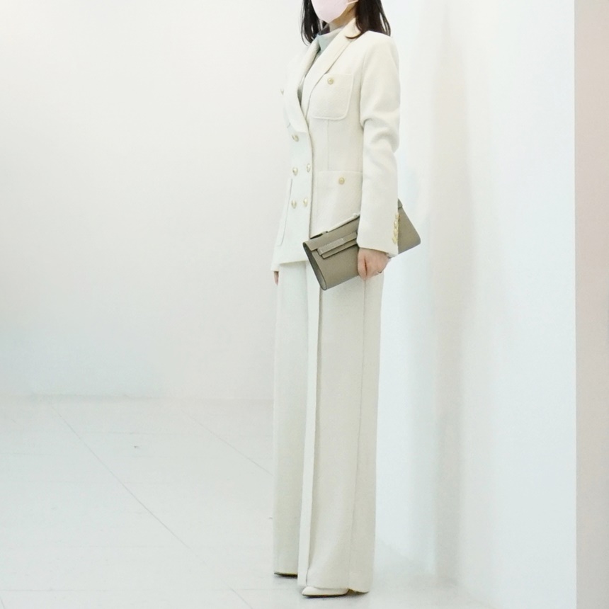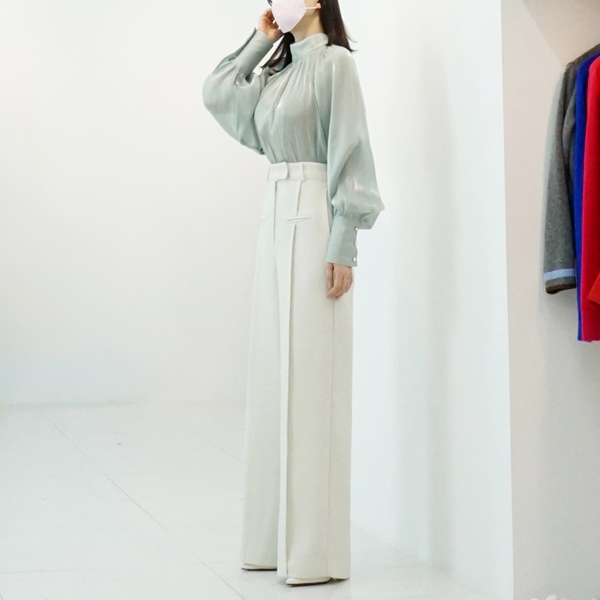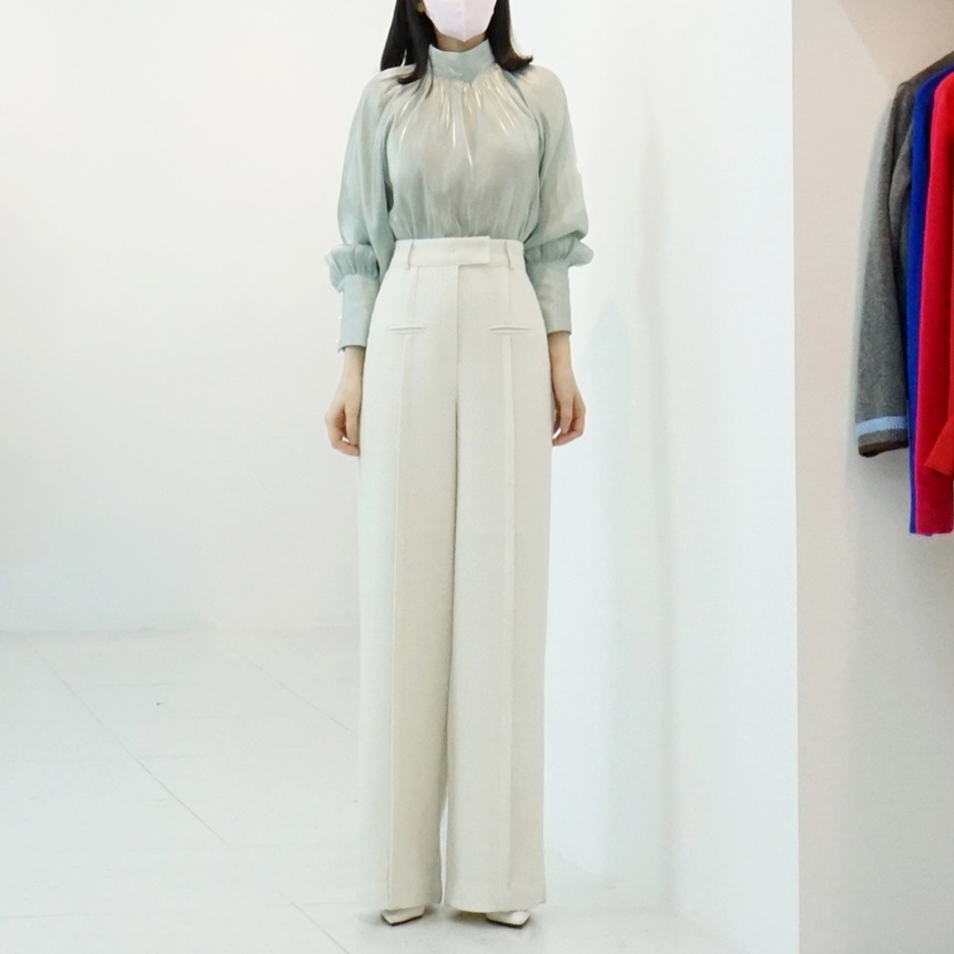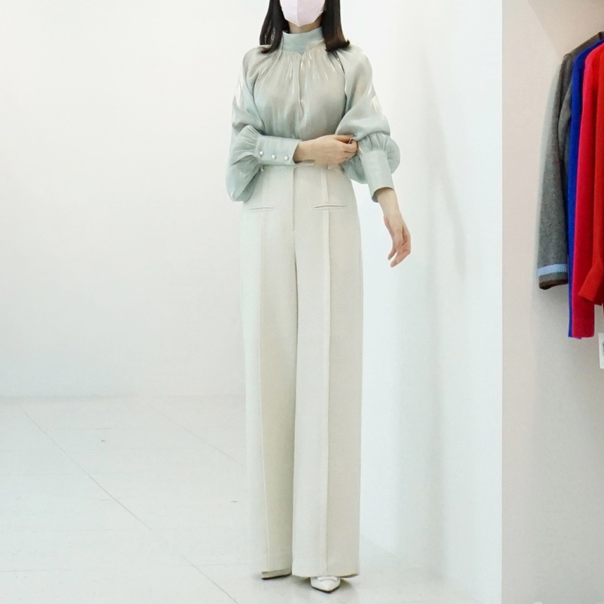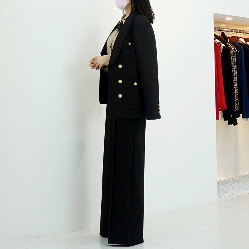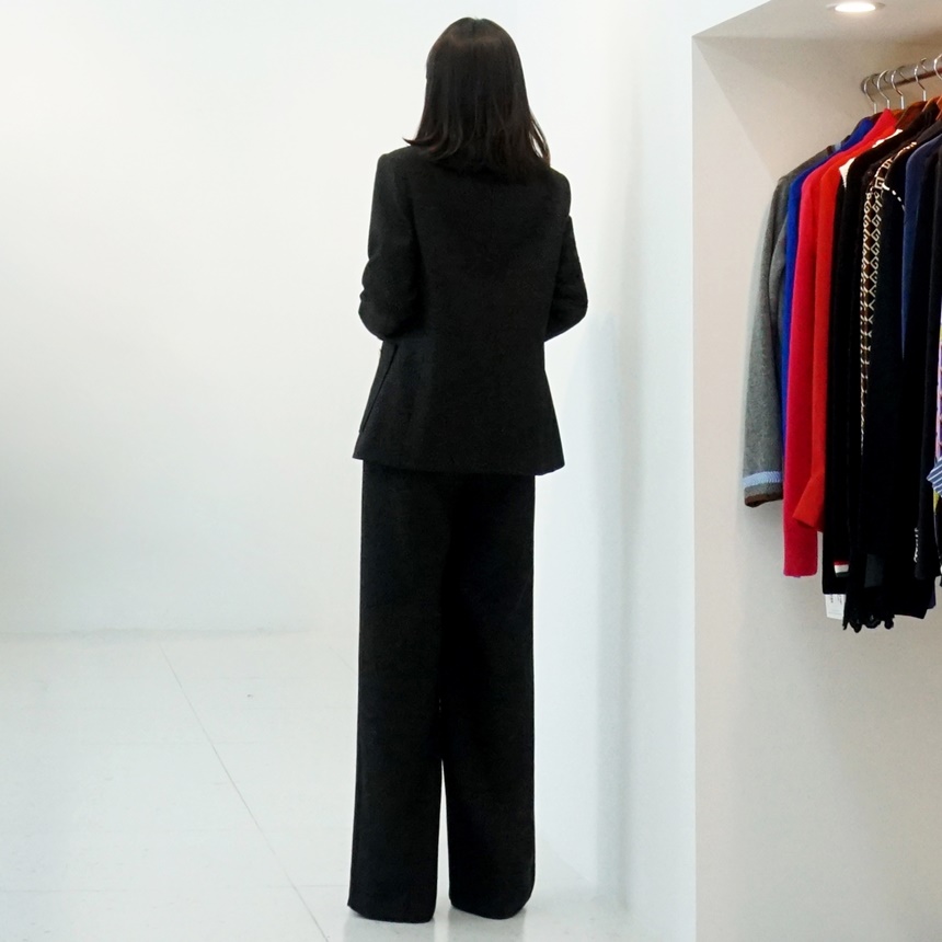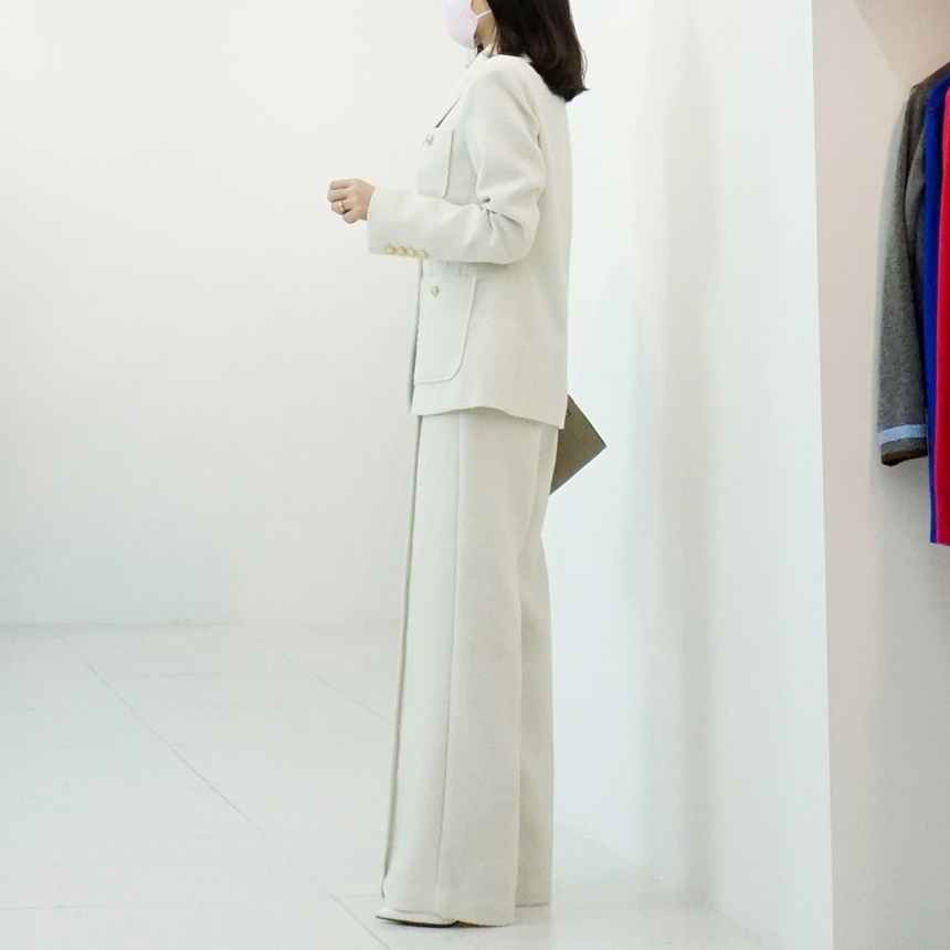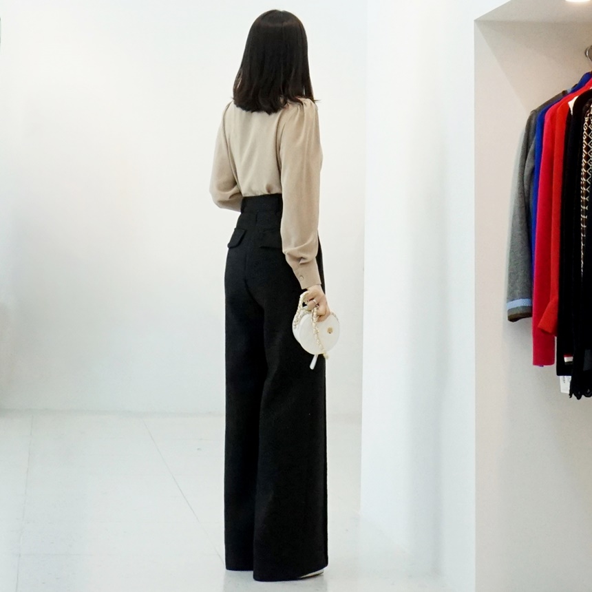 시그니처 히든 버튼 여성 정장 바지 와이드