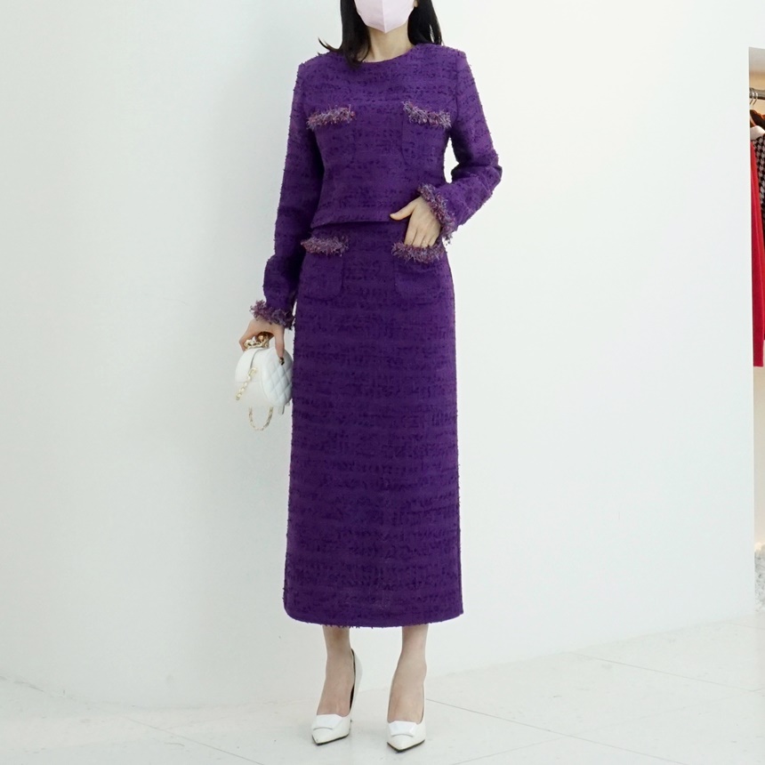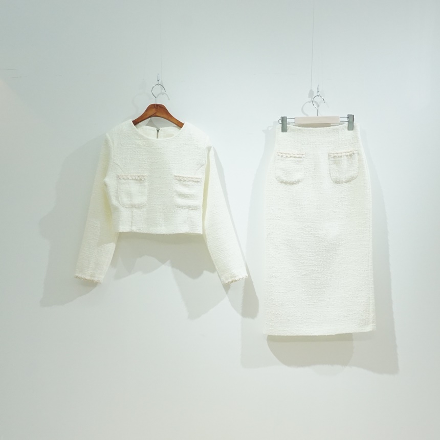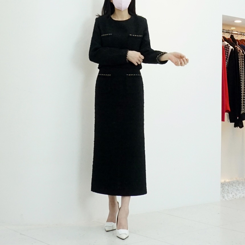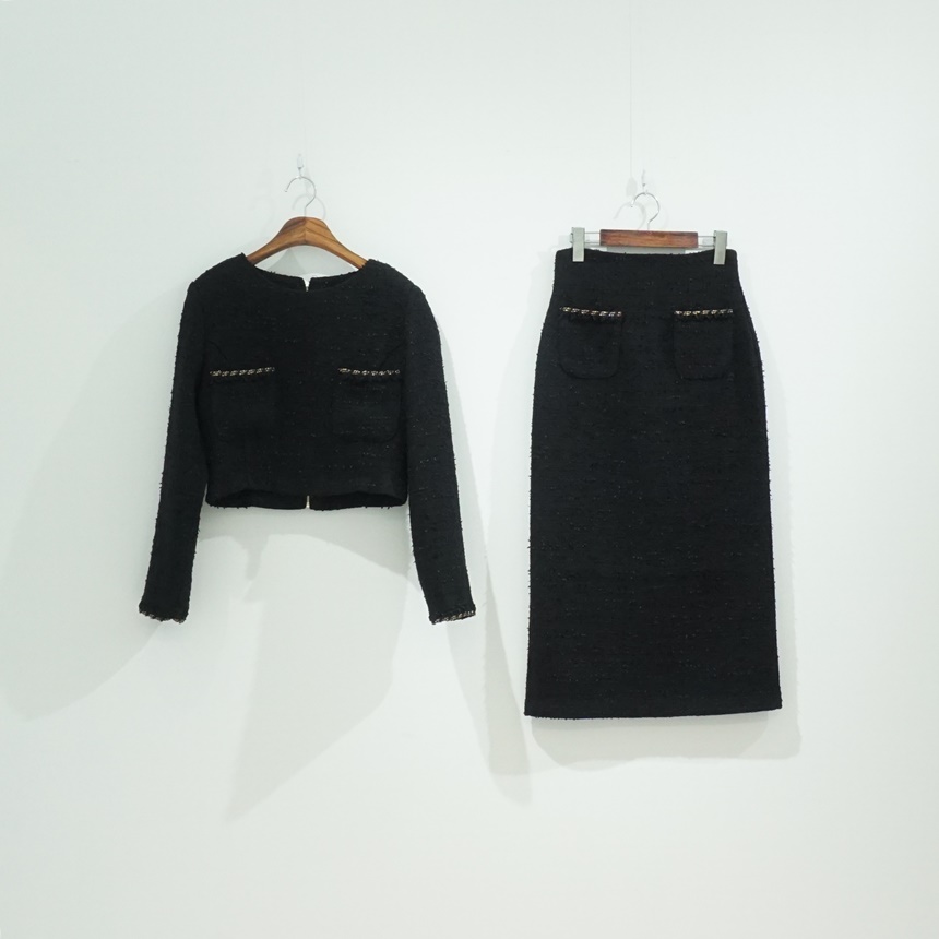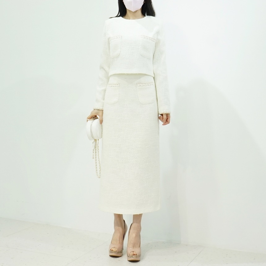시그니처 트위드 투피스 세트 크롭 블라우스