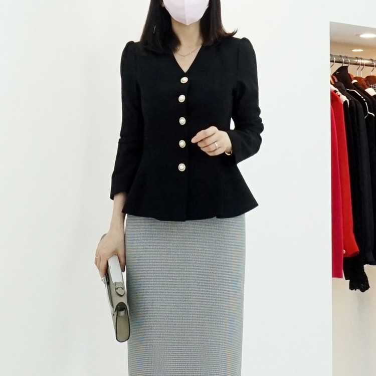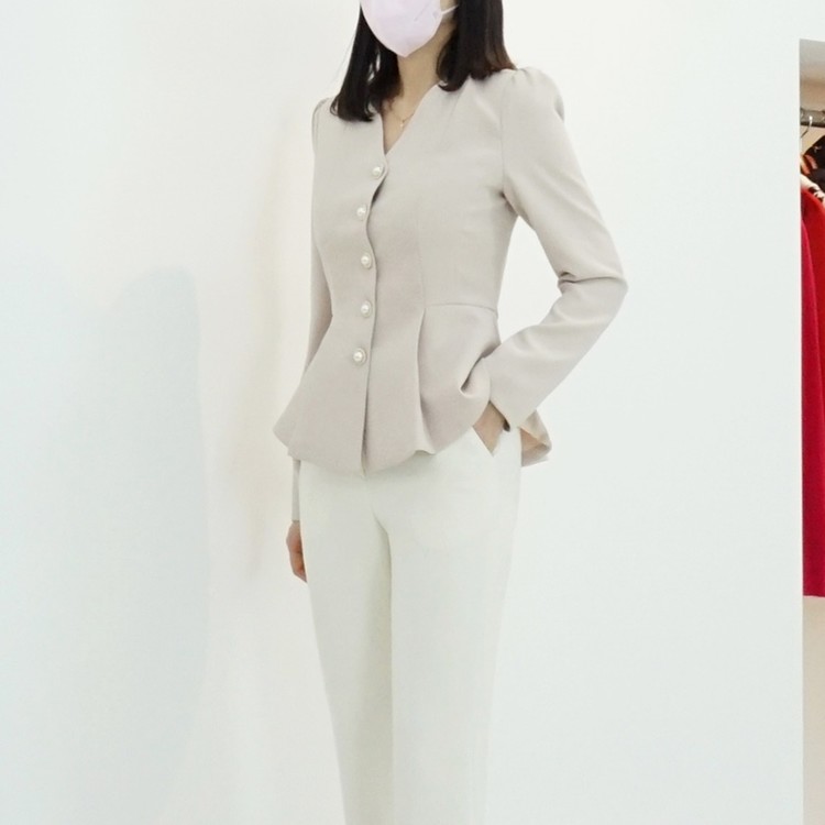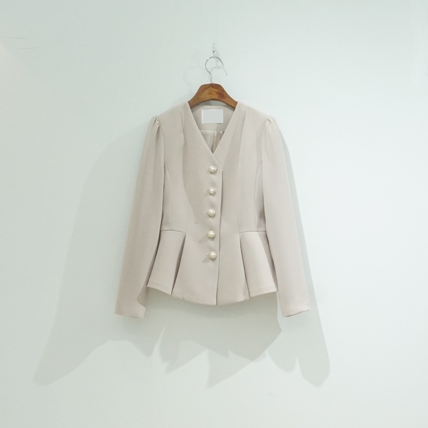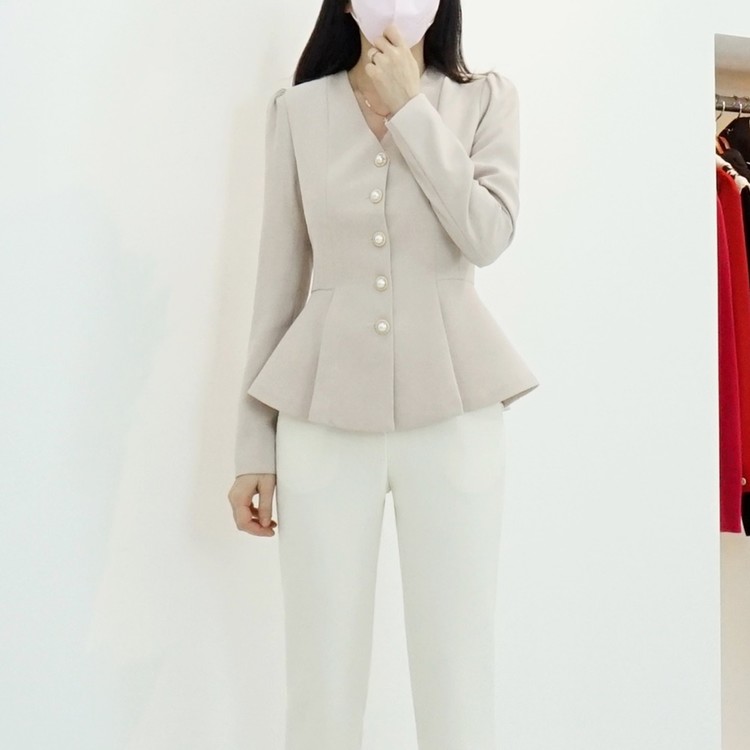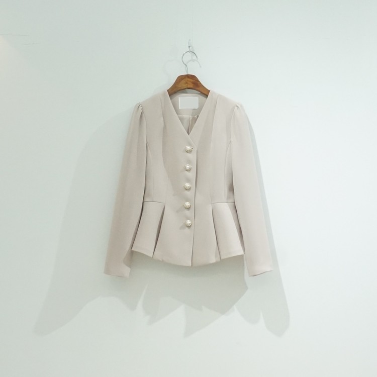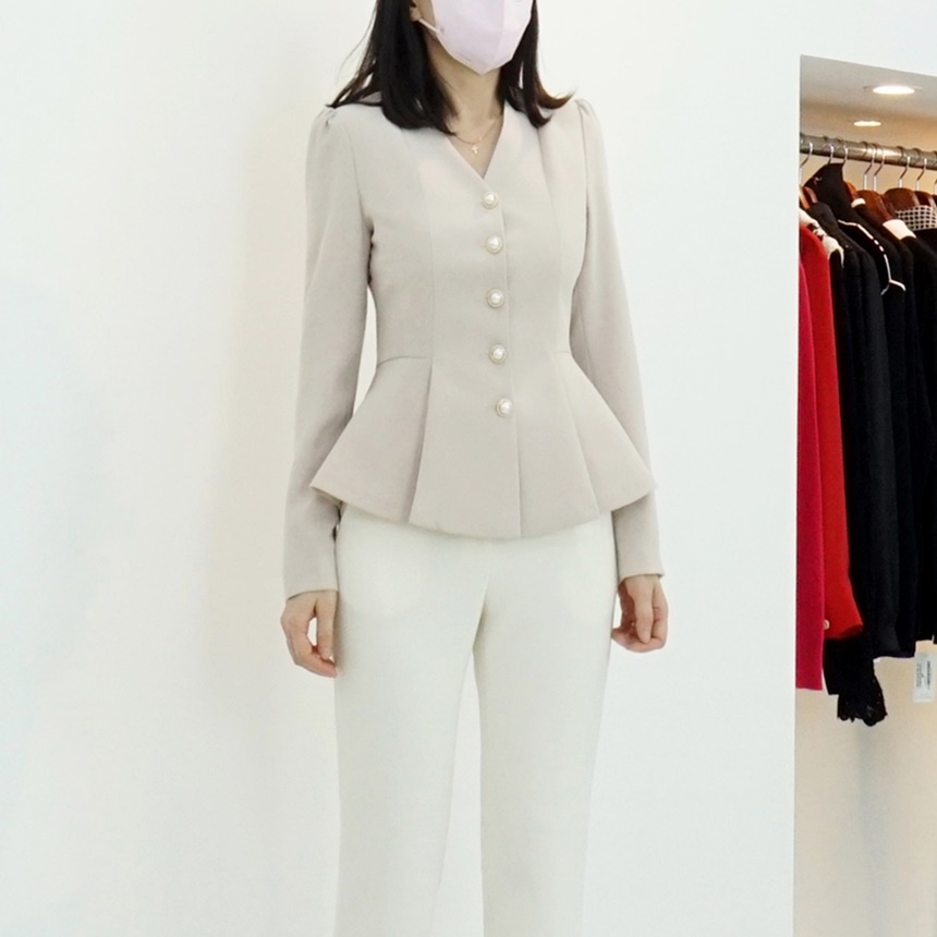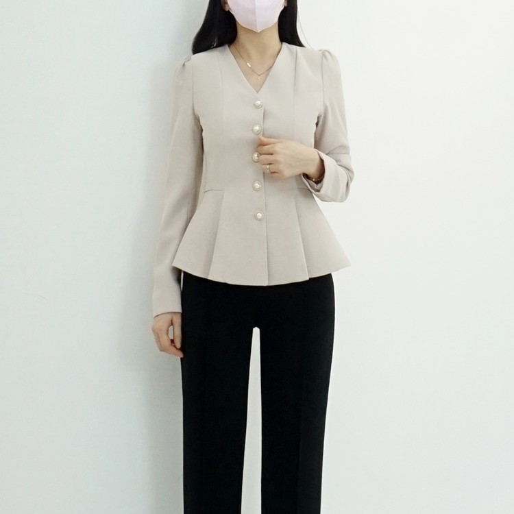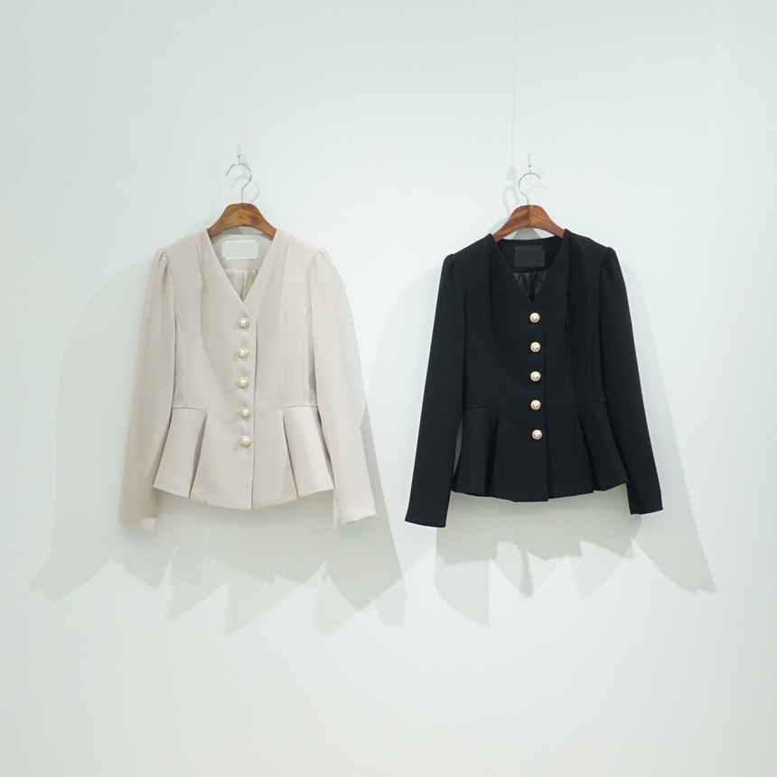 페플럼 싱글 자켓 진주 버튼 노카라