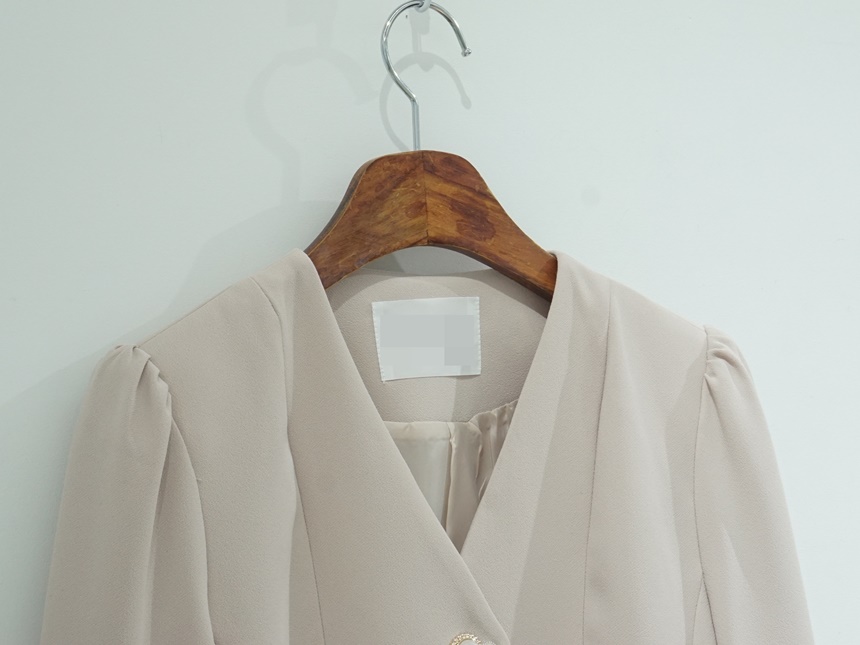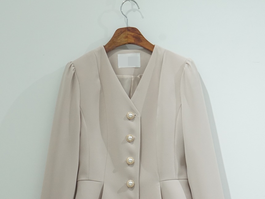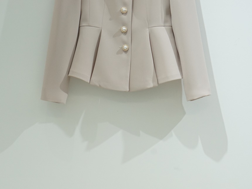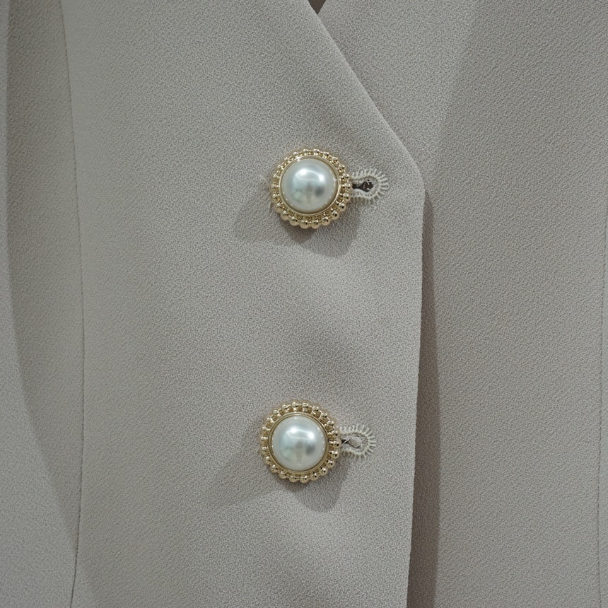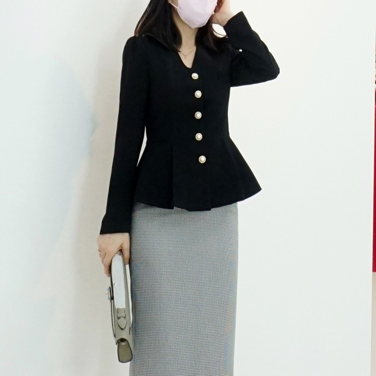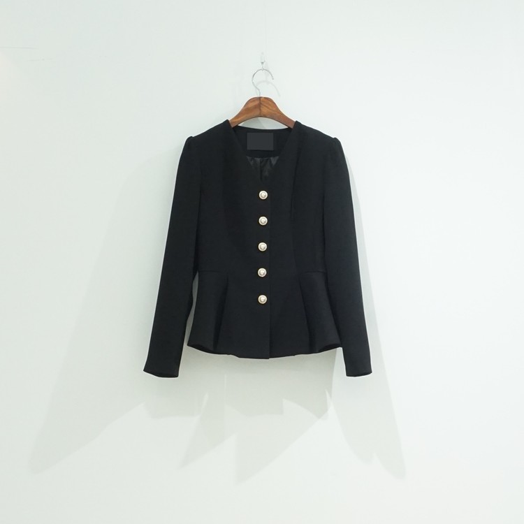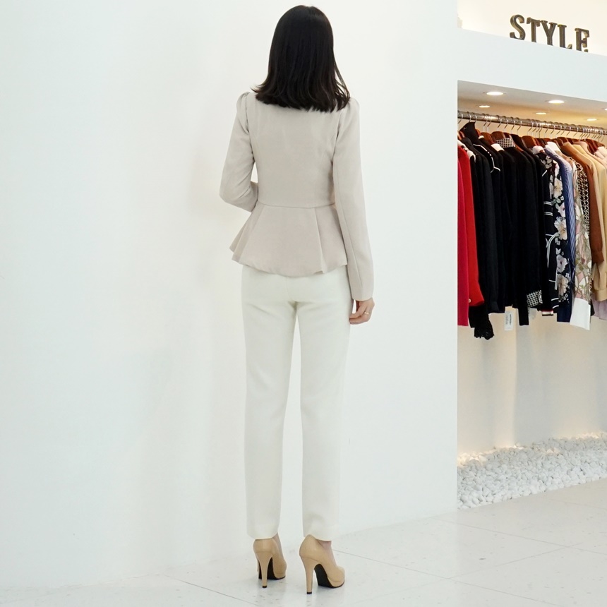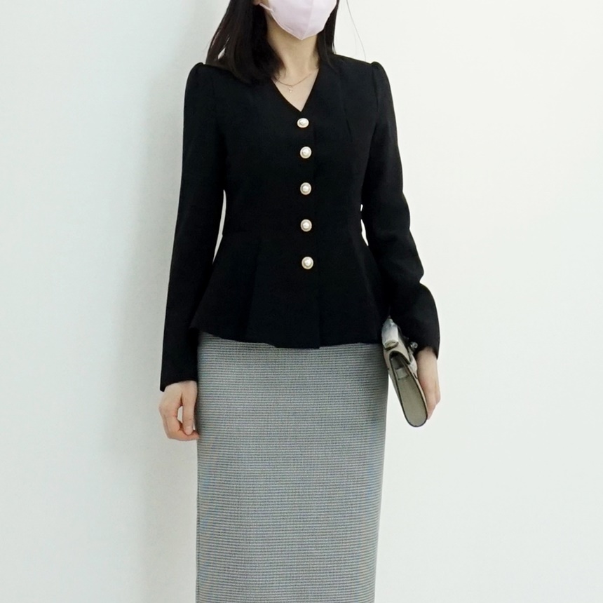 페플럼 싱글 자켓 진주 버튼 노카라