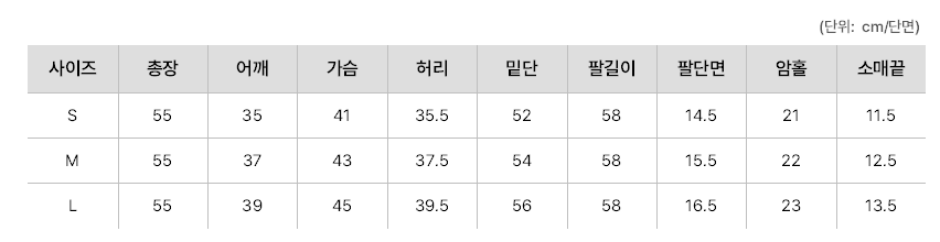 <사이즈> S, M, L