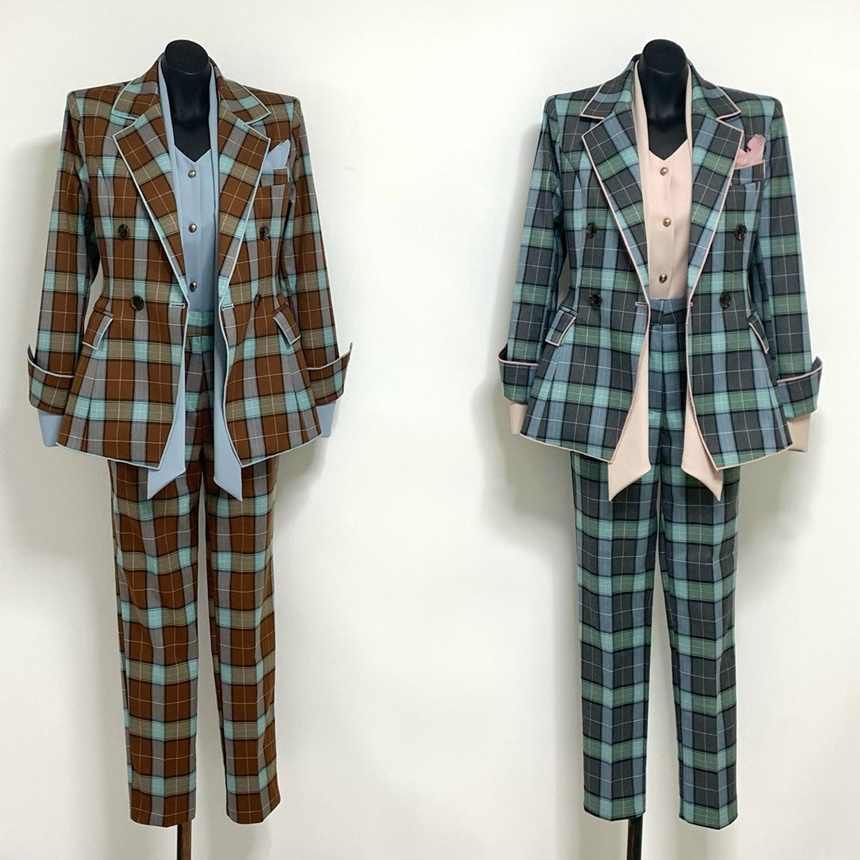 체크 패턴 정장 투피스입니다