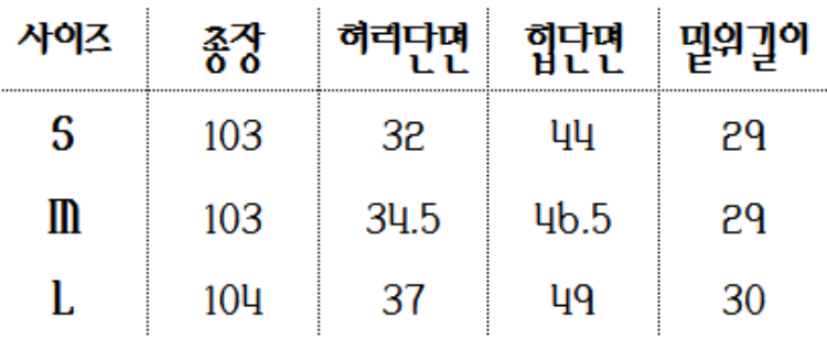 팬츠는 사이즈는 S, M, L로 55,66,77까지