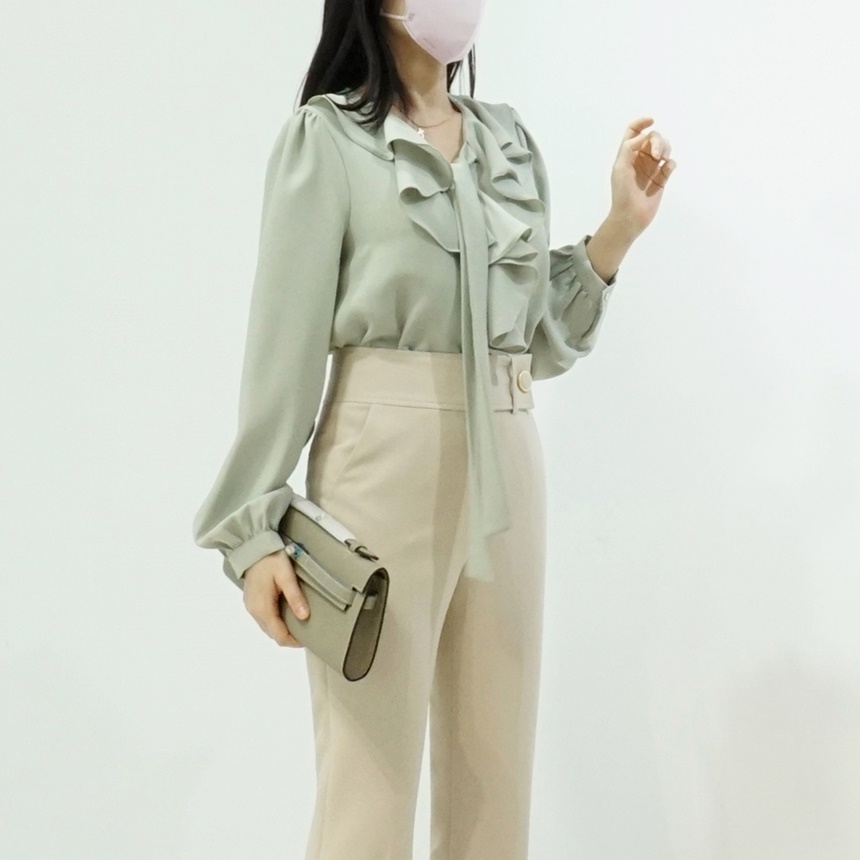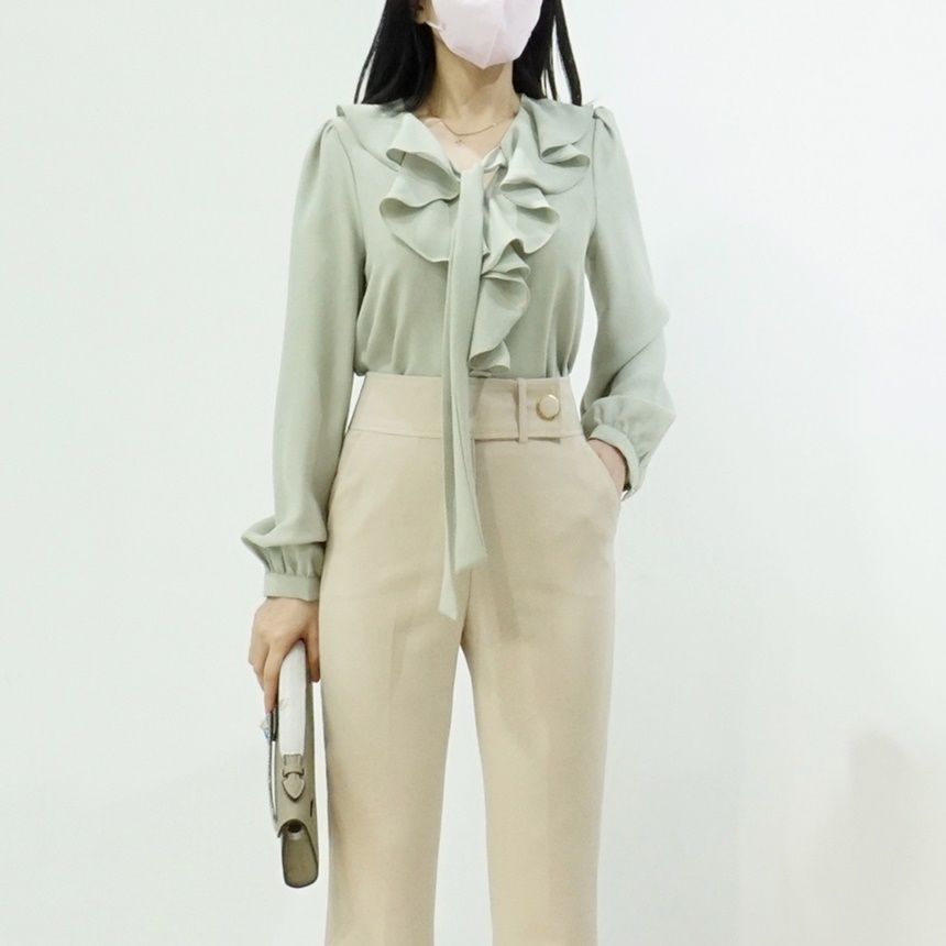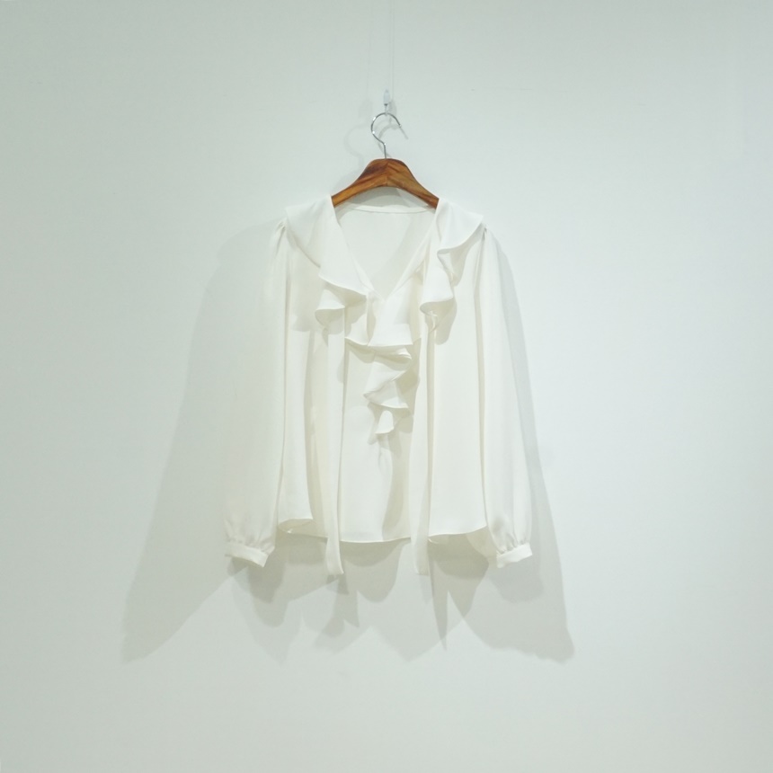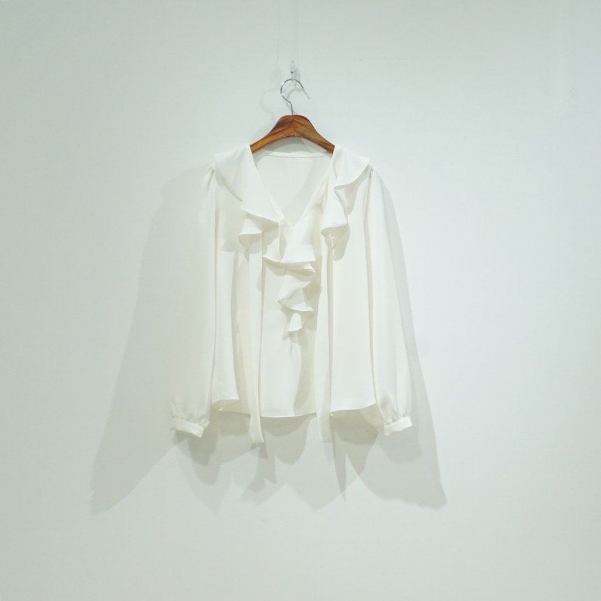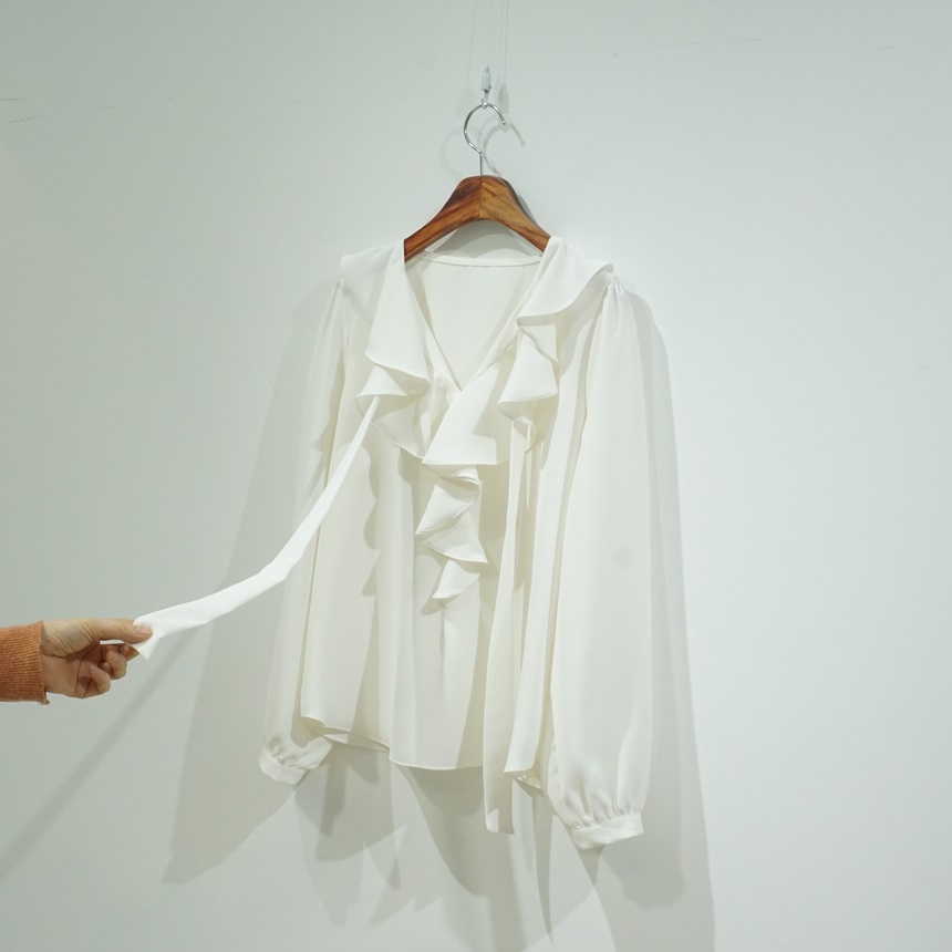 로맨틱 프릴 러플 리본 타이 쉬폰 블라우스