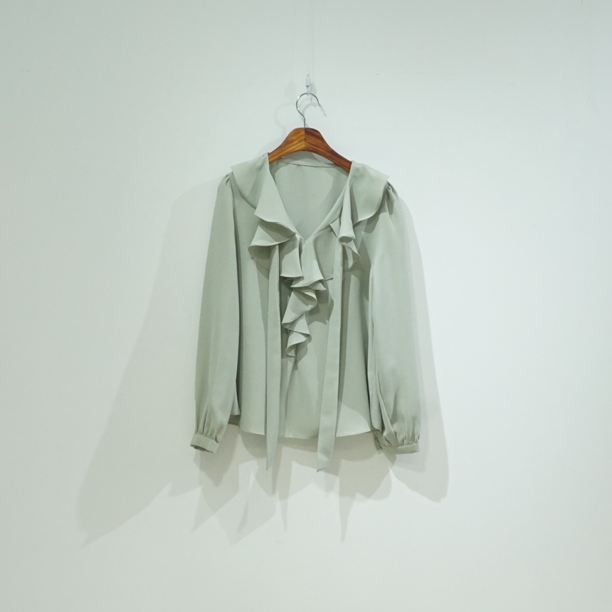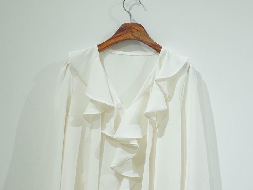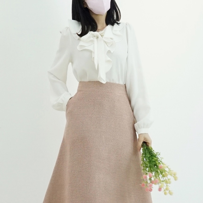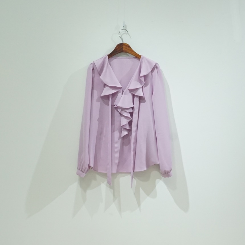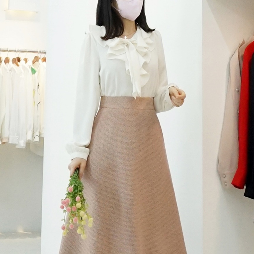 로맨틱 프릴 러플 리본 타이 쉬폰 블라우스