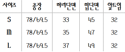 신축성 없음, 피팅감 슬림핏, 정사이즈