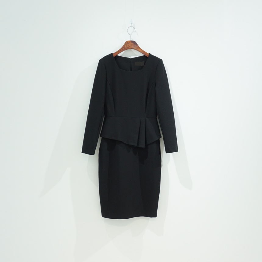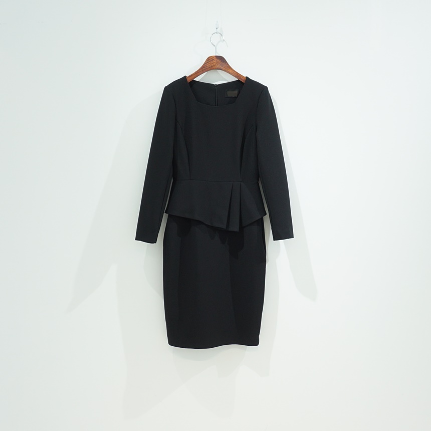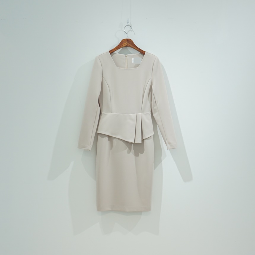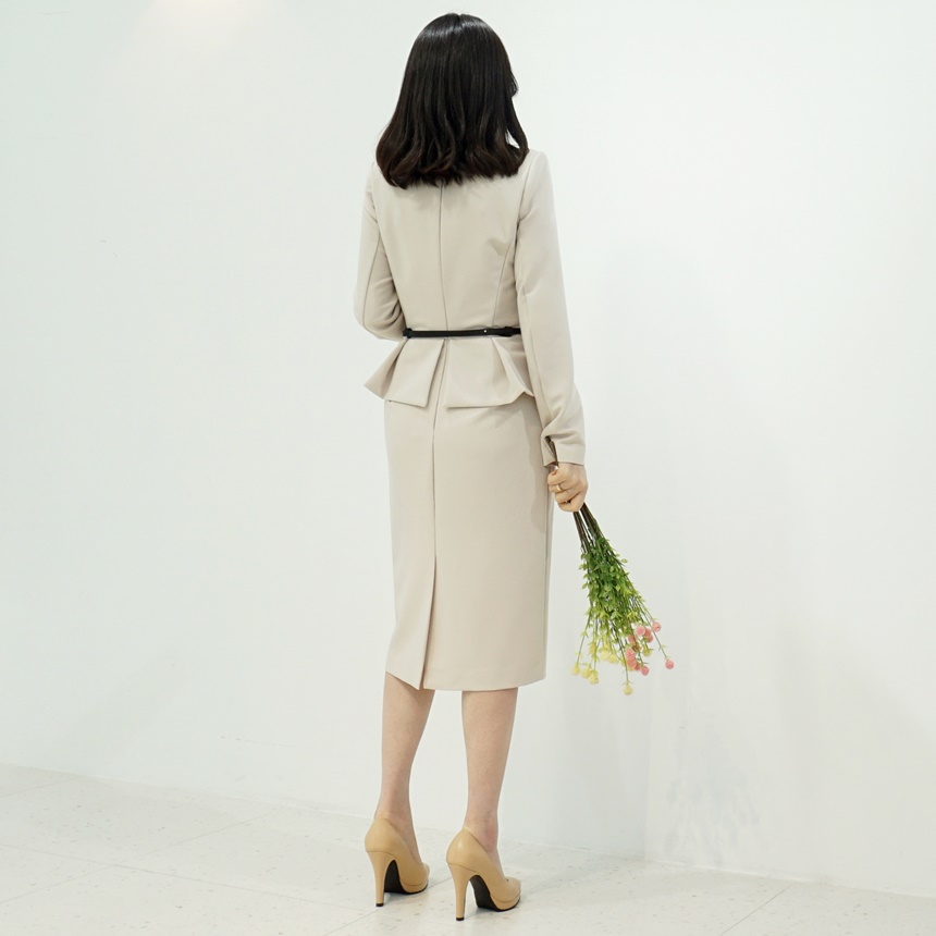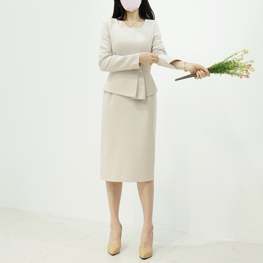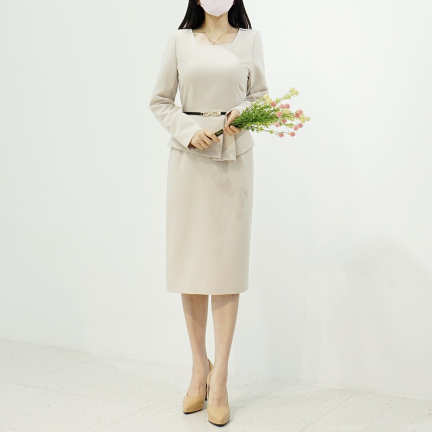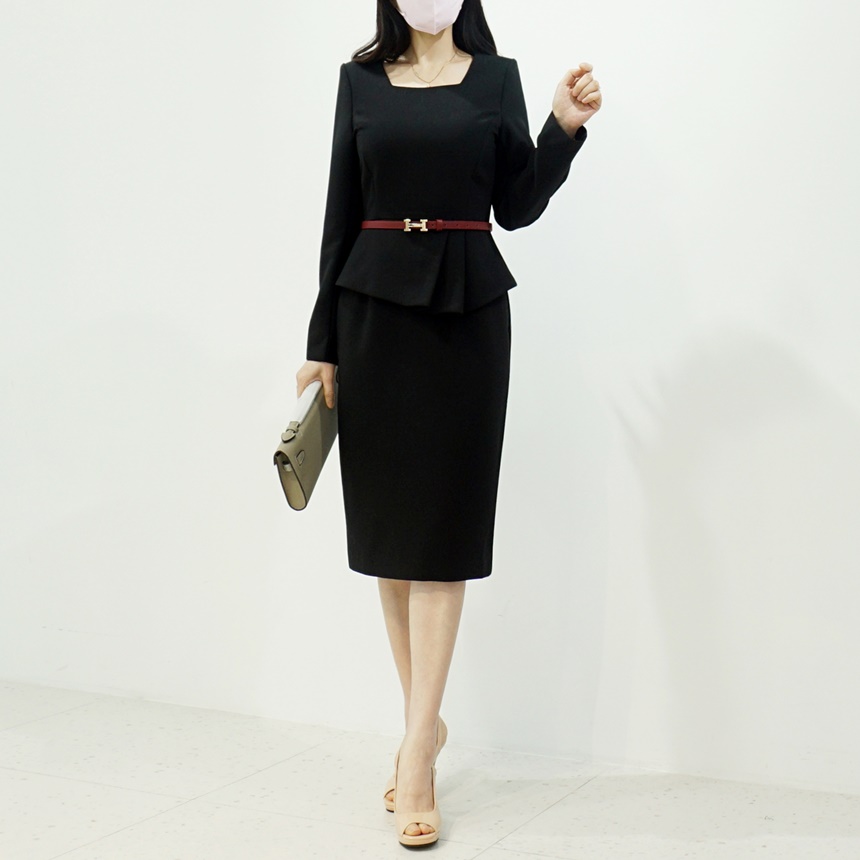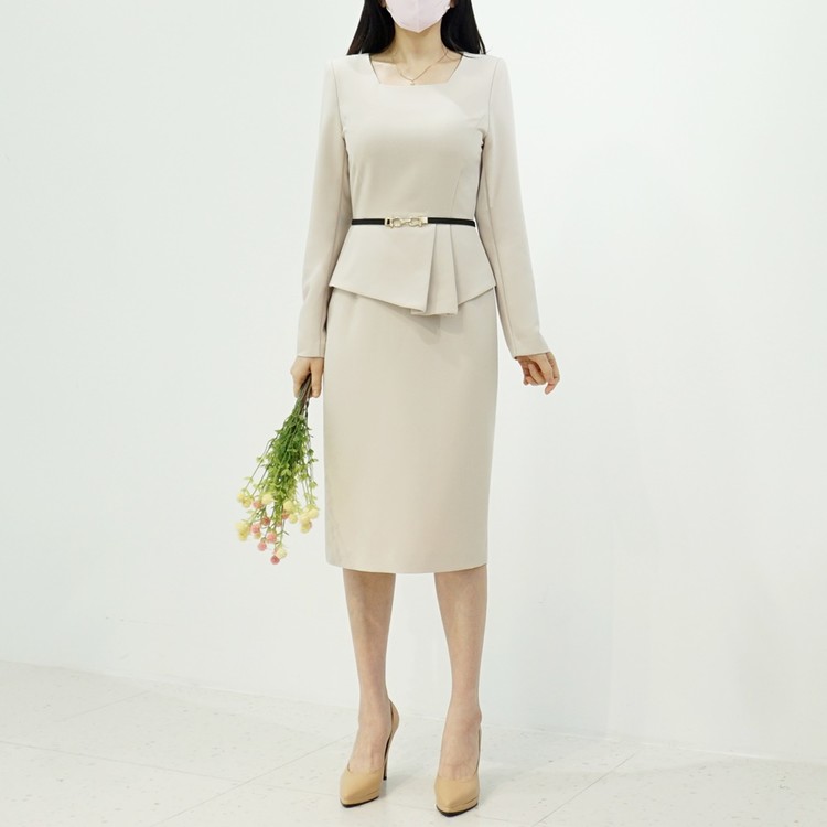벨티드 스퀘어넥 페플럼 정장 원피스