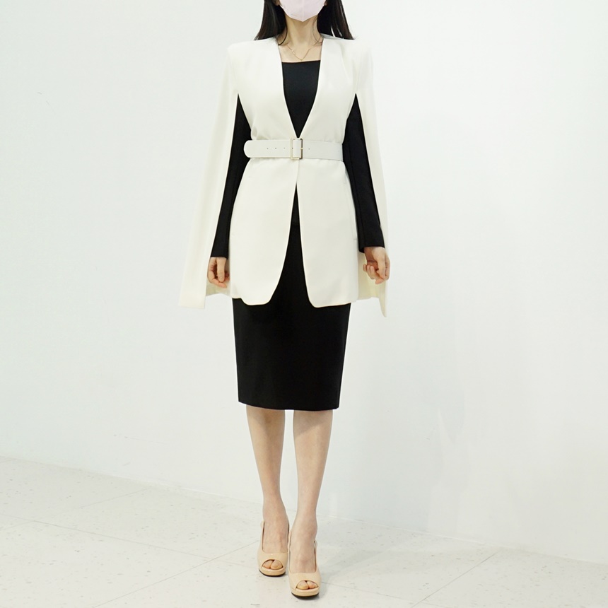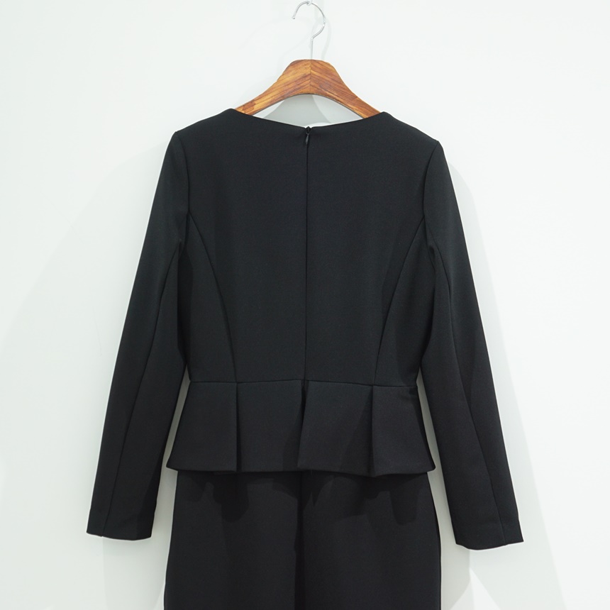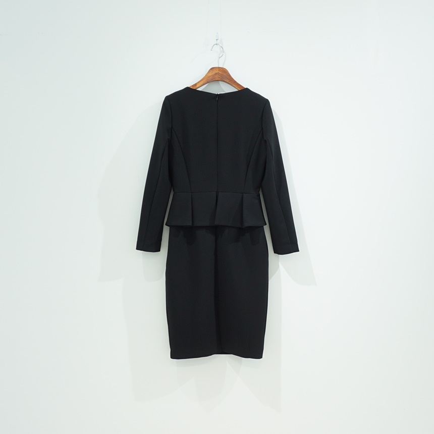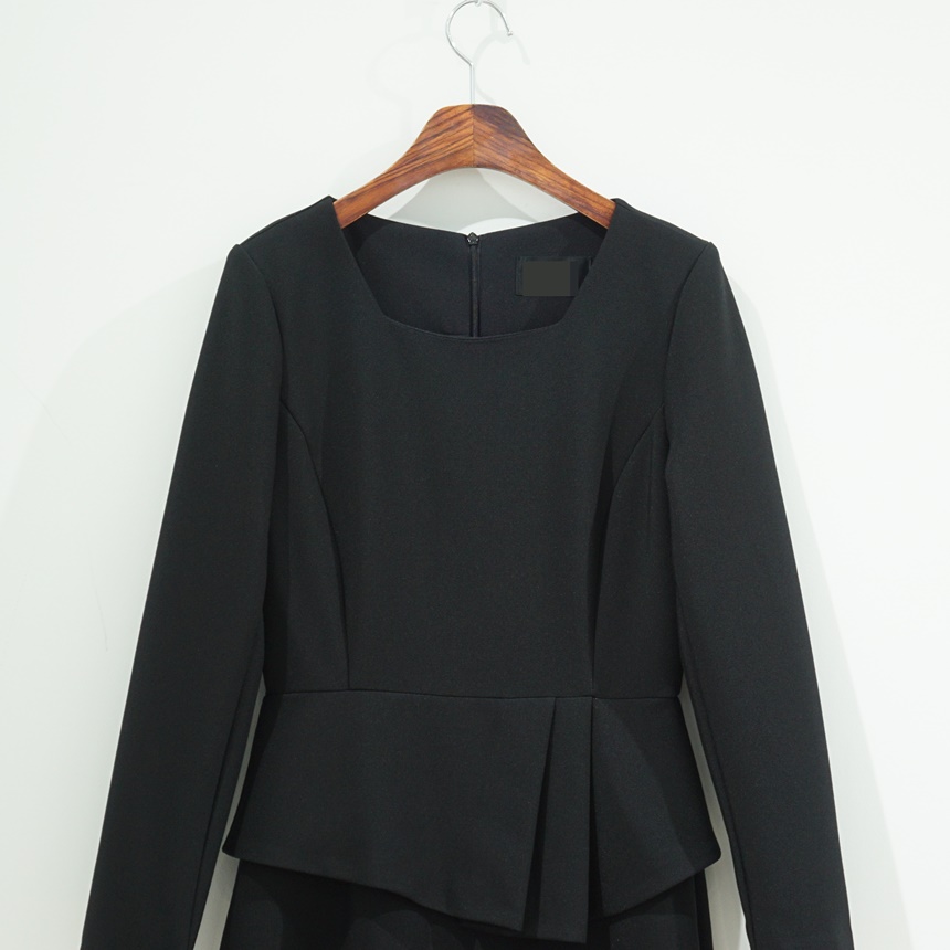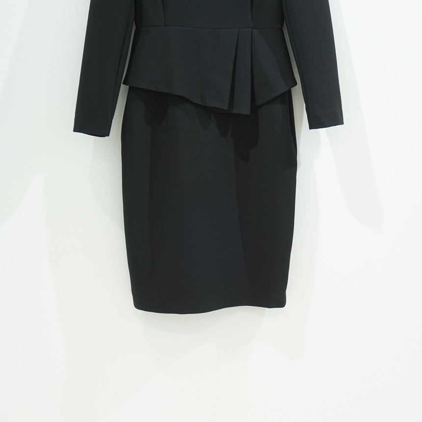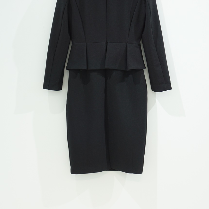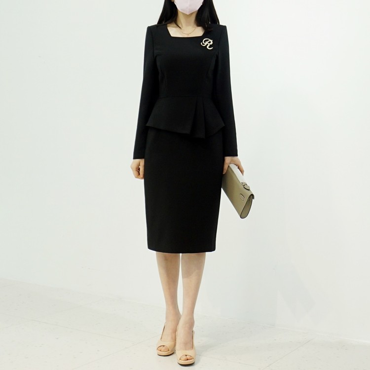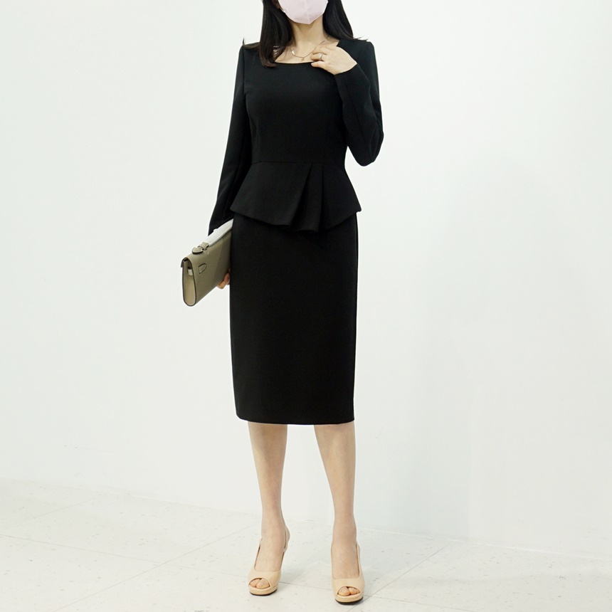 벨티드 스퀘어넥 페플럼 정장 원피스