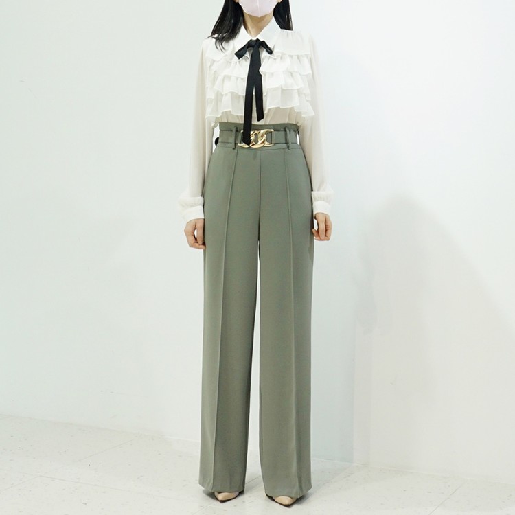 하이웨스트 와이드 핀턱 슬랙스 팬츠