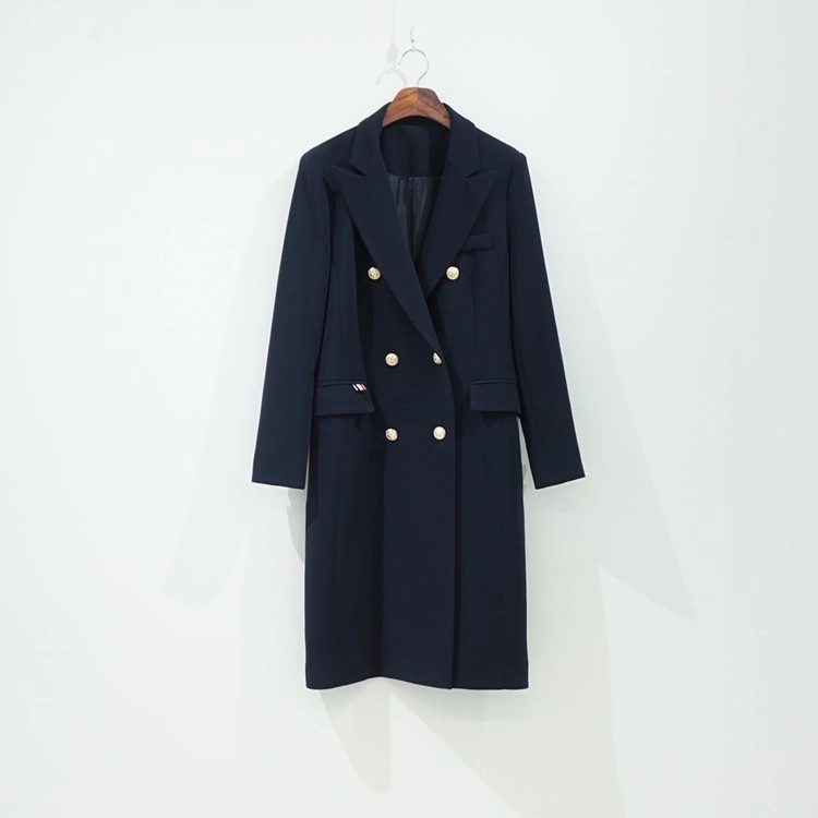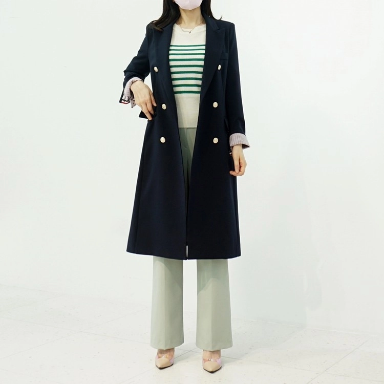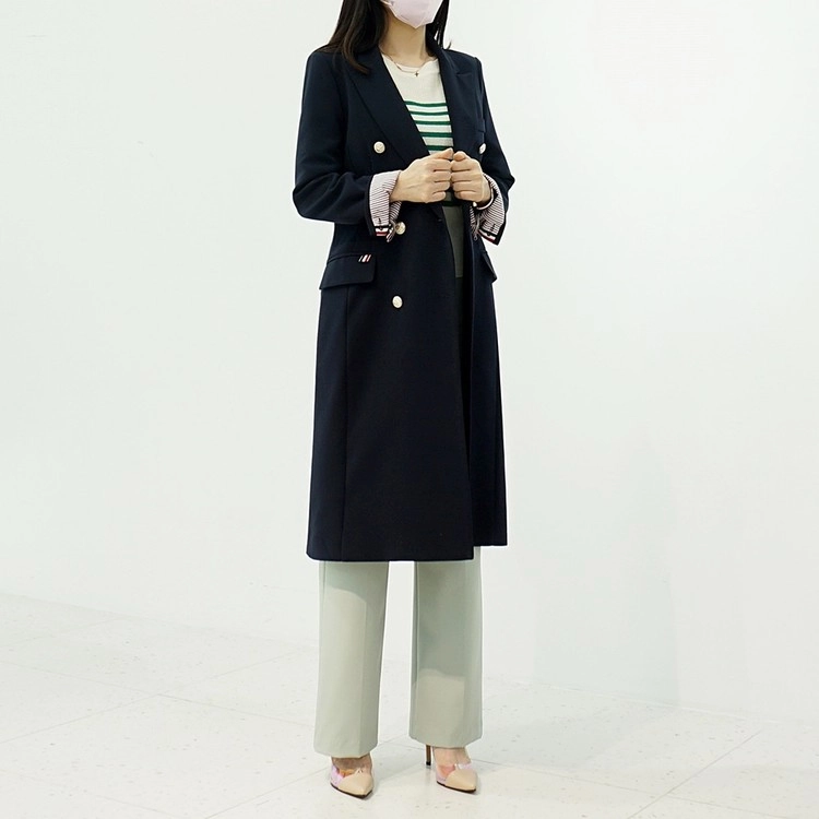 [재진행] 클래식 소매 삼선 배색 더블 롱 자켓