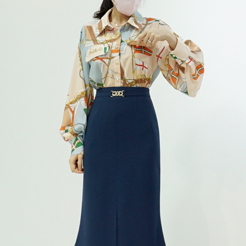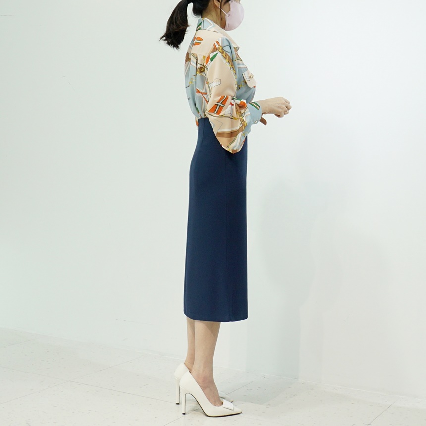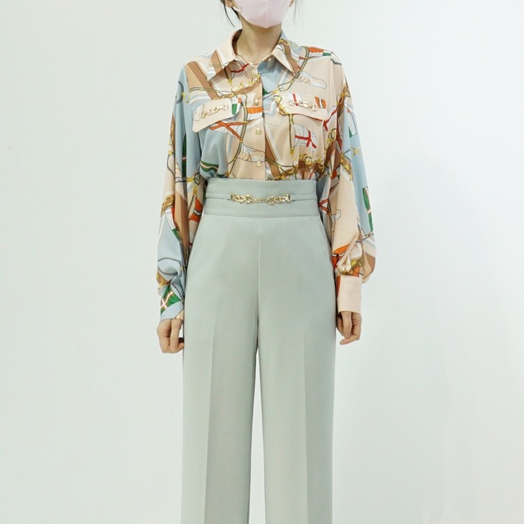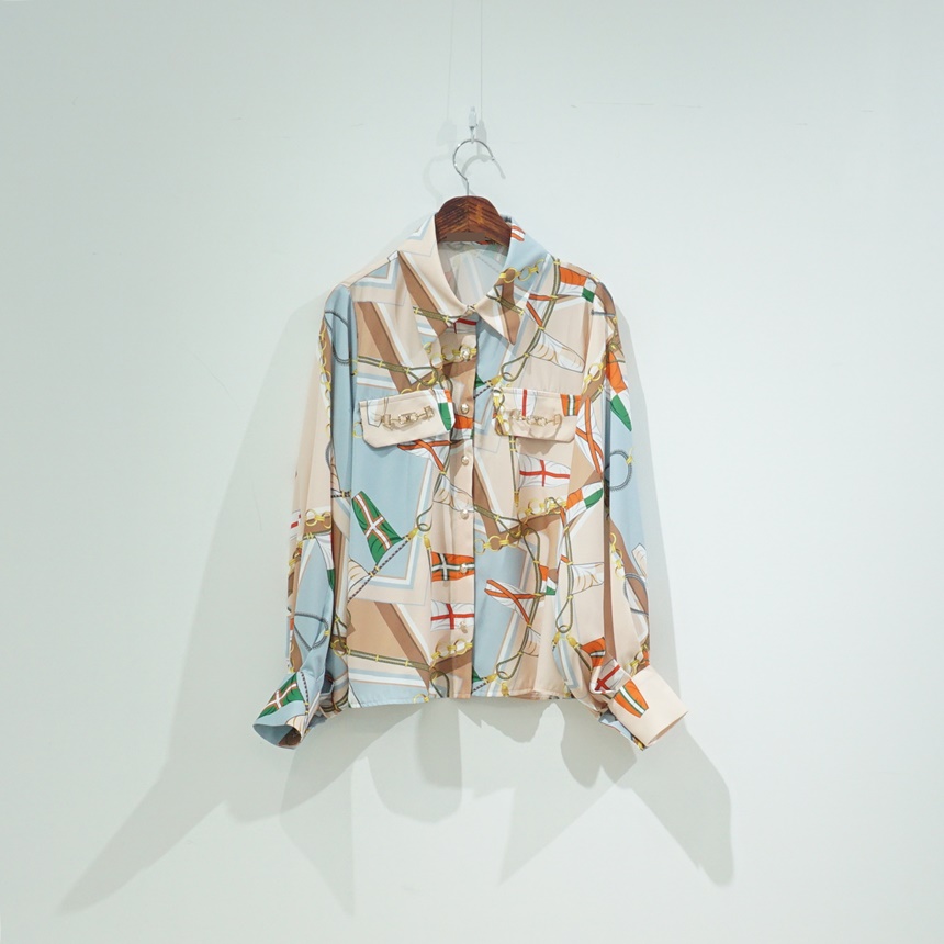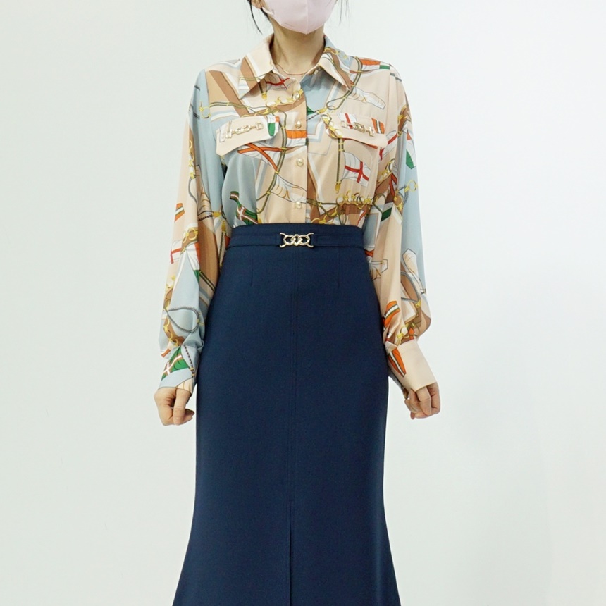 배색 에르 패턴 블라우스