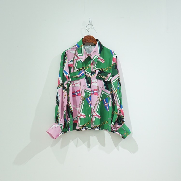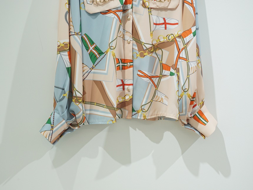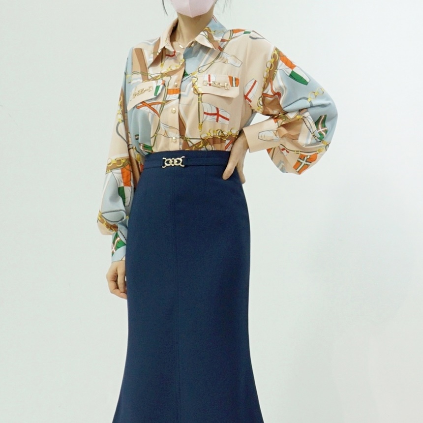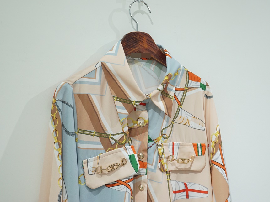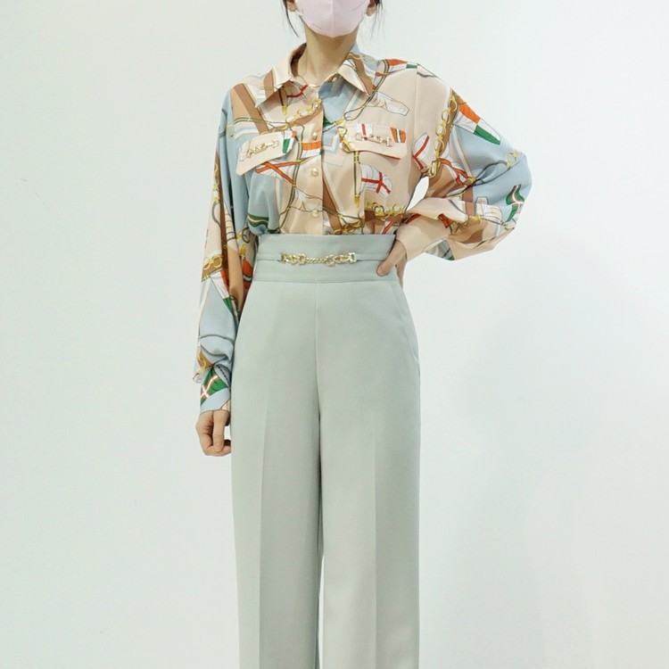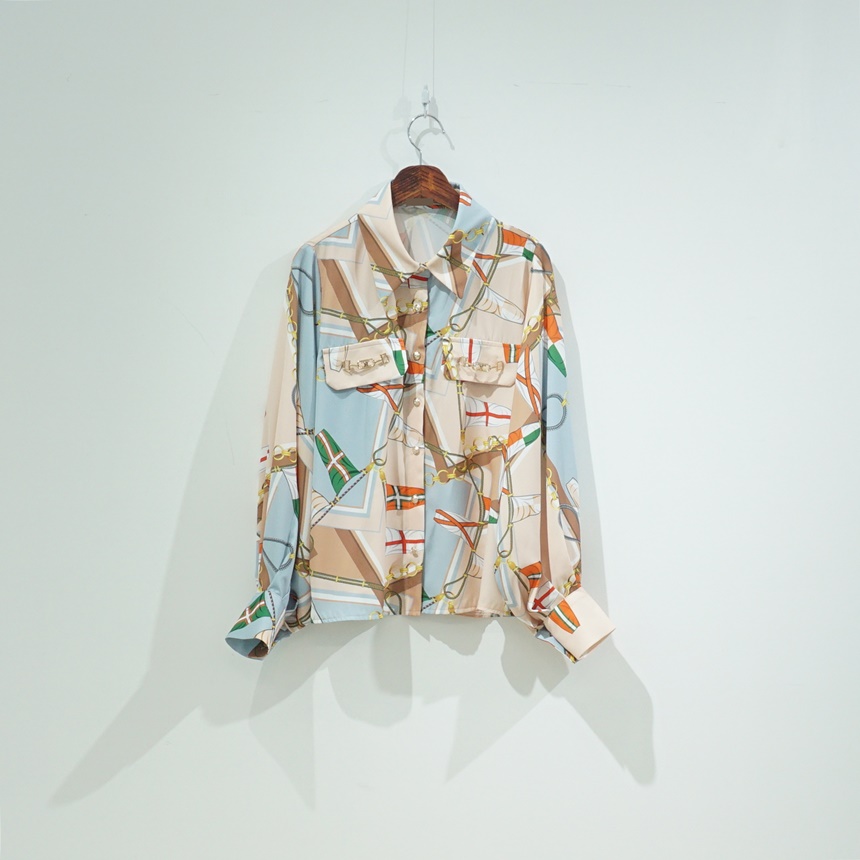배색 에르 패턴 블라우스