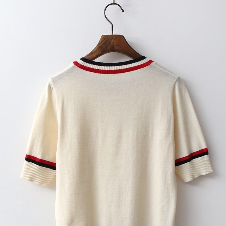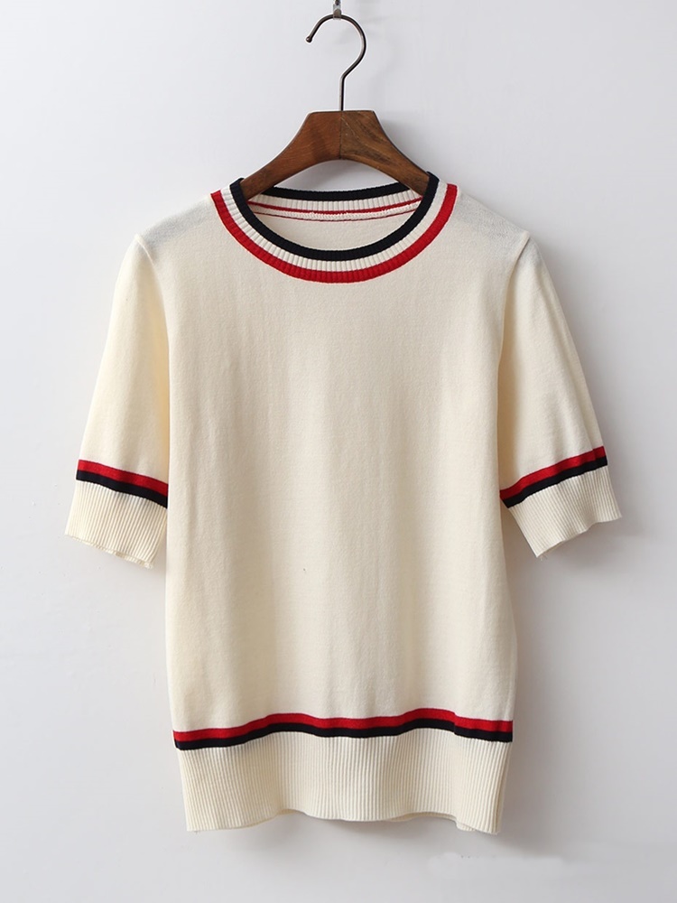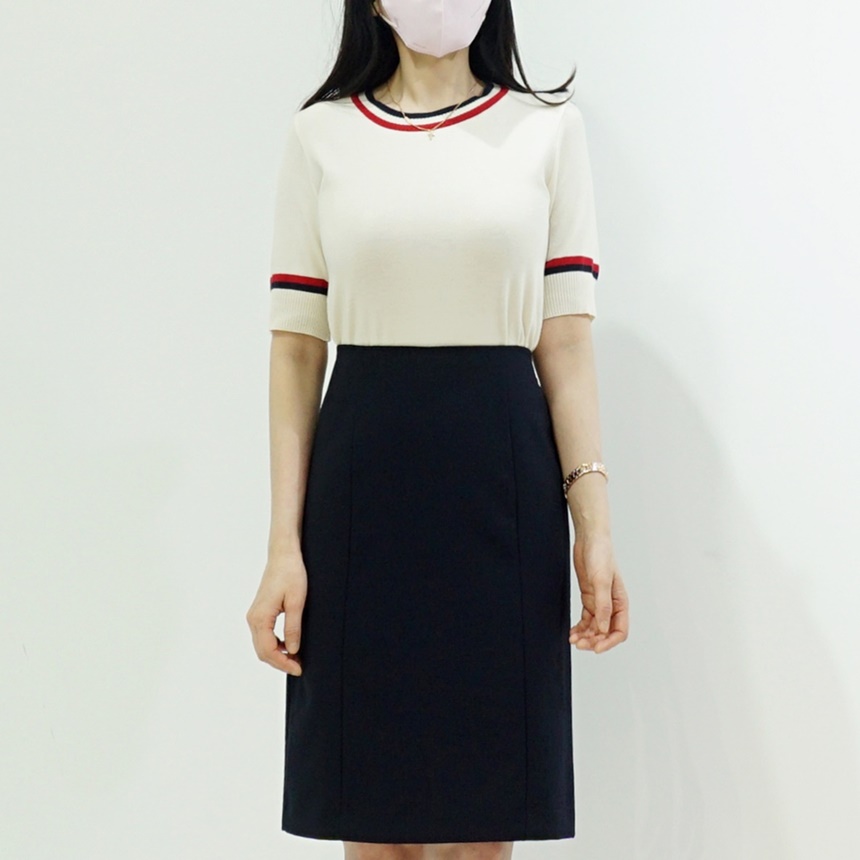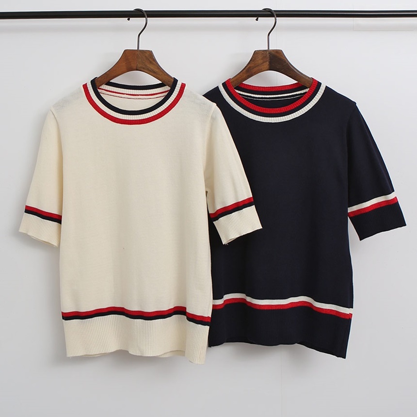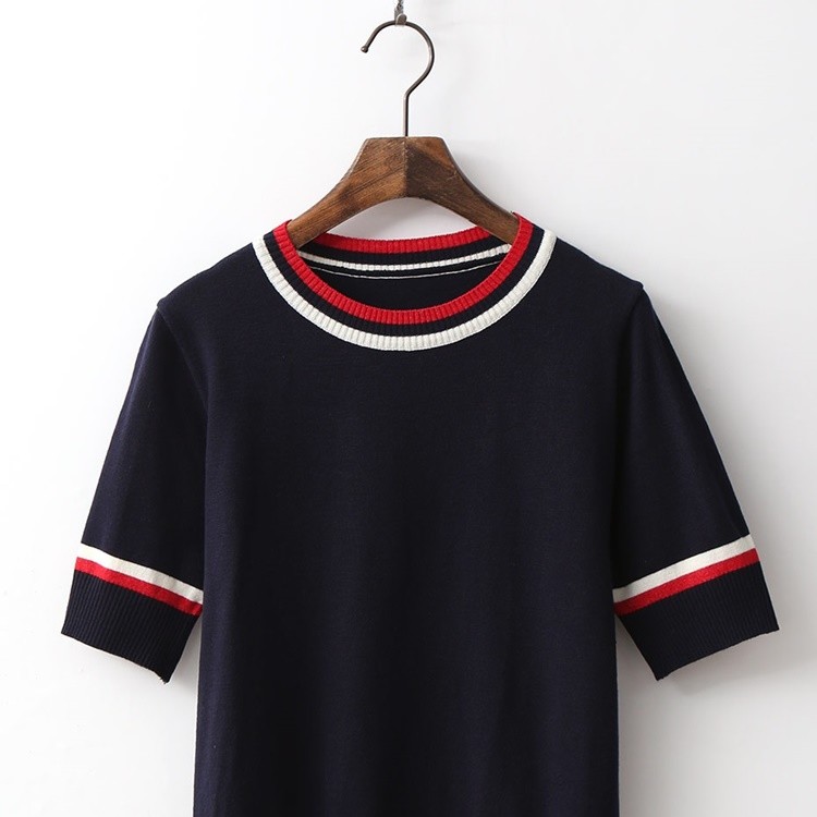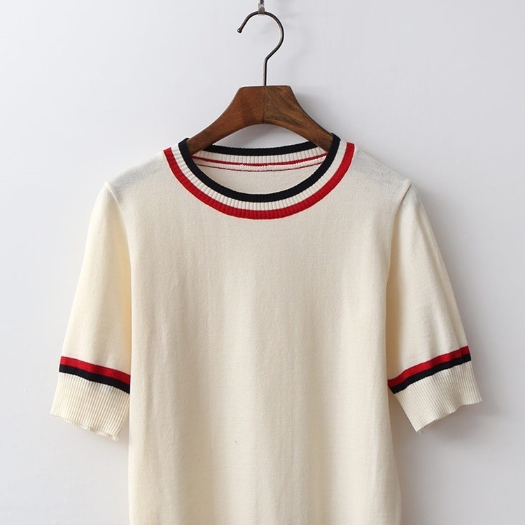 배색 라운드 시보리 여성 반팔 니트 티셔츠