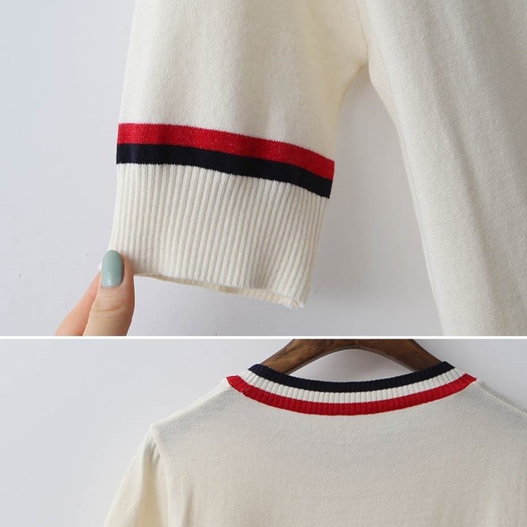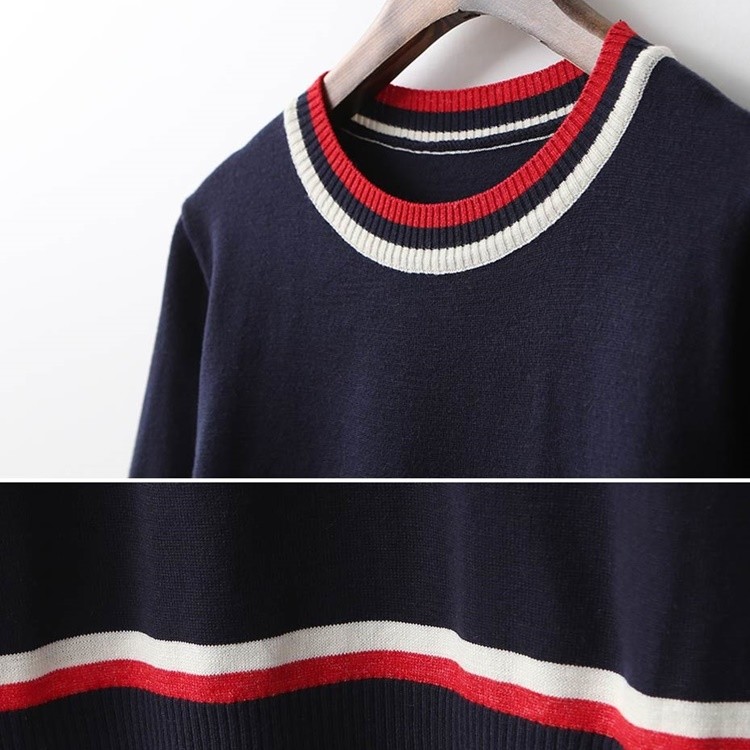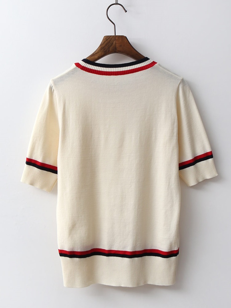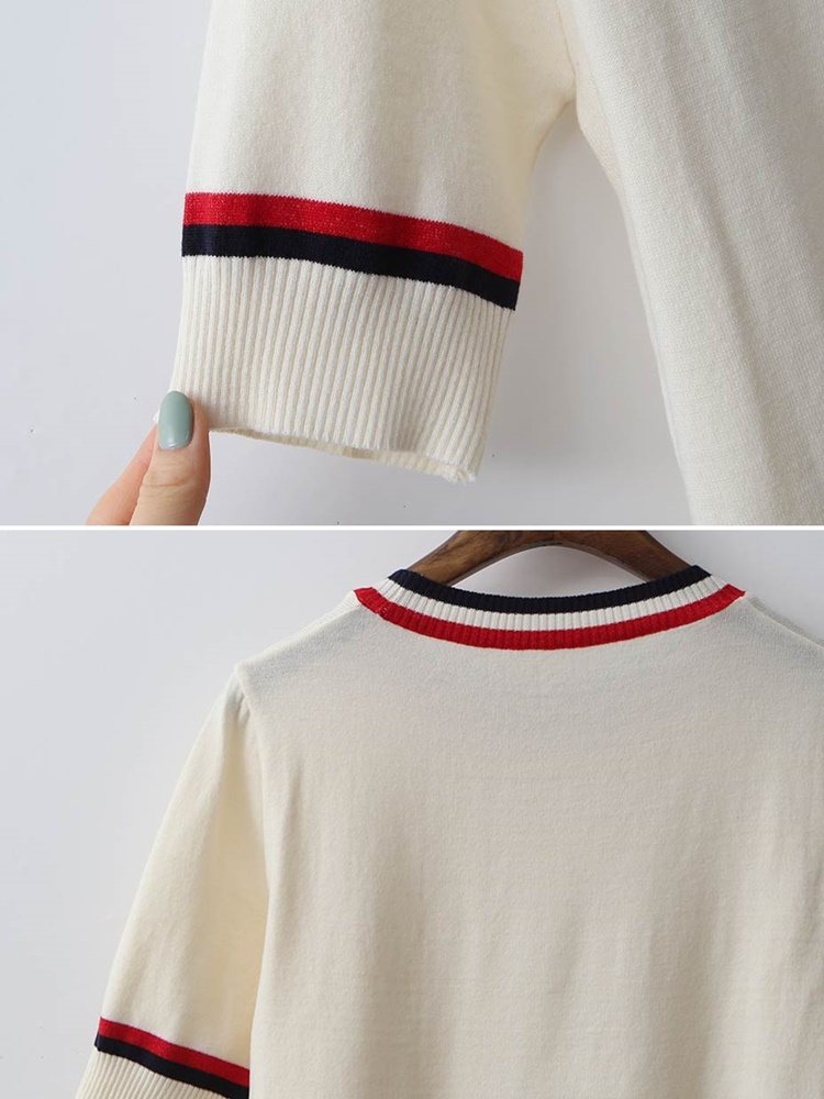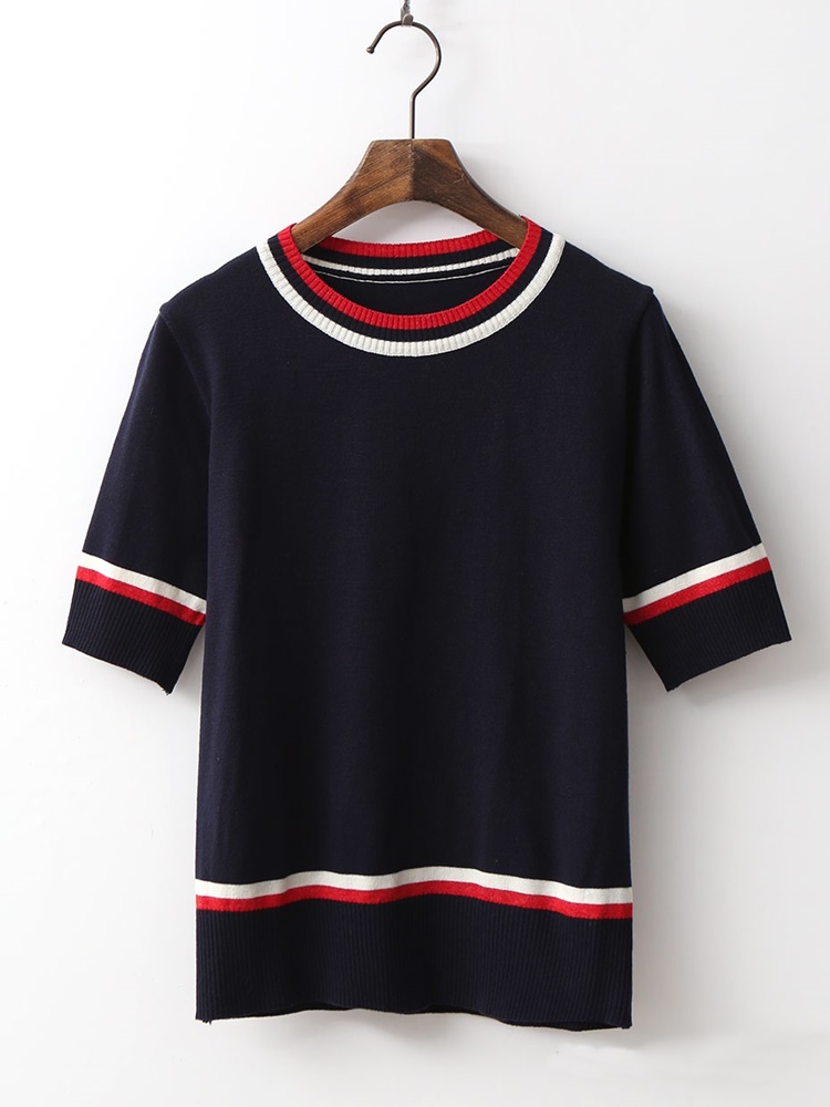 배색 라운드 시보리 여성 반팔 니트 티셔츠