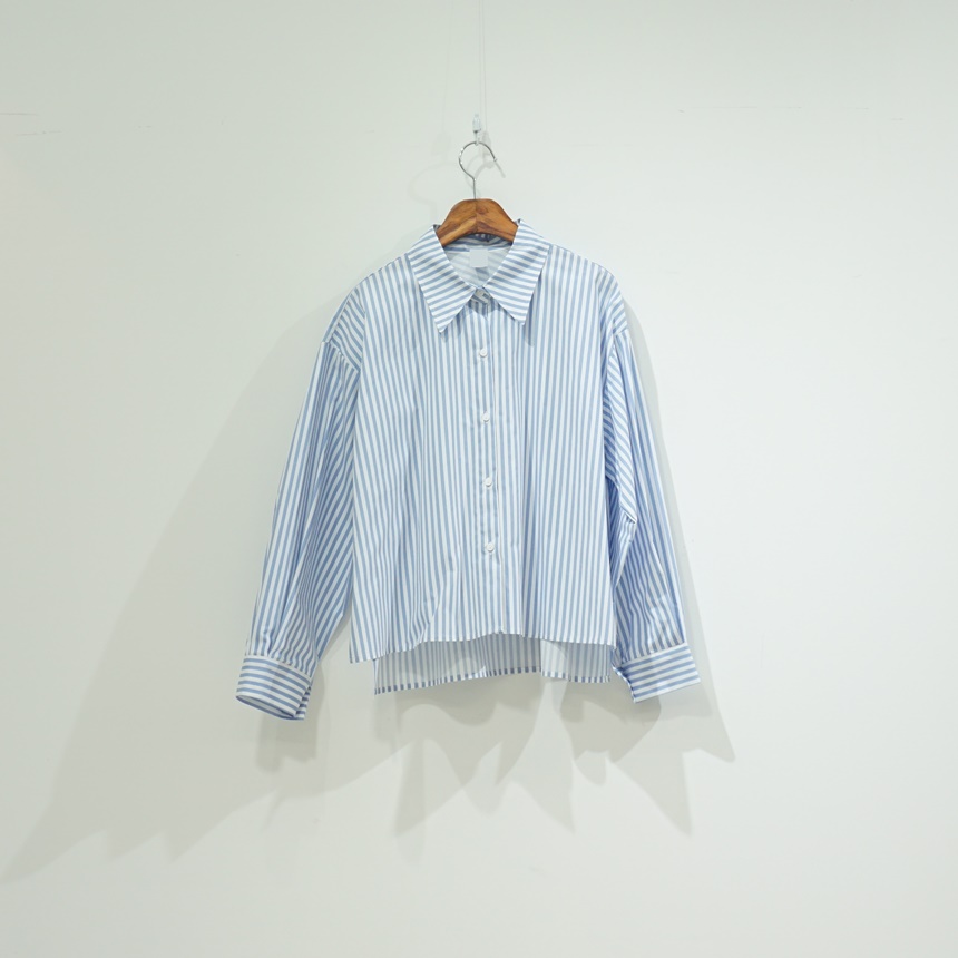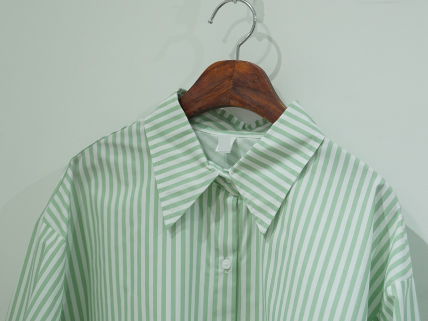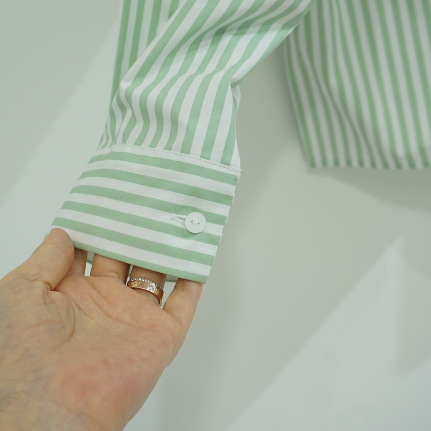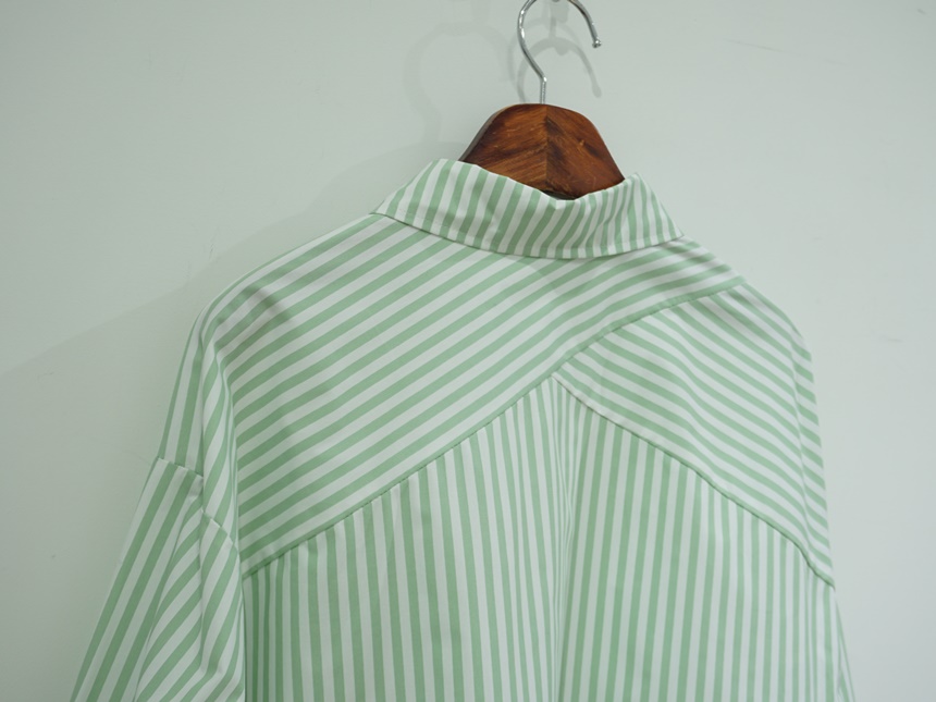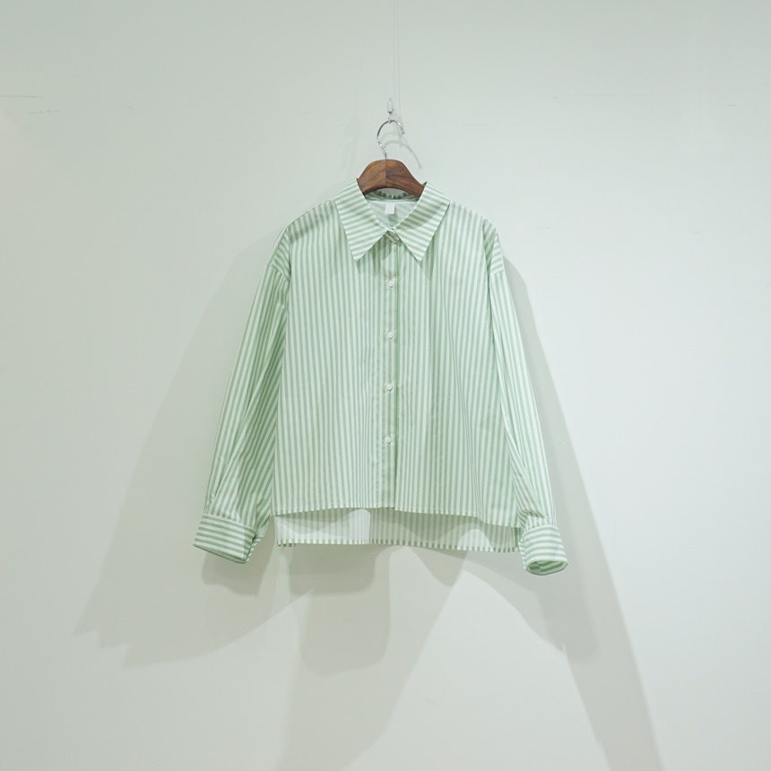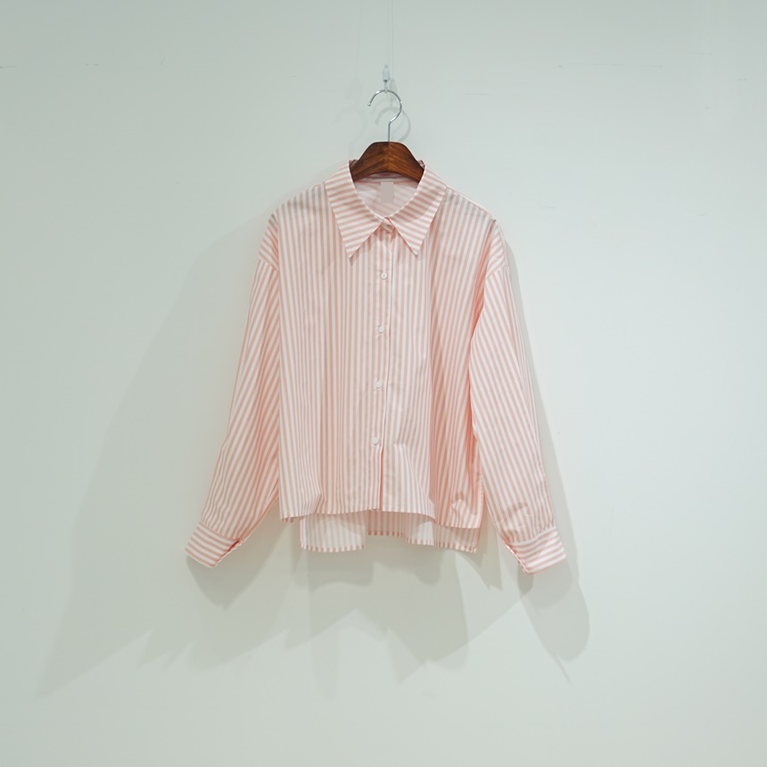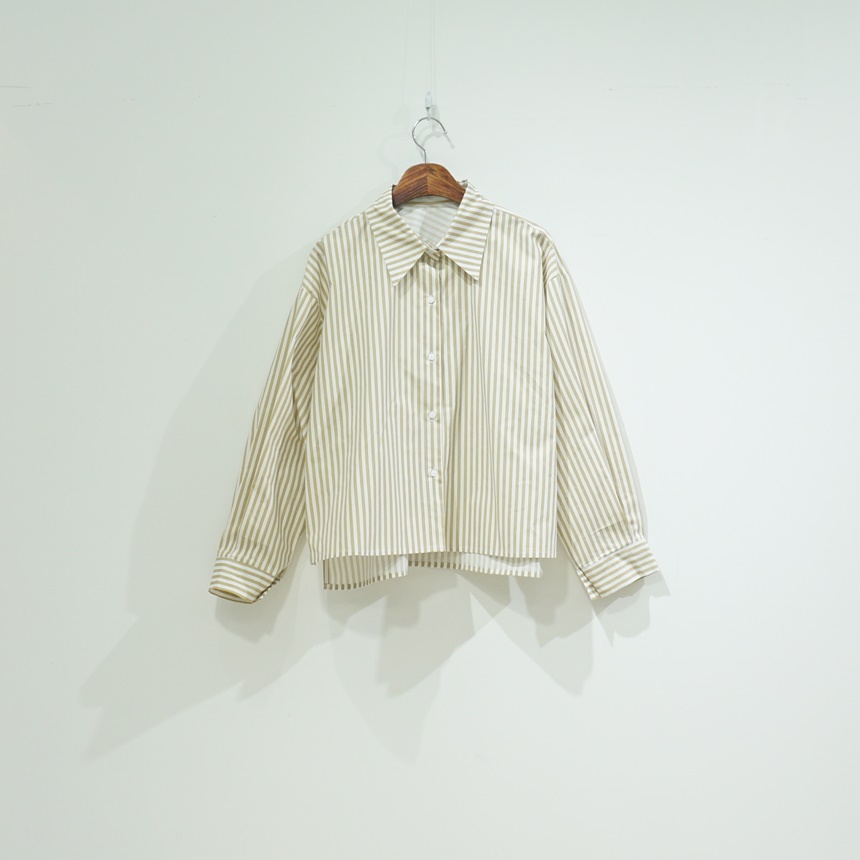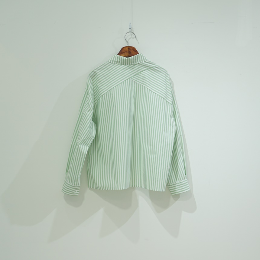 스트라이프 면 남방 바이어스 커팅 배색 셔츠