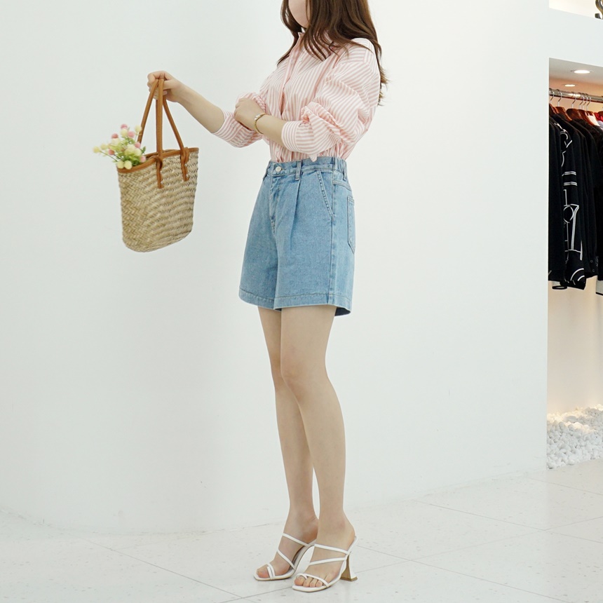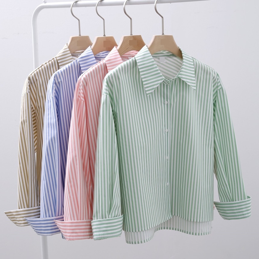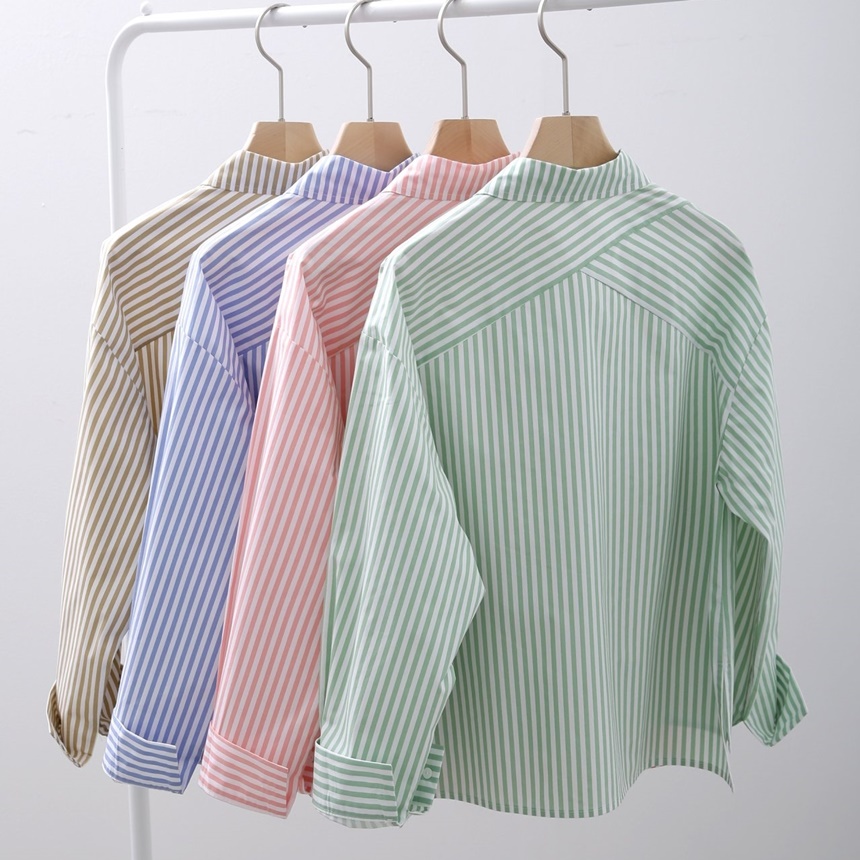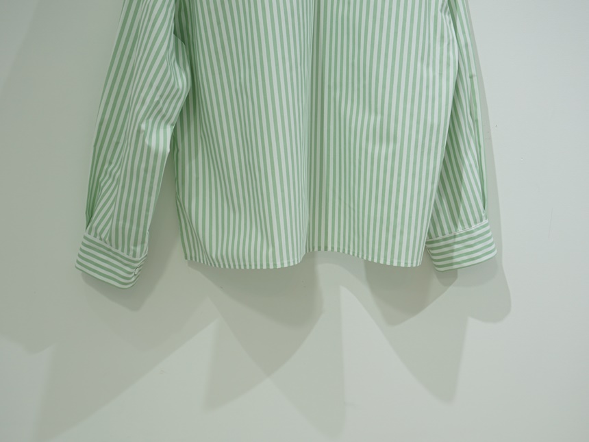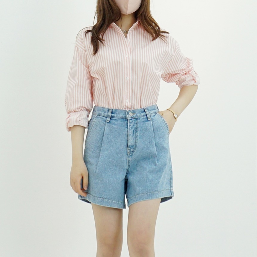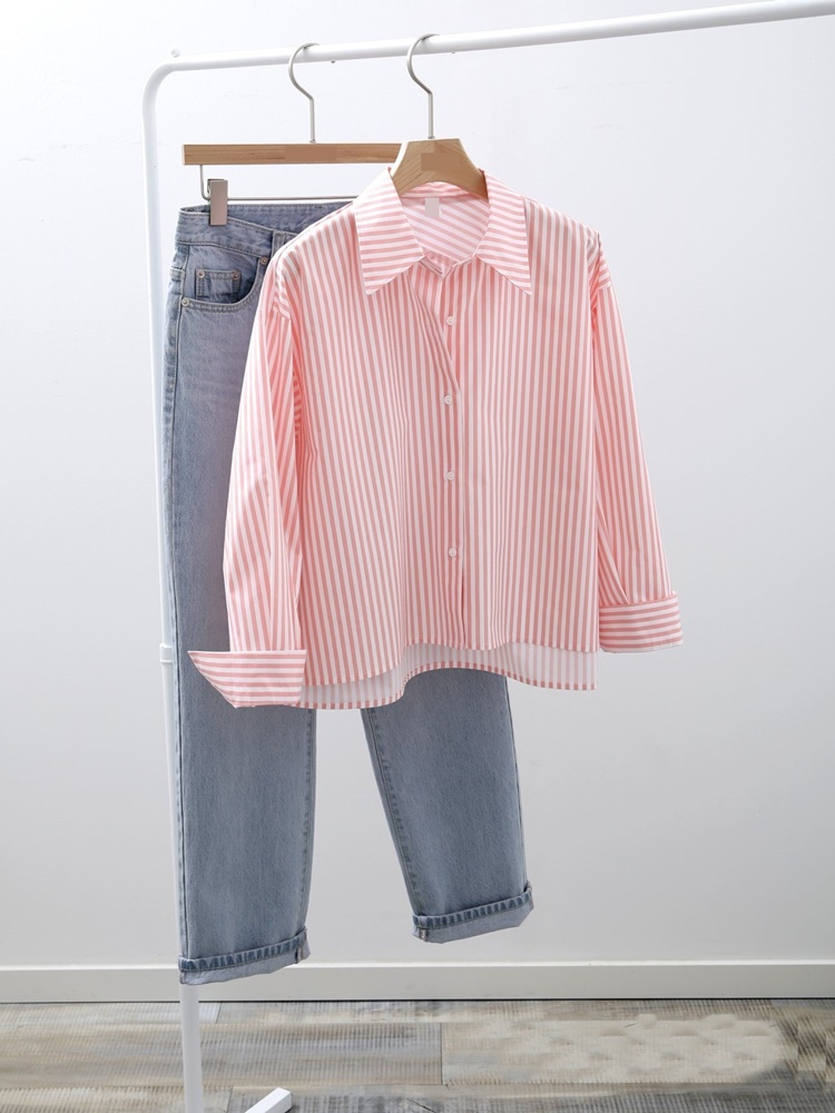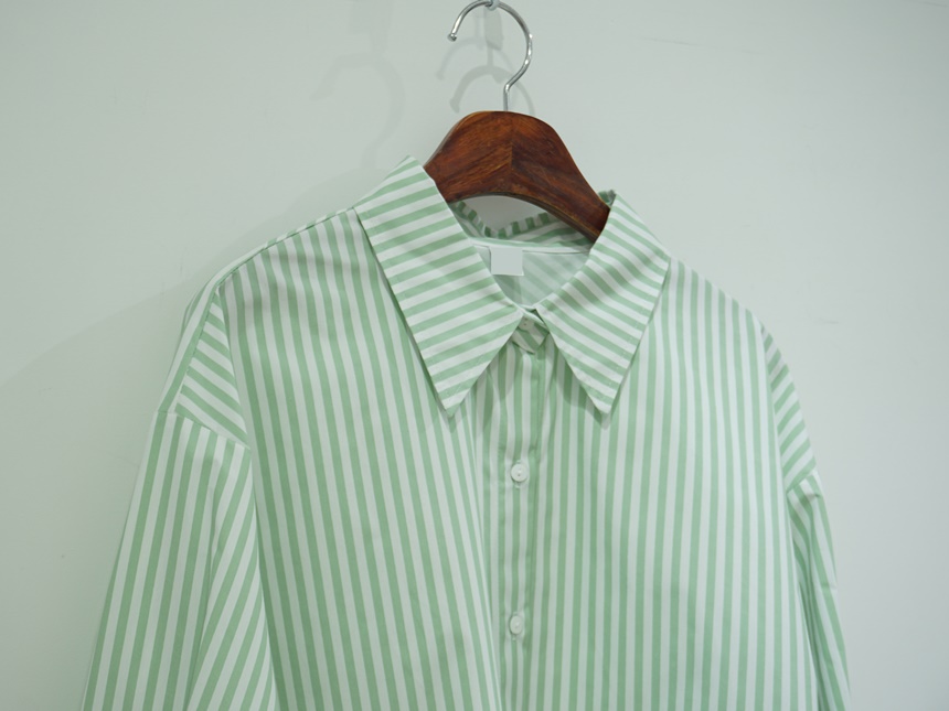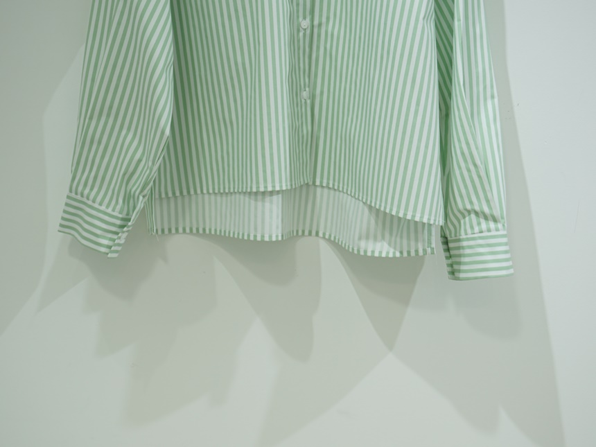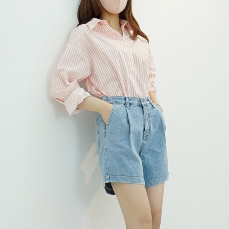 스트라이프 면 남방 바이어스 커팅 배색 셔츠