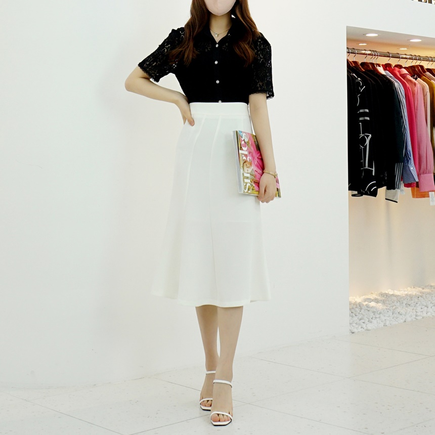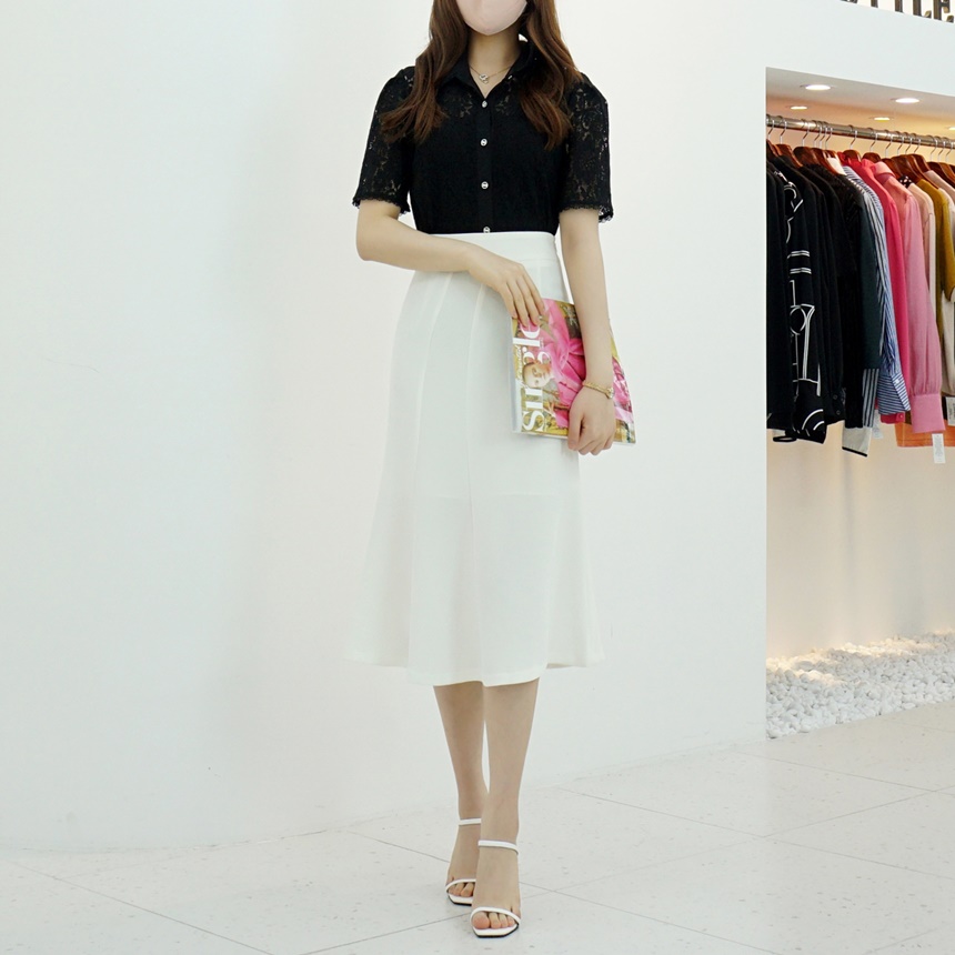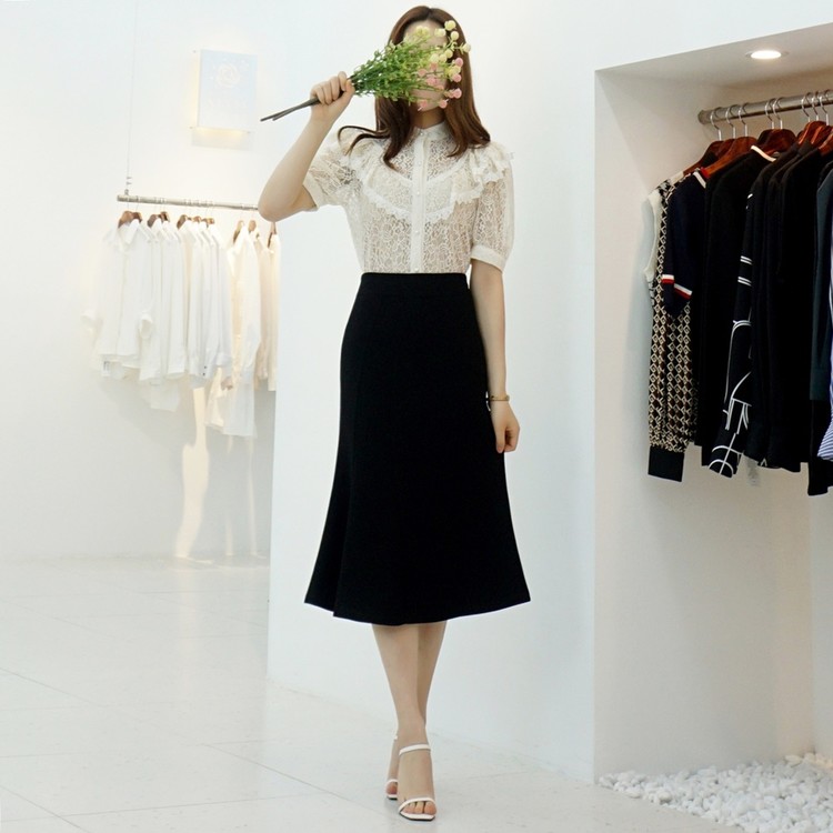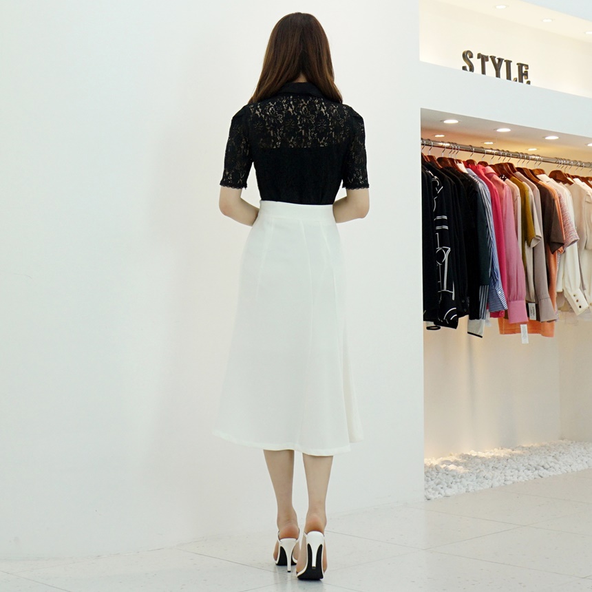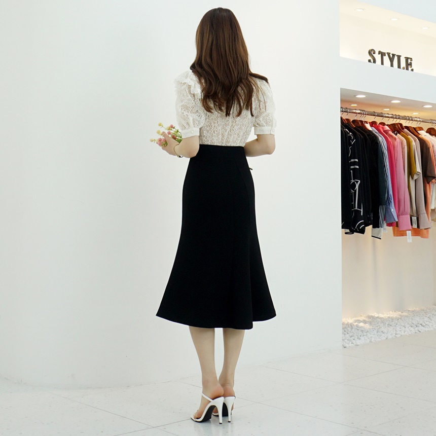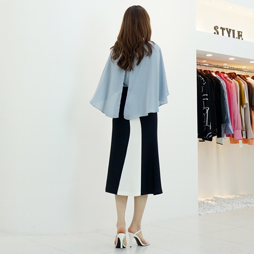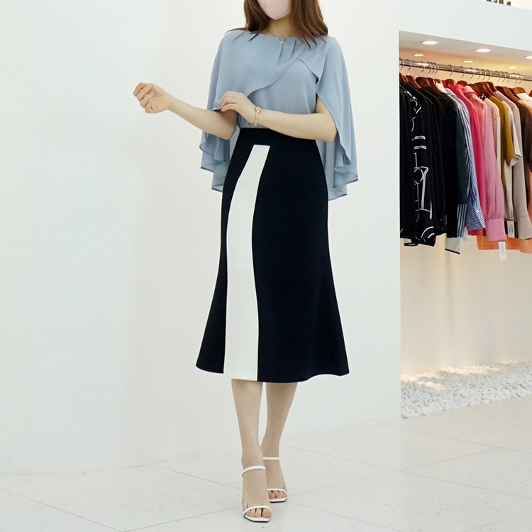 인어 A라인 배색콤비 머메이드 스판 스커트